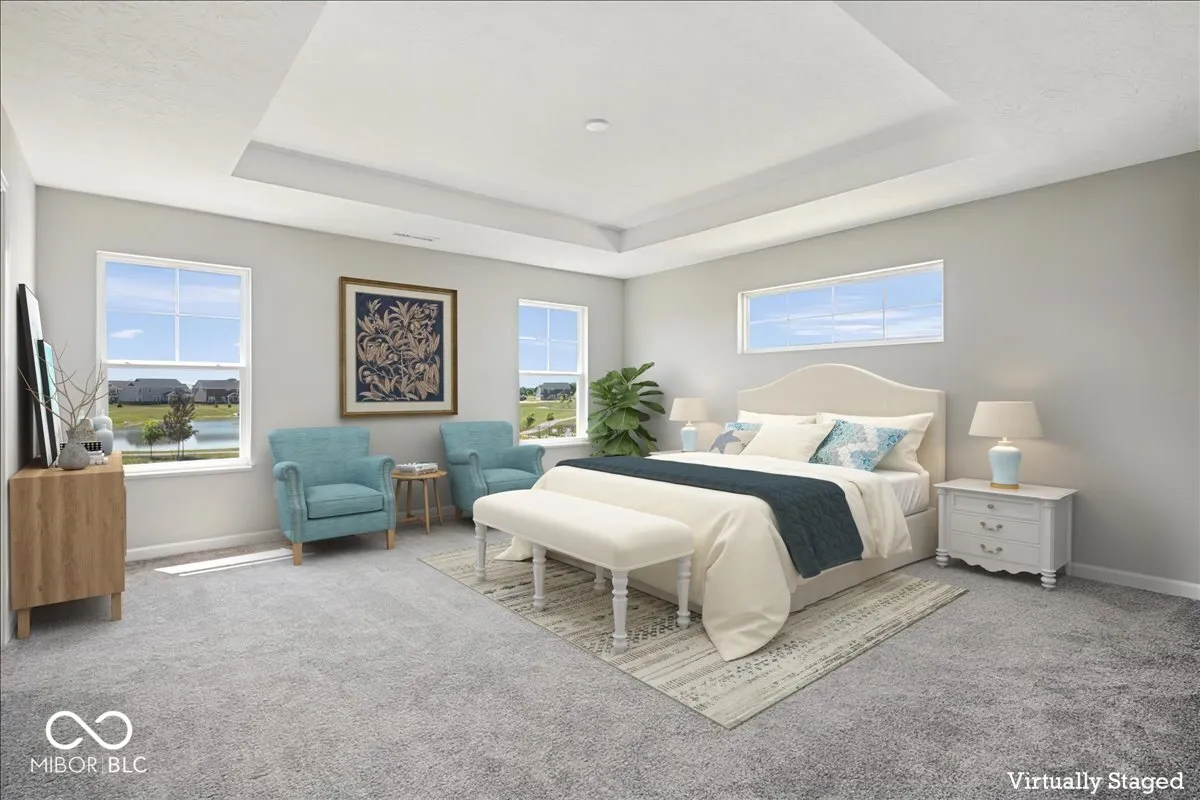 Try to find a better lot in Westfield at this price! This model currently sells close to $500K with these upgrades plus the home sits on a $30K PREMIUM LOT! No other *premium* west-facing, sunsets-over-the-water view lots exist for sale at this time in any of the existing new construction developments nearby at this price! Steps to the pool (watch the kids from your backyard!!!)… steps to the community trail system and only 2700 feet from the MONON TRAIL! No home directly behind you – what a dream! A PREMIUM lot is not the only perk of this home. You will love the extended porch that spans the entire front of the home. Inside you’ll find a convenient home office that could also serve as a playroom, hobby space or secondary sitting area. Its orientation allows for morning sun to get your workday started. The main living area offers exceptional views and you’ll find tons of builder upgrades here: a spacious sunroom, LVP floors, high end kitchen cabinets with trash pullout and rollouts, pantry with wood shelves (no wire shelves – whew!) and quartz countertops! Open concept living at its finest – all the windows allow you to take in sunny backyard views in the afternoon/evening! Retreat to the upstairs for more upgrades! The Primary Bedroom has a tray ceiling, a spacious tiled shower, dual closets, and double sinks. 3 spare bedrooms plus a LOFT for yet another recreation space! Tons of STORAGE – all bedrooms have walk in closets and multiple linen/coat closets. PLUS a 3 car garage – ideal for your golf cart to cruise around Chatham! Neighborhood amenities include pool/bathhouse, trails, pickleball, dog park and playground! Quiet, “rural” setting yet super close to Grand Park. Easy access to US31 for all Westfield and Carmel have to offer – restaurants, shopping, and entertainment! Enjoy Urban Vine, Chiba, West Fork Whiskey Co, Italian House, Nyla’s and more less than 10 minutes from your doorstep!