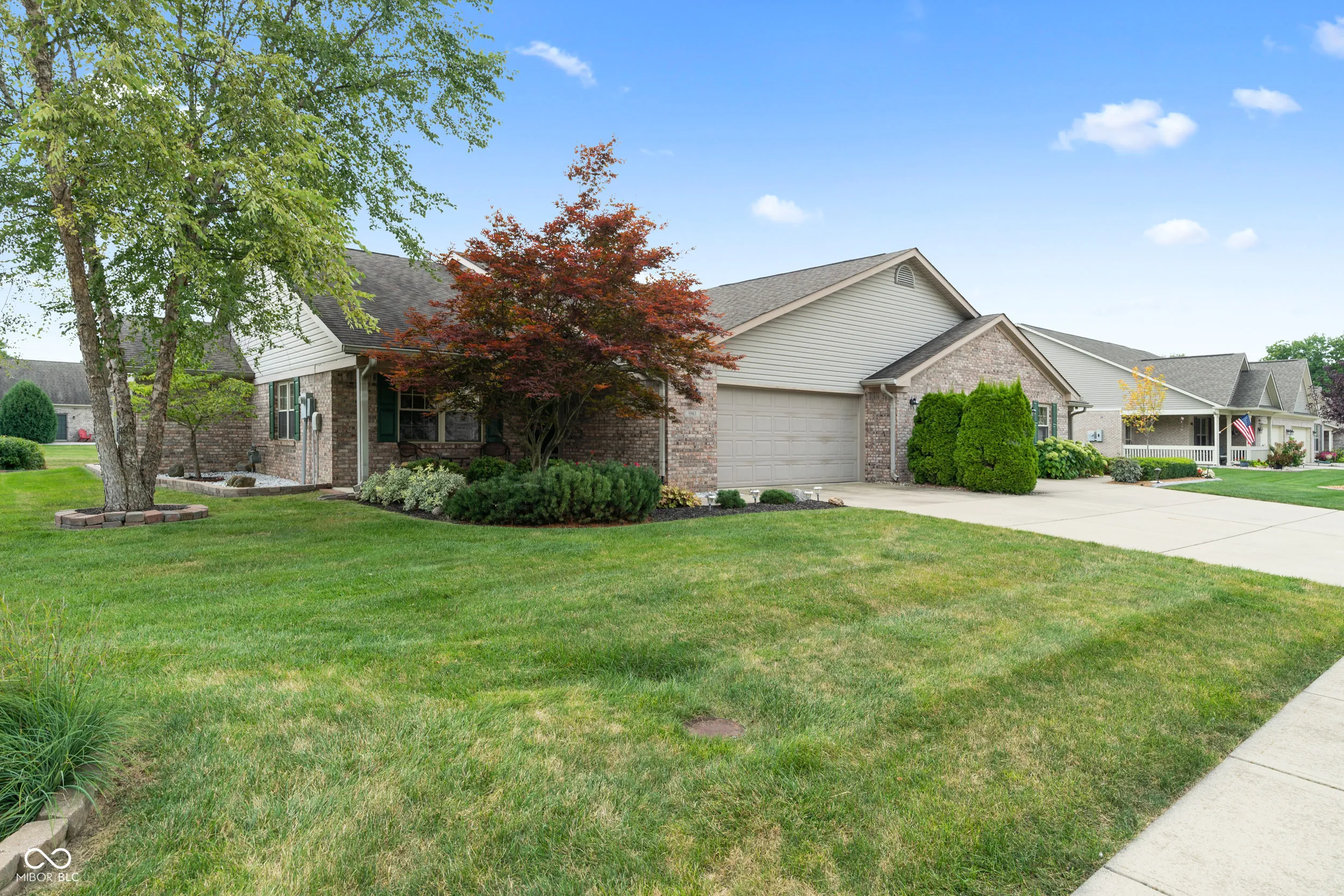 Welcome to 8865 Stepping Stone Way in Avon, IN! This charming two-bedroom, two-bathroom house offers a perfect blend of comfort and convenience, ideal for those looking to downsize and enjoy a relaxed lifestyle. Step inside to discover an open concept layout that beautifully integrates the living, dining, and kitchen areas-perfect for entertaining or a cozy evening by the gas fireplace. Each room is adorned with natural light that enhances the serene pond view, visible through the ample windows. The house includes a practical, all-inclusive appliance package, ensuring a hassle-free move. Additionally, the added bonus of a three-season room offers a peaceful retreat to enjoy the changing seasons without leaving the comfort of your home. Living here means you will benefit from maintenance-free living. Lawn care and snow removal services are taken care of, providing more time to enjoy all that Avon has to offer. The location is unbeatable, with easy access to local shopping, dining, and entertainment options just a short drive away. The all brick home with a full finished garage is a true great find. This is a 55 and older community. This is a paired patio home. Possession at closing. 1 year choice home warranty provided to the buyer.