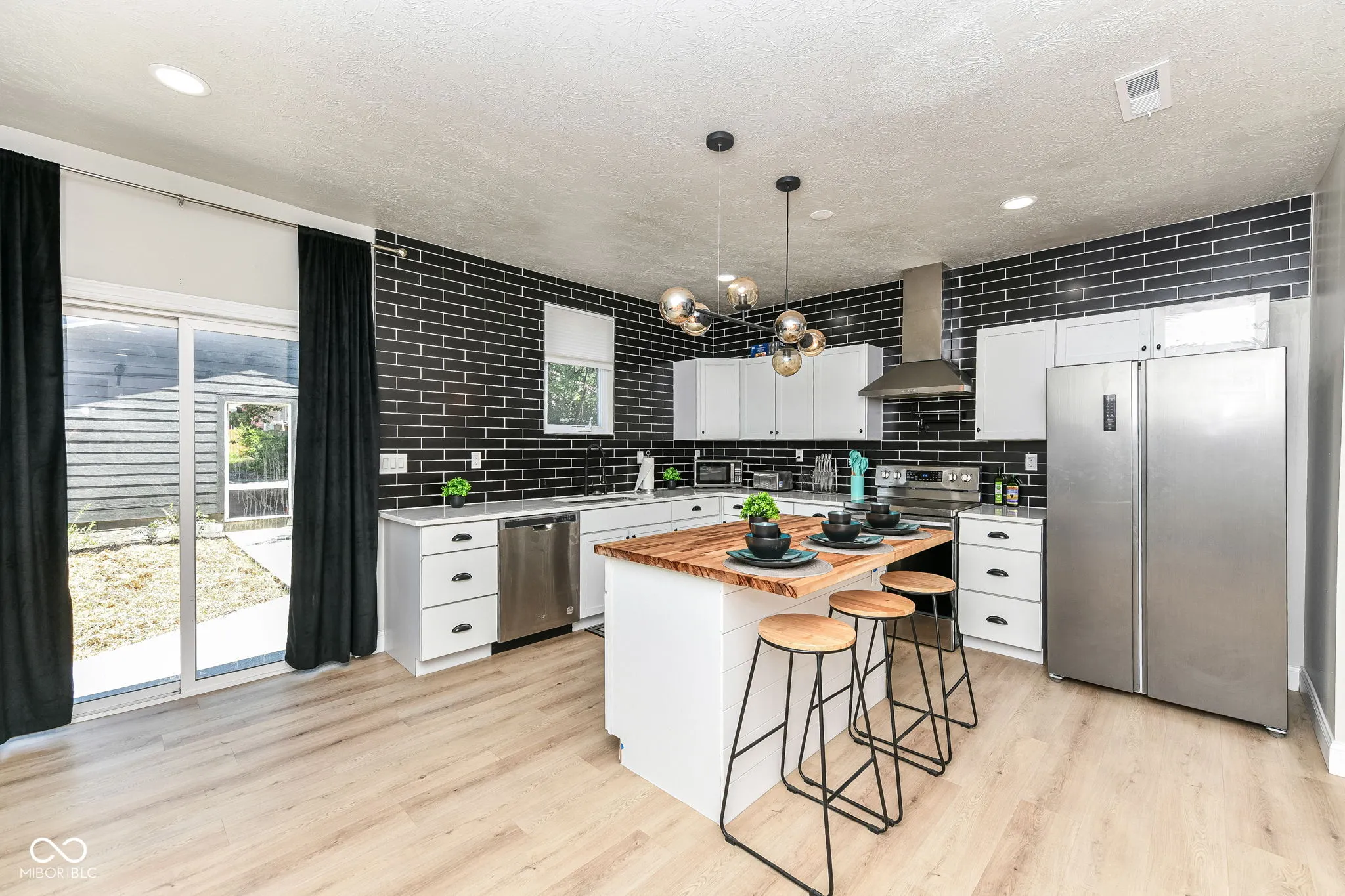 This gem is a Must See! On the Upper level is a gorgeous primary bedroom featuring his&her closets, primary bath has full walk-in ceramic shower with soaking tub. If you are looking to get away, enjoy your bonus sitting room off the primary bath. On the main level you will find a second primary with full walk-in shower. Open concept will make entertaining a breeze. Enjoy quiet evenings with a glass of wine around the firepit. All new cabinets, center island with butcher block top, and fireplace make the kitchen a welcoming environment for friends and family to gather. Fully renovated full bathrooms with ceramic, new vanities, mirrors and lighting. Can lights throughout. Home comes fully furnished with the exception of the dining room table, the fireplace TV stand, and all TV’s are not included.