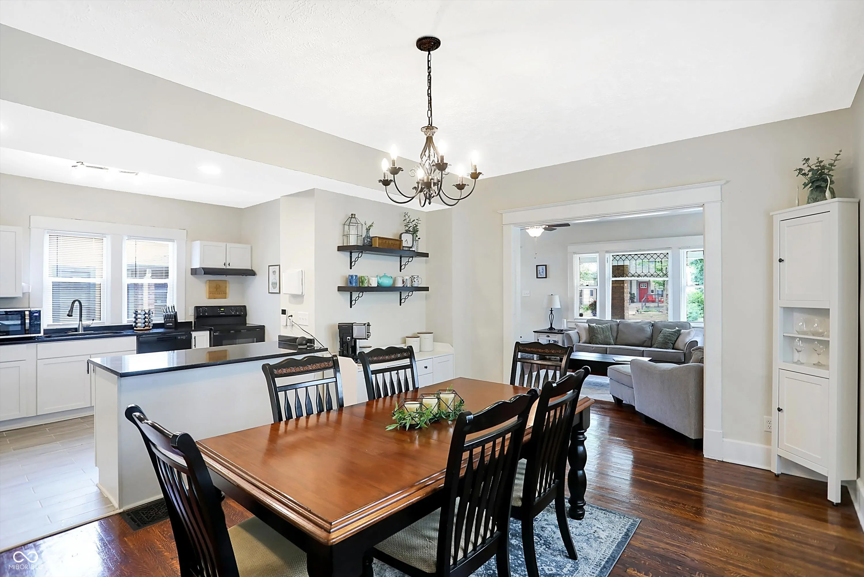 Embrace the grace of this 3-bedroom, 2-bathroom treasure nestled in Crown Hill. Large covered porch for relaxing. Inside, charming built-ins and original hardwood floors, this home flawlessly blends historic elegance with contemporary living. Electric fireplace in the cozy living room the flows into the open concept dining and kitchen area which is perfect for entertaining. The second floor contains 3 bedrooms with fabulous storage space you don’t normally find in an old home. In addition, the finished attic offers versatile living space for playroom, office, or bonus storage space. Outside, the fully fenced yard provides a private oasis, complete with a brick patio for unwinding on warm summer evenings. Your pups will love how large it is! Private parking area off the alley. This home has been well maintained with recent updates: fully repainted (2024), furnace & ac (2021), pex plumbing, newer windows (2021), bath & kitchen updates (2021), newer fencing, and more! As an added perk, enjoy complimentary free admission to Newfields and The Children’s Museum. With its proximity to downtown and highways, this home offers seamless connectivity to all that the city has to offer!