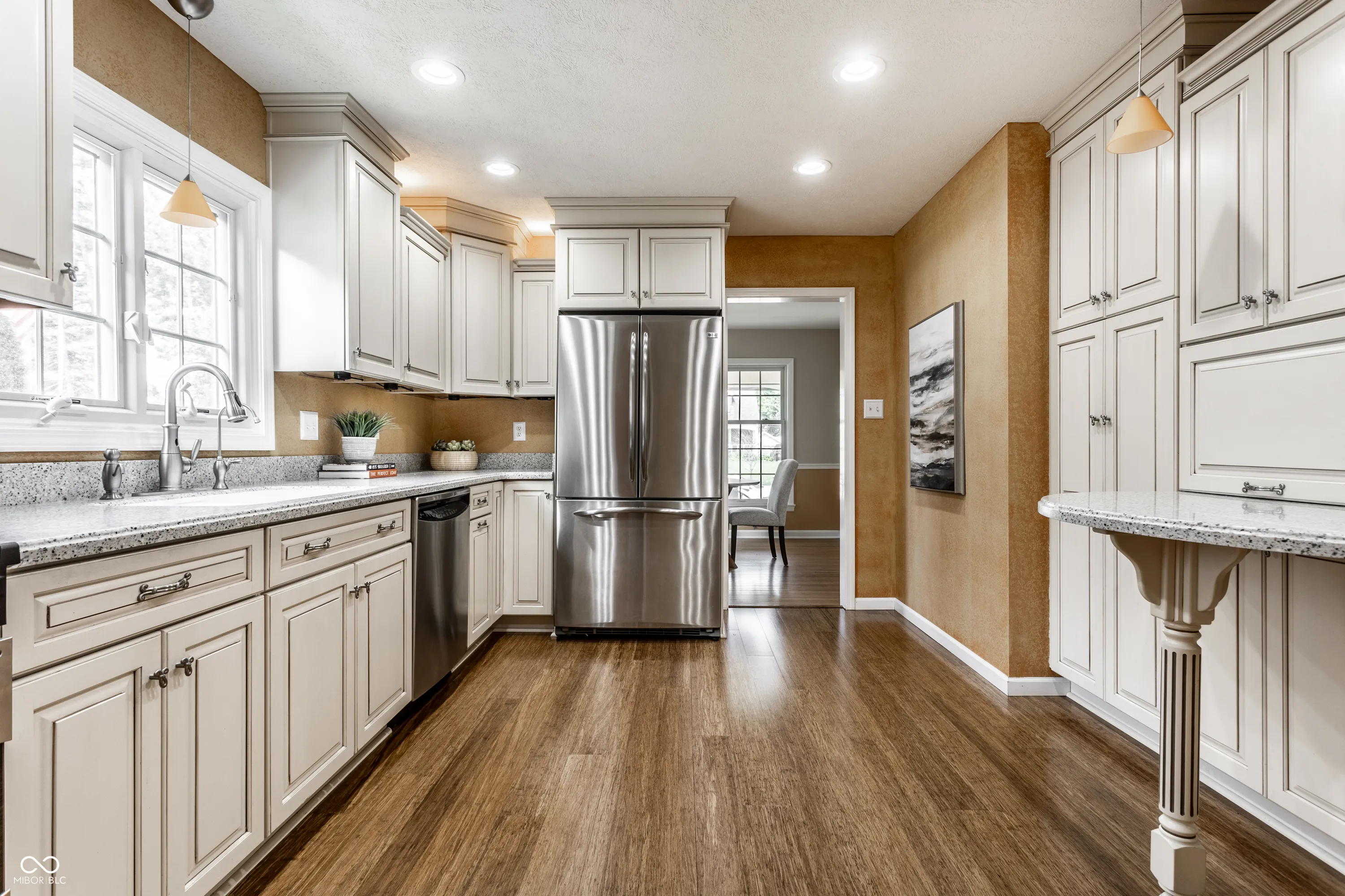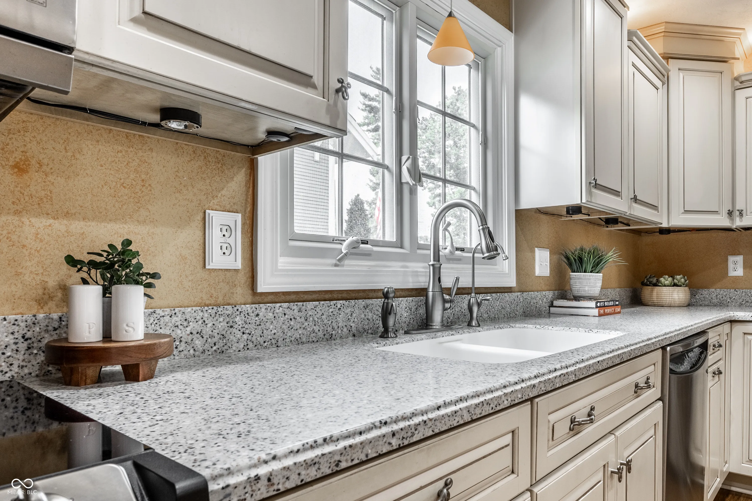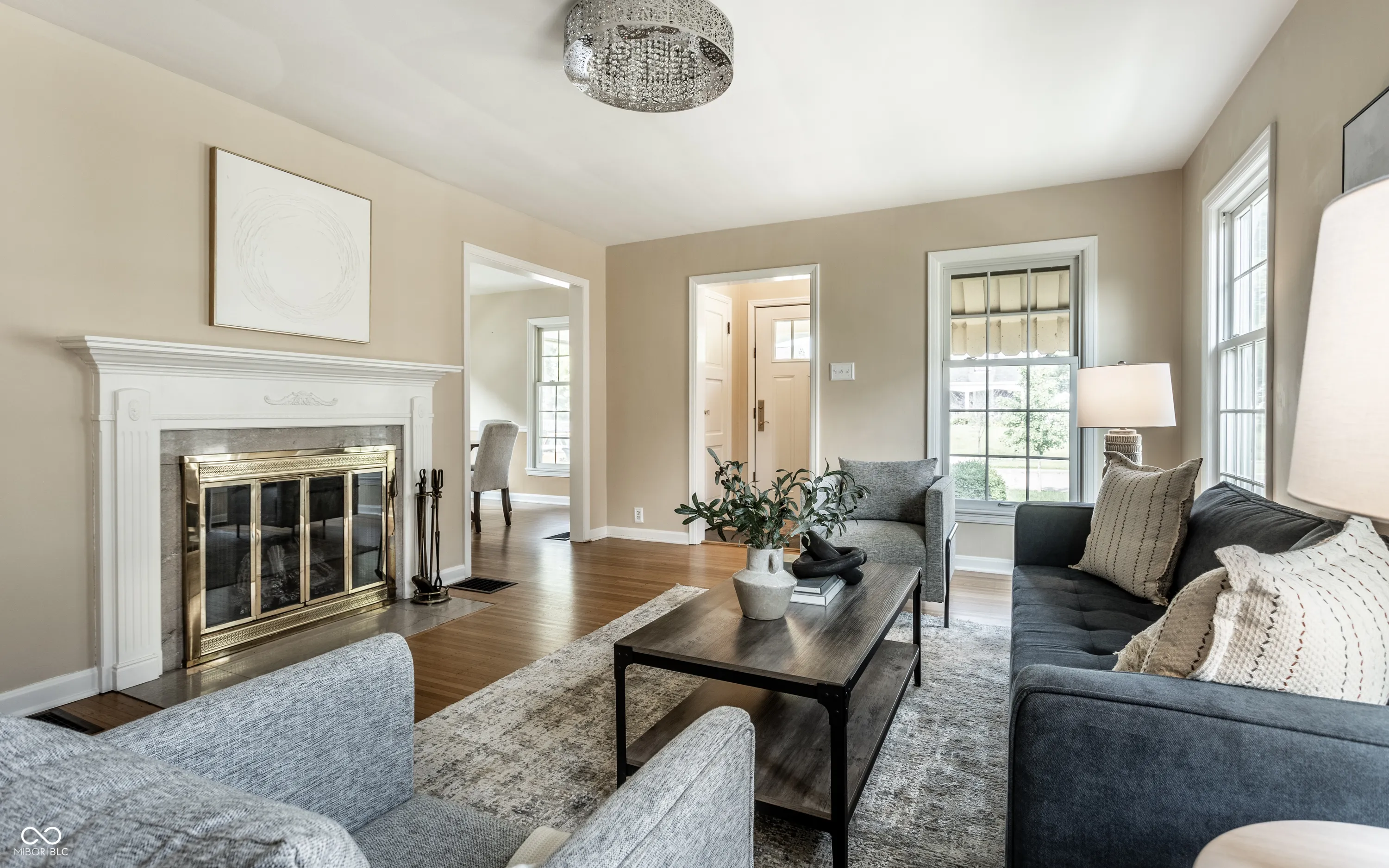 Discover this adorable bungalow in Historic Irvington! Featuring refinished hardwood floors, 2 bedrooms, a remodeled full bath and a primary suite with a walk-in closet and 1/2 bath. The thoughtfully designed, remodeled kitchen boasts bamboo strand floors, Corian counters, stainless steel appliances, and abundant cabinetry with stylish recessed and cabinet lighting. Entertain in the finished basement with a wet bar! Additional storage space & laundry room complete the space. Outside, the wrought iron railing highlights the new concrete front porch, sidewalk, and driveway. The 2.5-car garage comes with Wi-Fi, and a new concrete covered porch, ideal for grill masters! New HVAC (’22), water heater (’23), windows (’14), whole home RO system & more! This meticulously maintained home is a true gem!