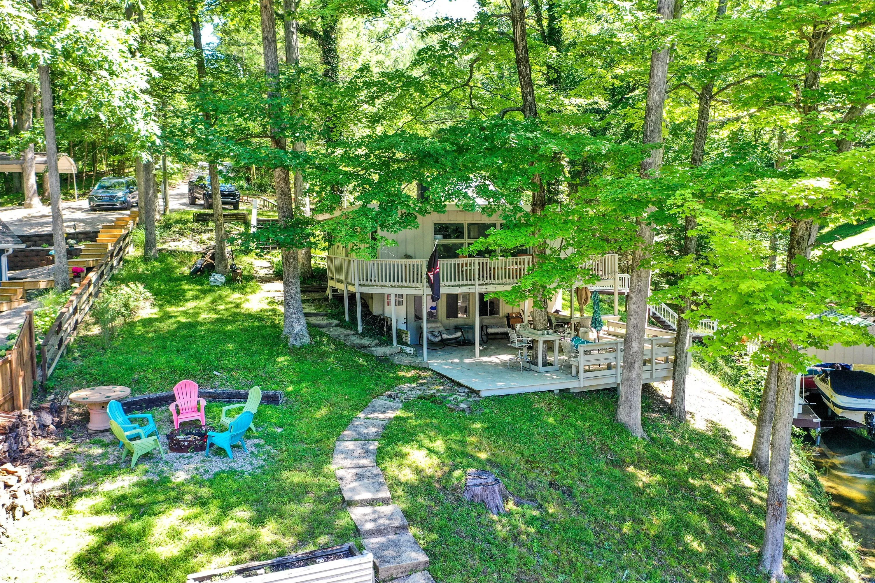 Ready to make some memories? Don’t miss out on your chance to own this peaceful lakehouse cabin on popular Lake Cordry. Featuring over 110 feet of lakefrontage with a private dock, a boat house with enclosed storage, and VIEWS for days! The recently updated interior will charm you with a stone woodburning fireplace, an updated kitchen with stainless steel appliances, a spacious bedroom, and full bath. The walkout basement offers additional living space or storage! Plenty of room for activities on your tiered multi-level wood deck and covered patio with a built-in entertainment bar. Enjoy evenings around the firepit, days jumping into the lake, and mornings cruising the open water. Lots of recent updates; but you HAVE to see it in person. Schedule a showing today!