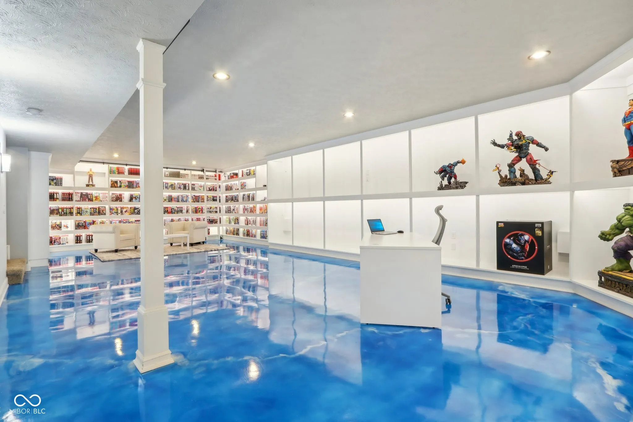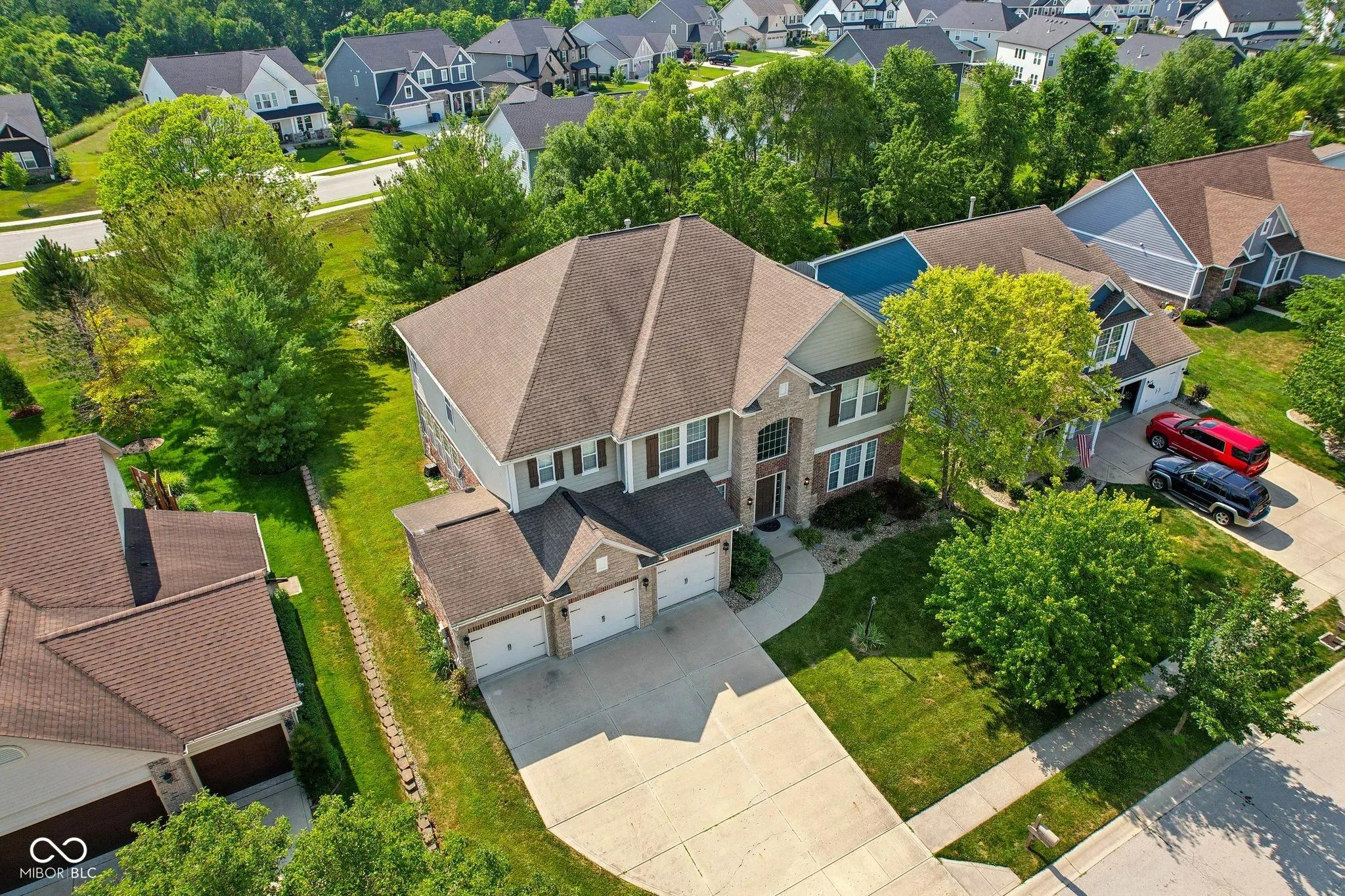 Welcome to luxury living in Noblesville! This stunning 5-bed, 3.5-bath home spans an impressive 6,234 sq ft of meticulously crafted living space. Upon entering, you’re greeted by a spacious layout that includes freshly painted common areas and a large second floor loft, ideal for relaxation or entertainment. The recently updated and reimagined primary bathroom boasts modern finishes and arched doorways, enhancing the en-suite’s appeal. The heart of this home is its beautifully appointed kitchen, featuring modern appliances and an adjoining wet bar/butler’s pantry. Step outside onto the screened porch, perfect for enjoying morning coffee or evening gatherings with family and friends. Additional highlights include a three-car garage with workshop space, new furnace and air conditioner, new water heater, and a water softener for added convenience. The basement is a haven for entertainment enthusiasts, featuring a custom epoxy floor coating, arcade/theater area, and ample room for recreation. Schedule your private tour today and envision yourself living in the lap of luxury at Settlers Mill.