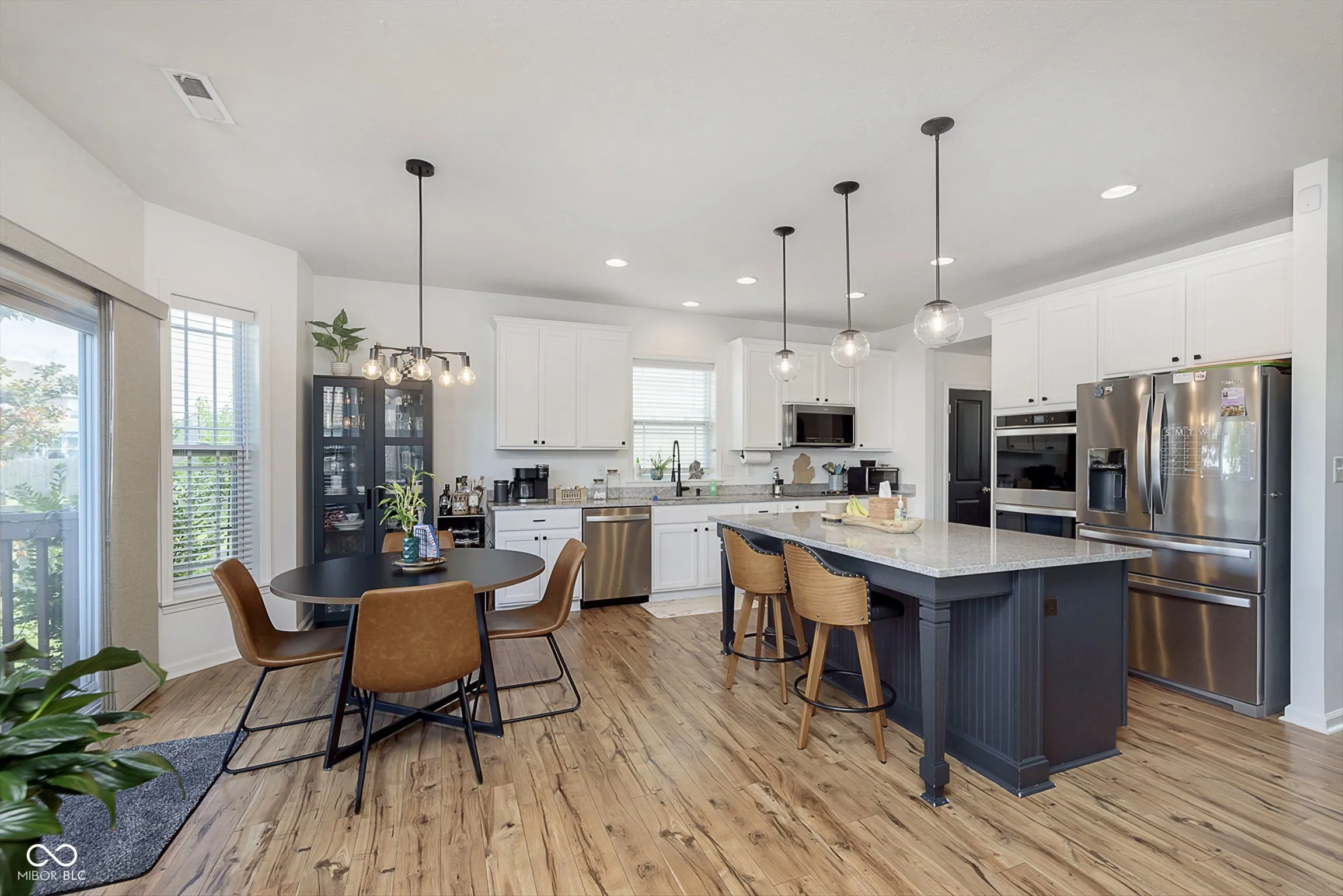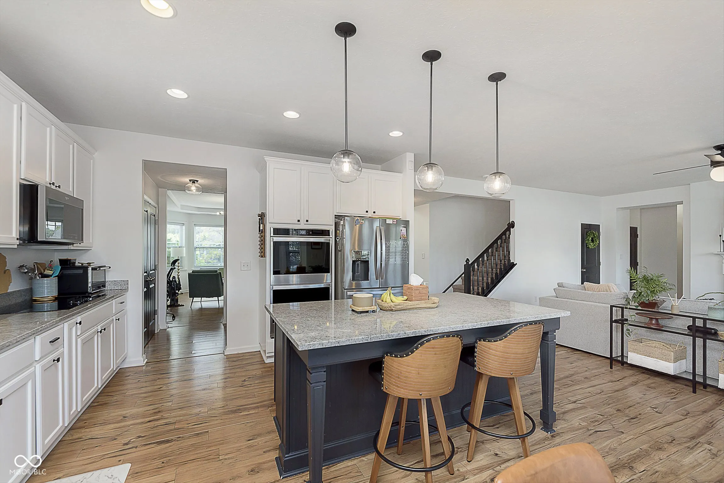 Wow! This beautiful 5 bedroom home is ready for you. Bedroom with full en-suite bathroom on the main level. Open, spacious and bright great room, kitchen and eating area. Laminated hardwood floors throughout main level. Kitchen has stainless appliances, center island and granite countertops. Formal living room room that could be used for a home office. Upstairs you will find the primary bedroom and 3 more large bedrooms with walk in closets. The primary bathroom has a oversized tiled walk in shower and double sinks. Primary walk in closet has custom shelving. Upstairs hall bathroom has double sinks with tub/shower combo. Convenient located laundry room is on the 2nd level. Large fenced in back yard with stamped concrete patio. Property has a 3 car garage for all of your storage needs. Don’t miss this great opportunity to make this property your own.