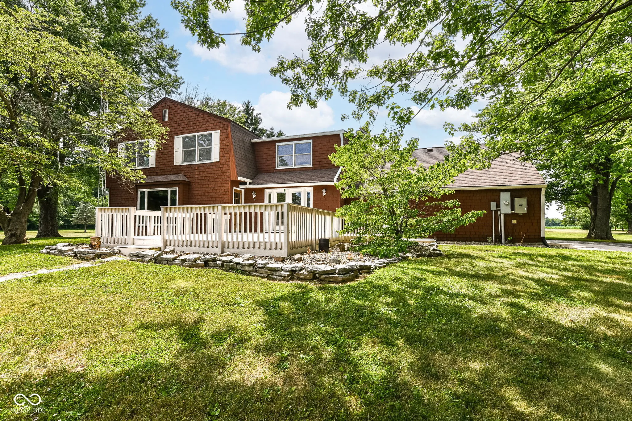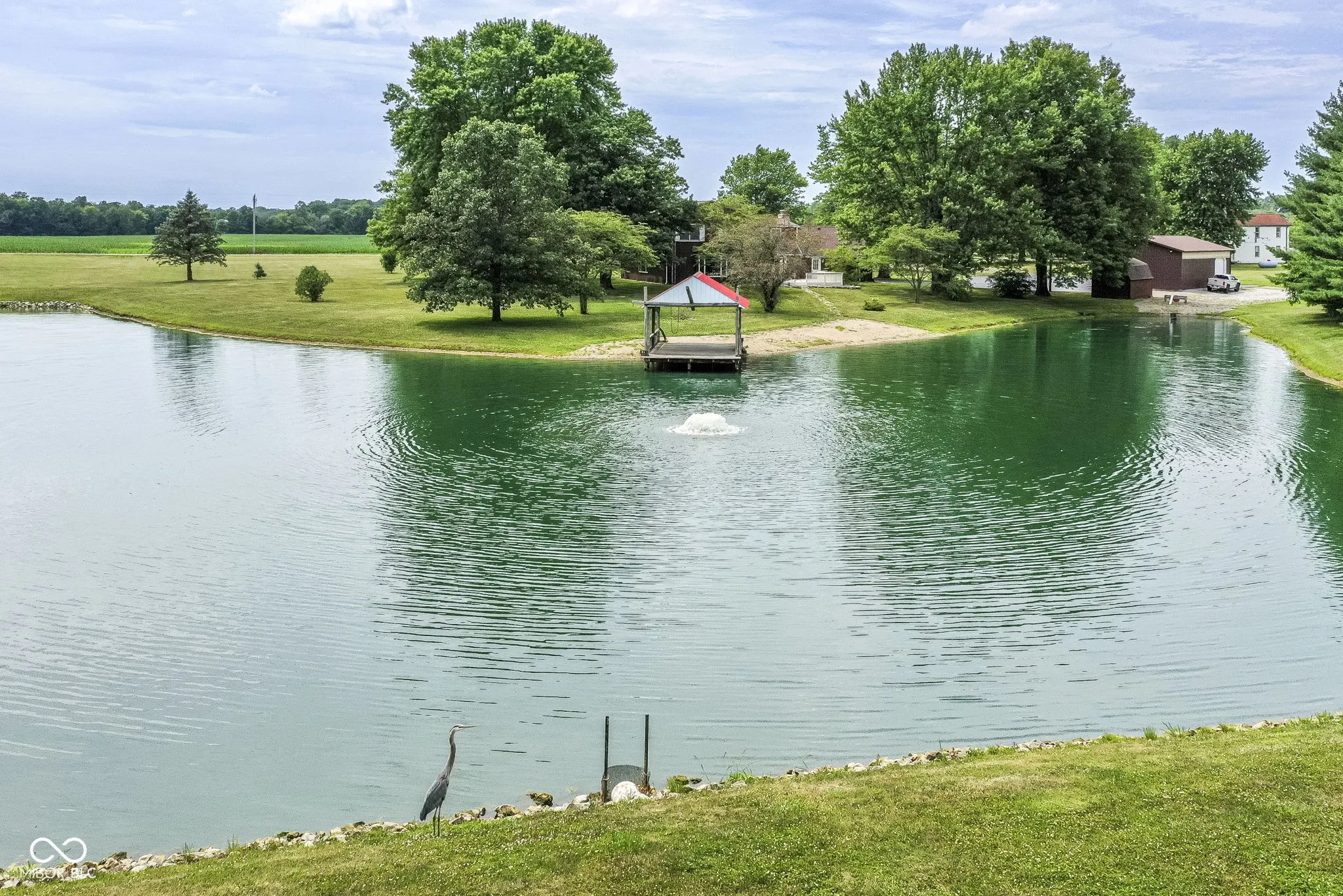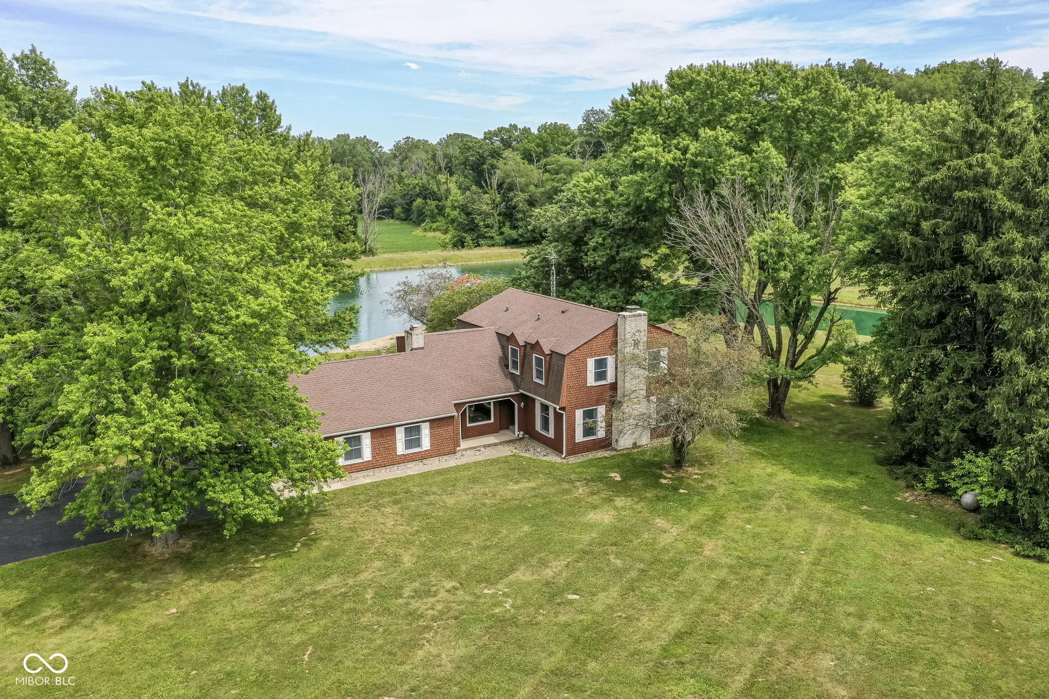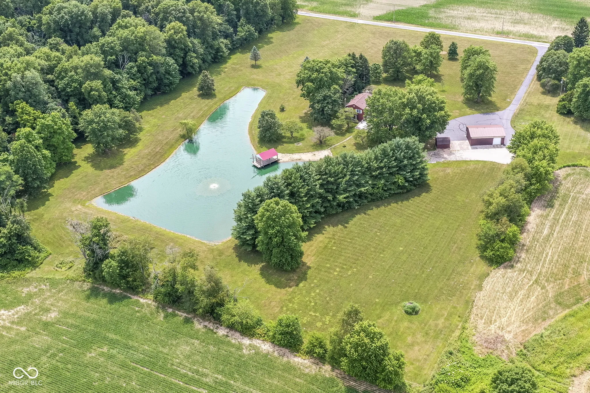 This is what everyone wants! 10 scenic acres with a 5 bedroom home, 1.5 acre pond and a 30’x42′ pole barn! Home, pole barn and grounds are well cared for and groomed. Home features include a large eat-in kitchen, 2 gas fireplaces, 2.5 baths, updated primary bedroom bathroom with walk-in shower & 2 vanities, large (549 sq.ft.) wood deck, and home is heated & cooled with high efficiency geothermal unit. The pond is stocked with an aerator pump and a 16’x30′ covered dock with electricity and water. Pole barn has 12′ tall overhead doors with 14′ clearance inside and concrete floor and electricity. Enjoy the peace and quiet of the country while entertaining friends and family on this beautiful 10 acres!