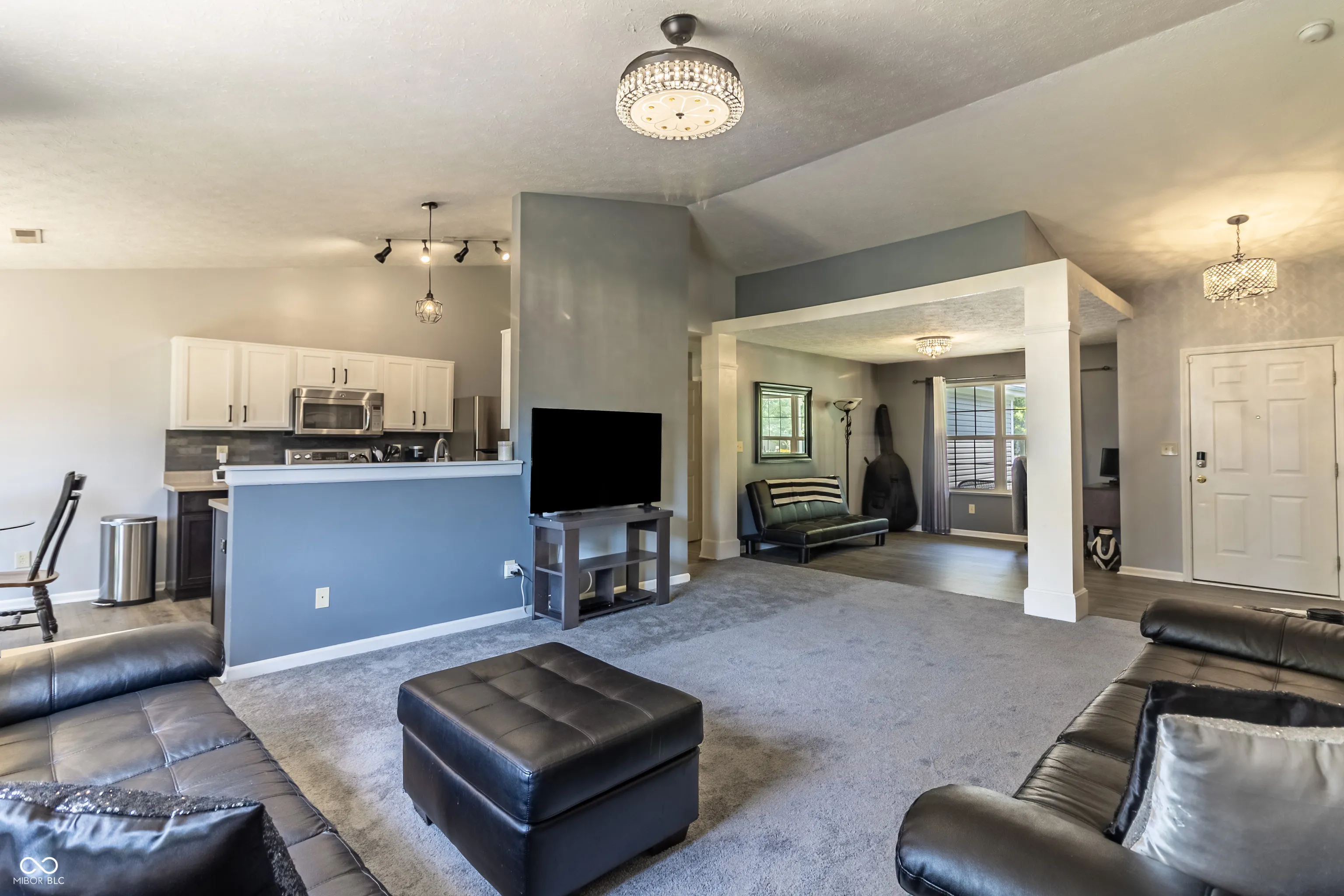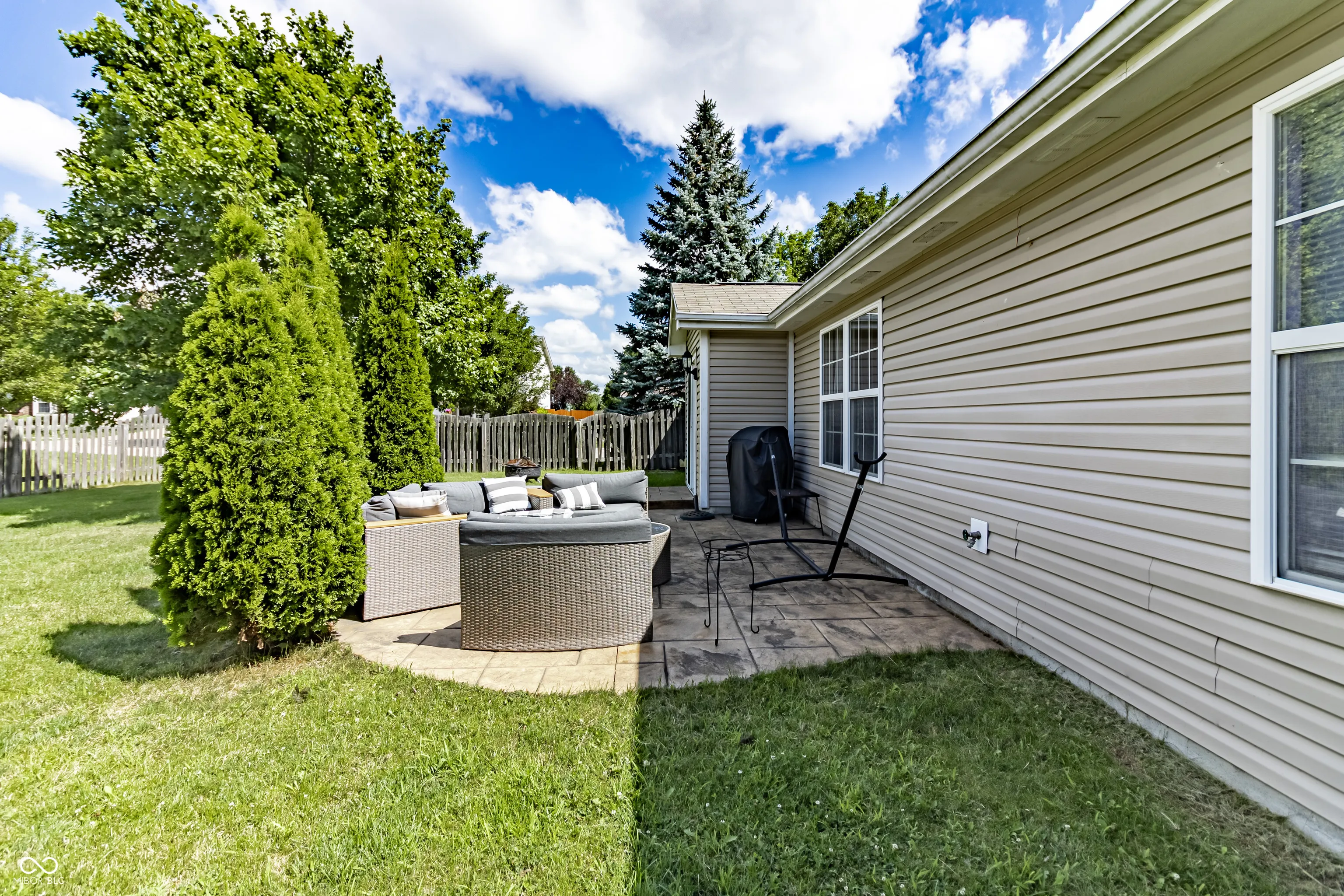 ALL NEW CARPET & FLOORING THROUGHOUT! The most perfect 3 bed 2 bath ranch home on a premium corner lot ready for you in amazing location minutes to Hamilton Town Center mall, shops and restaurants and I69 access making a quick commute downtown. Great curb appeal with coveted covered porch gives charming feel to this home. Enter into foyer to large,open dining room. Enjoy a split floor plan with secondary bedrooms apart from primary suite. Awesome updated kitchen, hard surface counters, updated cabinetry, included SS appliances overlooking family room with large vaulted ceiling flooded with natural light. Kitchen has large breakfast nook overlooking huge corner lot which allows for large fully fenced private yard and featuring patio perfect space for relaxing or entertaining. Primary suite is tucked away behind kitchen featuring double vanity and upgraded garden-soaked tub. Huge walk-in closet -great for storage. Worry free with updates galore: New dishwasher (2022), new refrigerator (2024), new water heater (2024), nee water softener (2022) new light fixtures, painted all cabinets plus new hardware (2022). HVAC regularly service. Seller is offering Buyer concessions! AMAZING INVESTOR OPPORTUNITY as well. This quiet neighborhood boasts park and large picnic area.