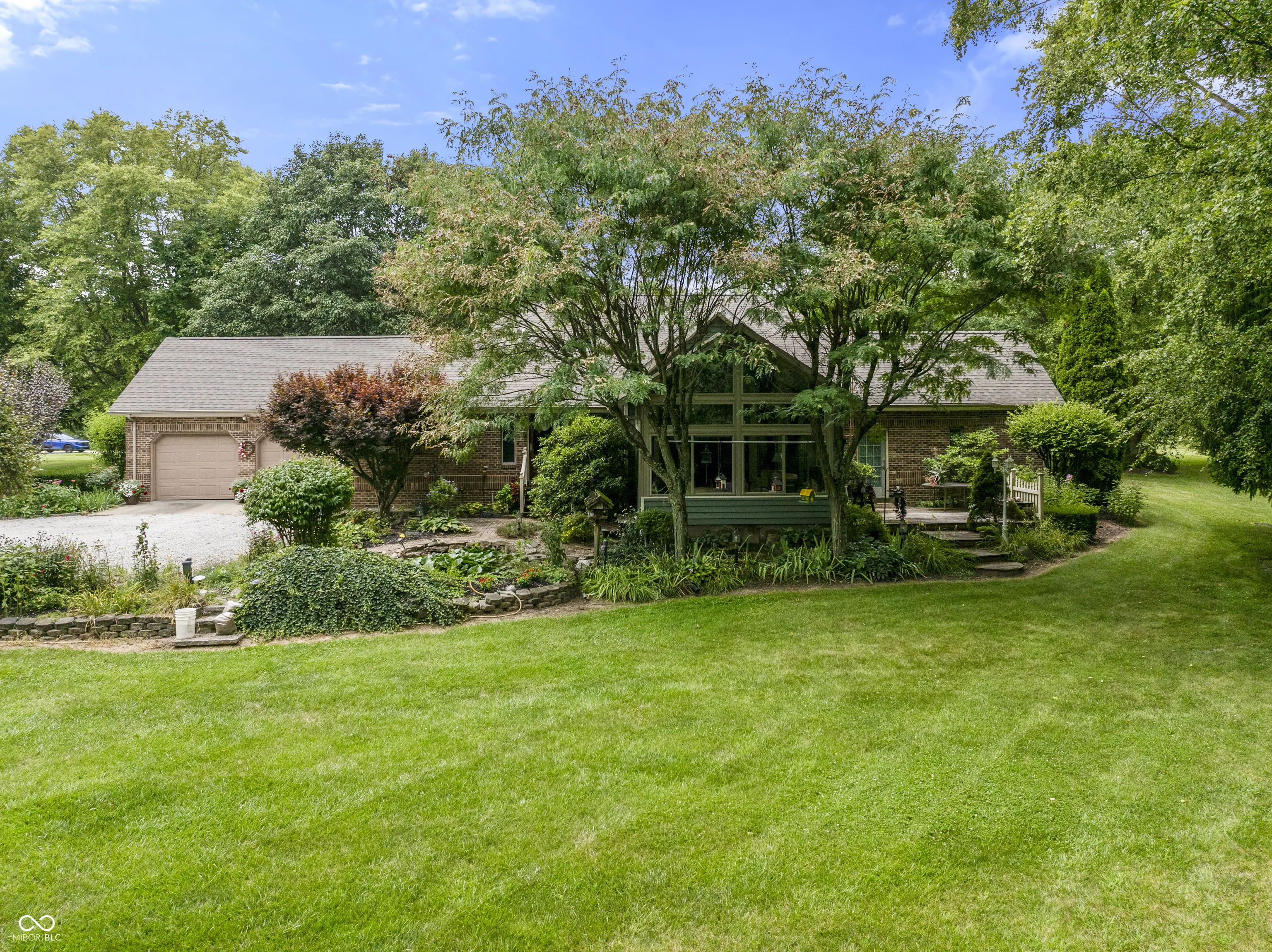 Well maintained custom built all brick ranch home with basement consisting of 3 bed 3.5 bath and 2 car attached garage all setting on 1.67 acres. Walking through this home you will find lots of custom features throughout including built-in cabinetry, cathedral ceilings, lots of beautiful windows, wood trim, and lots of storage! Through the back door is your laundry/mud room with lots of storage and 1/2 bath right off the garage. Eat-in kitchen with lots of kitchen cabinetry, quartz counter tops, hardwood floors, and all kitchen appliances included. Large formal dining room with trey ceilings with formal living room right off formal dining room and entry foyer with large picture window. Large family room with dbl doors leading to the all four seasons room. Enjoy relaxing and the views of your backyard, all year long! Master bedroom has master bath, walk-in closet and exterior door leading to the back deck. Walking up a few steps are your second and third bedrooms with full bath. Partially finished basement includes large family room, kitchenette, utility room, large storage room with egress window, and another full bath. In the 30×36 heated, cooled, outbuilding with concrete floors, upstairs storage space, eletric, workshop area and garage. Dog house has lean-two that is connected to the chicken coop. Home has geothermal and new roof in 2017.