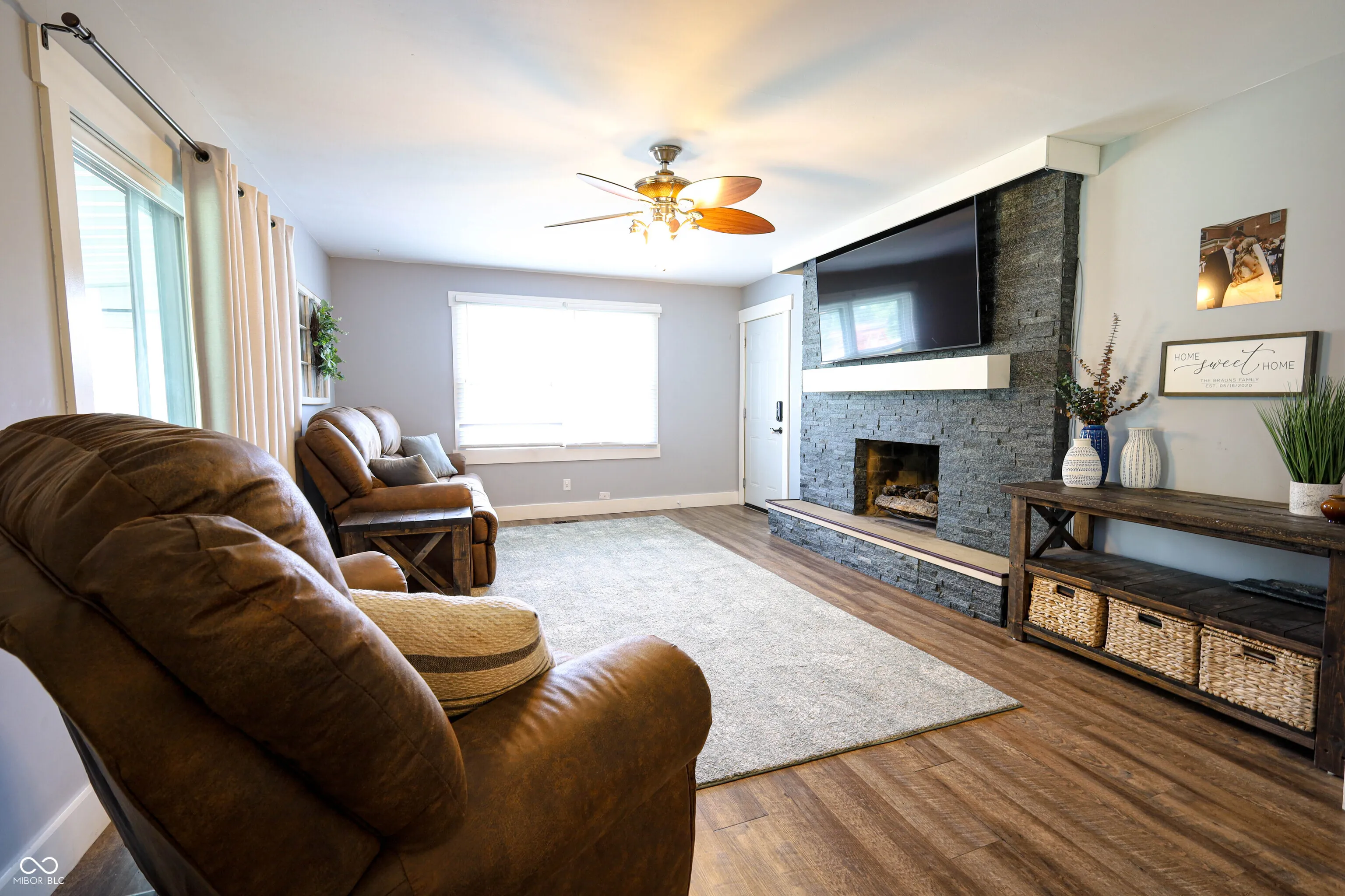Beautiful Ranch Home, sitting on .82 Acre with NO HOA! 3 Bdrm, 2.5 Bath, 1749 Sq ft. Has 2 Separate Living Areas or use front room for Office/Playroom. Family Room has gas log fireplace with stacked stone. Updated Kitchen with SS appliances, open to Family Room. Primary Bedroom has 3 separate closets and Walk in tiled shower. Bedrooms have Hardwood floors. Enjoy sitting in the enclosed glass & Screen patio overlooking the spacious backyard and Fire Pit area. There are Peach & Pear trees and Blackberry Bushes. Attached 2 car garage and a 24×40 detached garage w/200 amp electric, heat and 10 ft Ceilings. Take a walk to the Aquatic Center or jump on the trails. Close to restaurants and shopping. This won’t last long!