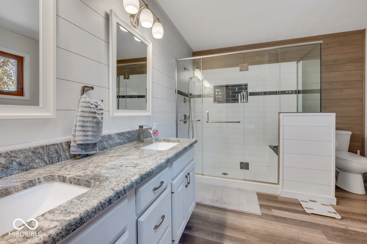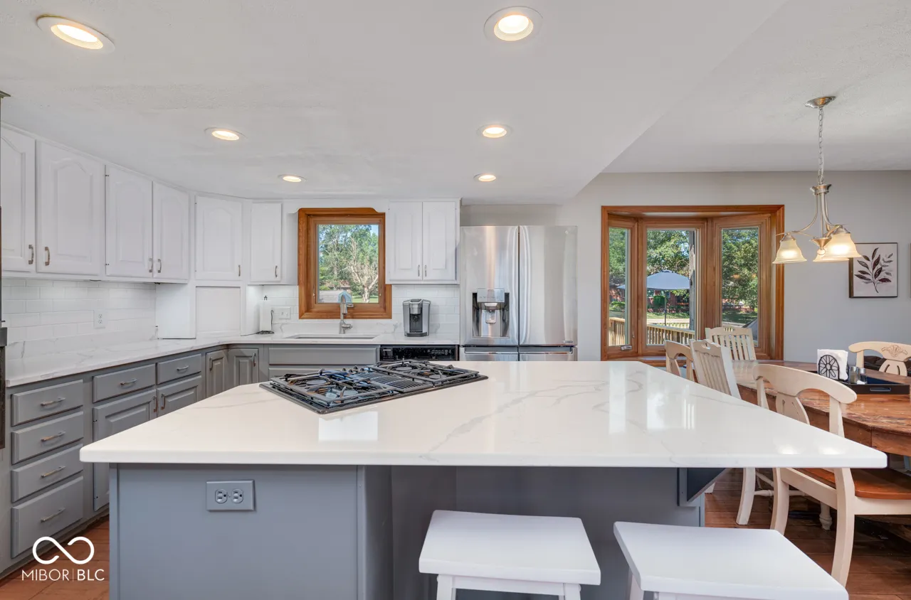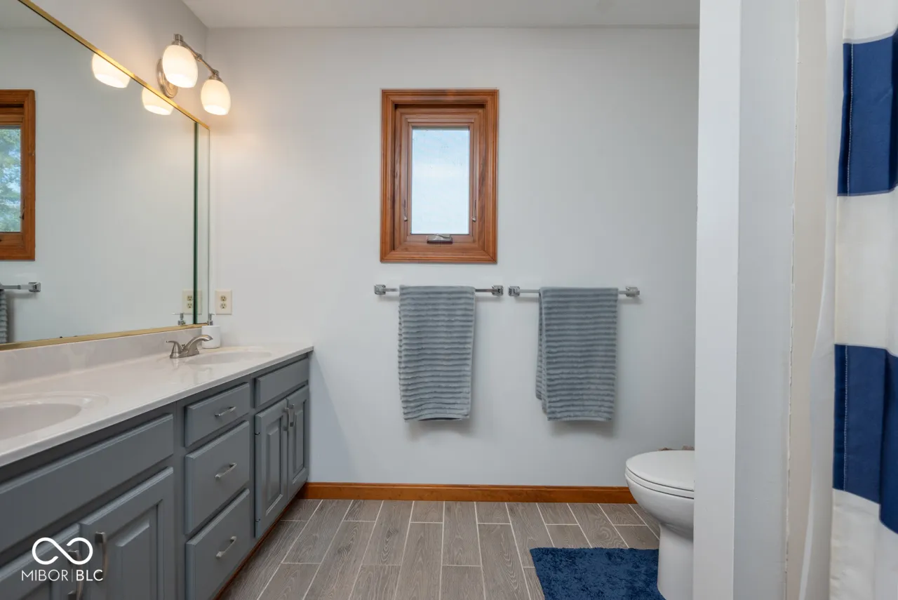 New furnace and AC installed July 2024! 10 year warranty for the new buyer. If you love lake life, you have to see this beauty! The four large bedrooms and modern kitchen will wow you. The kitchen was recently remodeled with two-tone cabinets in white and gray, white subway tile, quartz countertops, and a window overlooking the lake. This space is open to the breakfast area and family room with a wood-burning fireplace and cool ceramic tile. The family room has patio doors that open onto a large deck and backyard. The main level also has both a formal living and dining room. Upstairs, the rooms are all very large and the master bath was remodeled in 2020. Off the master bedroom is a private, elevated deck which is a great place to enjoy a cup of coffee in the morning or unwind in the evening. The roof is six years old, and thirteen windows were replaced with Marvin windows ten years ago. The lake fee is $300 per year, and jet skis are allowed on the lake.