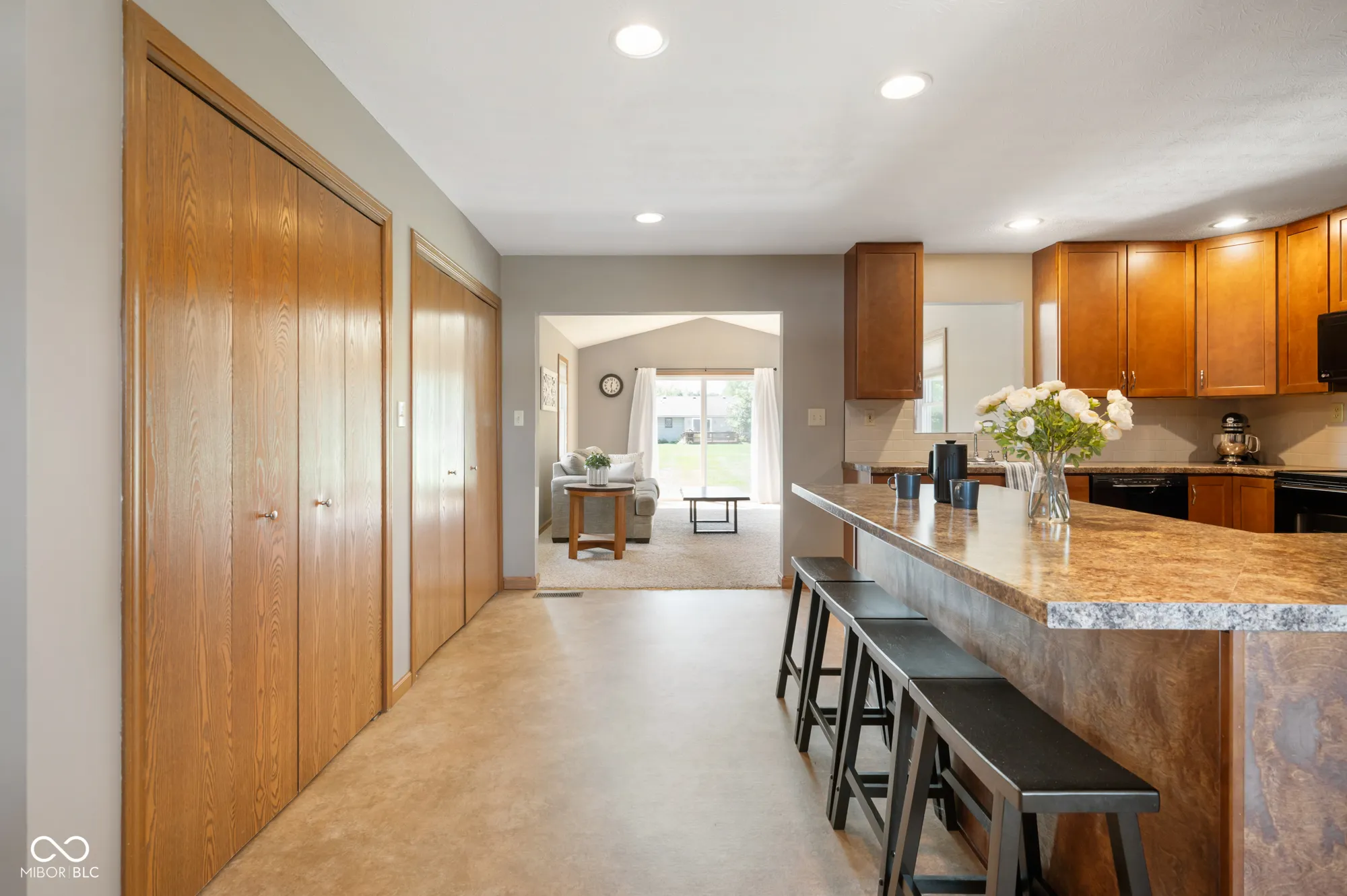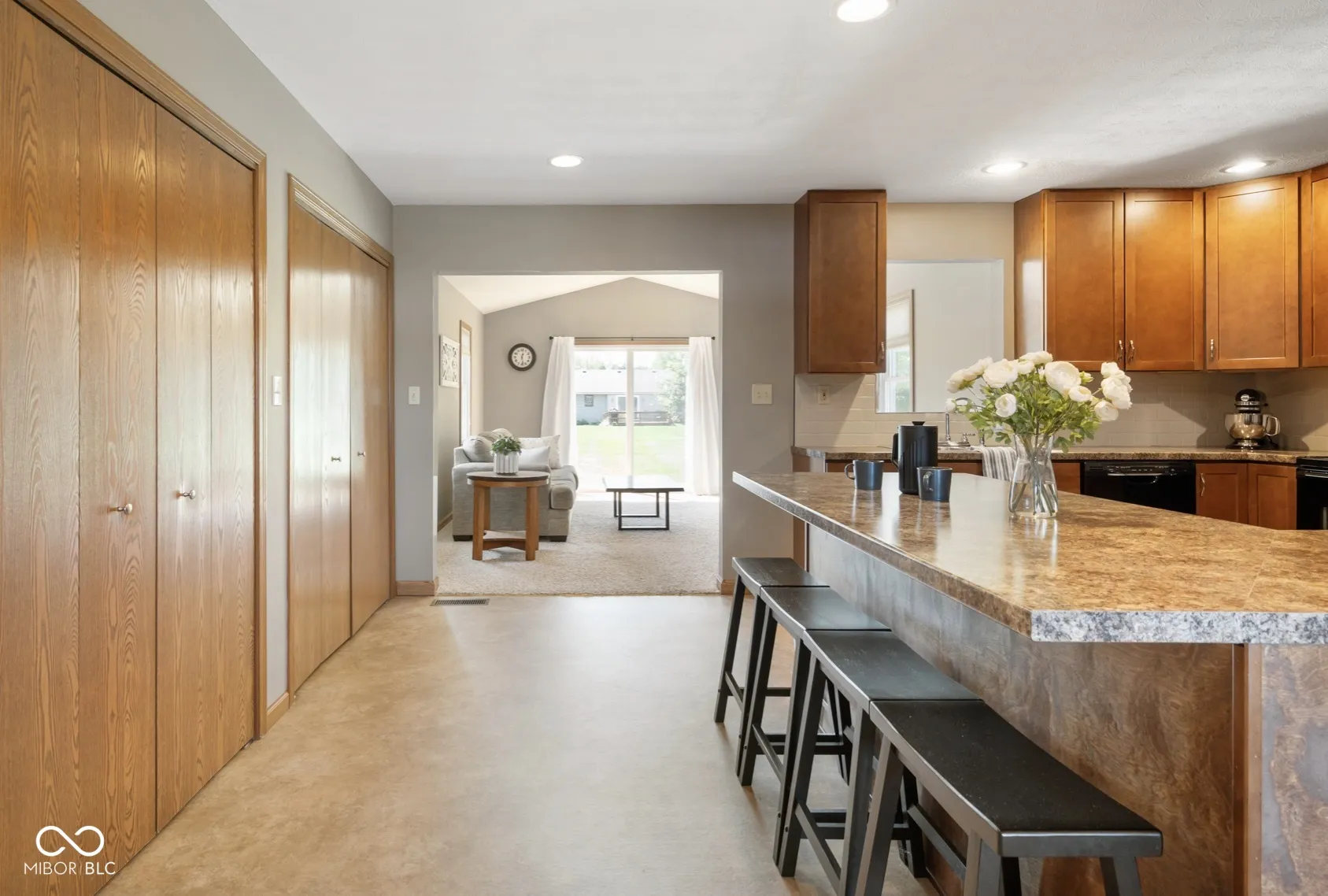 Built in 1995, this exceptionally well-maintained ranch home offers 1,395 SF of living space all on one level. The open concept design offers a large formal living room and spacious kitchen complete with bar seating and all appliances included. The cozy family room is flooded with natural light and offers views of the back lawn. The large primary bedroom is complete with en-suite for additional convenience. There are two additional bedrooms and a hall bath. The property offers mature trees, thoughtfully designed landscaping, and fenced area that could be a perfect space for your pets to run freely. The attached two car garage offers plenty of additional parking and storage options. Property is connected to city water and city sewer. Immediate possession is available at closing.