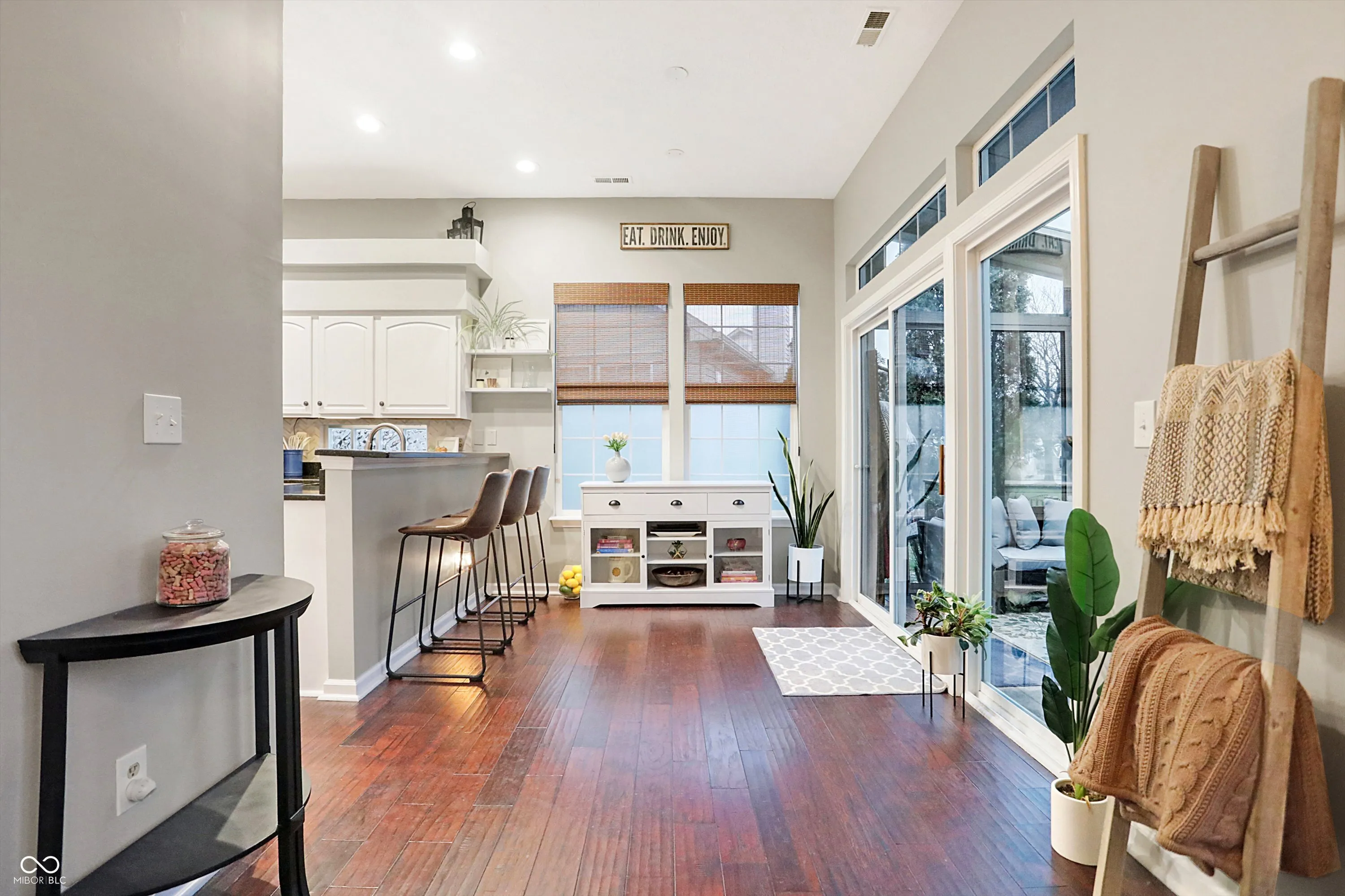 Put this house on your Christmas list ASAP! Well-maintained and perfectly updated 3 bedroom in Carmel with 2 amazing additional bonus spaces–one upstairs finished rec room/office accessible by a finished stairway in the garage, and an enclosed glass porch that allows you to feel like you’re outside without having to deal with the elements! It’s a plant lovers dream room with all the windows and natural light, but if you prefer the outdoors, enjoy the fenced backyard with perfectly apportioned deck space between the house and private she-shed/man cave complete with electricity and a ceiling fan! Inside the home enjoy the versatile full wall of storage built in cabinets in the kitchen as well as the cozy fireplace, visible from both living and dining spaces. High ceilings in the primary makes it feel grand and the en suite bath with tub and large walk-in closet is the perfect retreat. On top of all this, the home is located super conveniently just east of 96th & Michigan Rd with quick access to 465, retail/restaurants and all that Carmel, Indy and Zionsville have to offer.