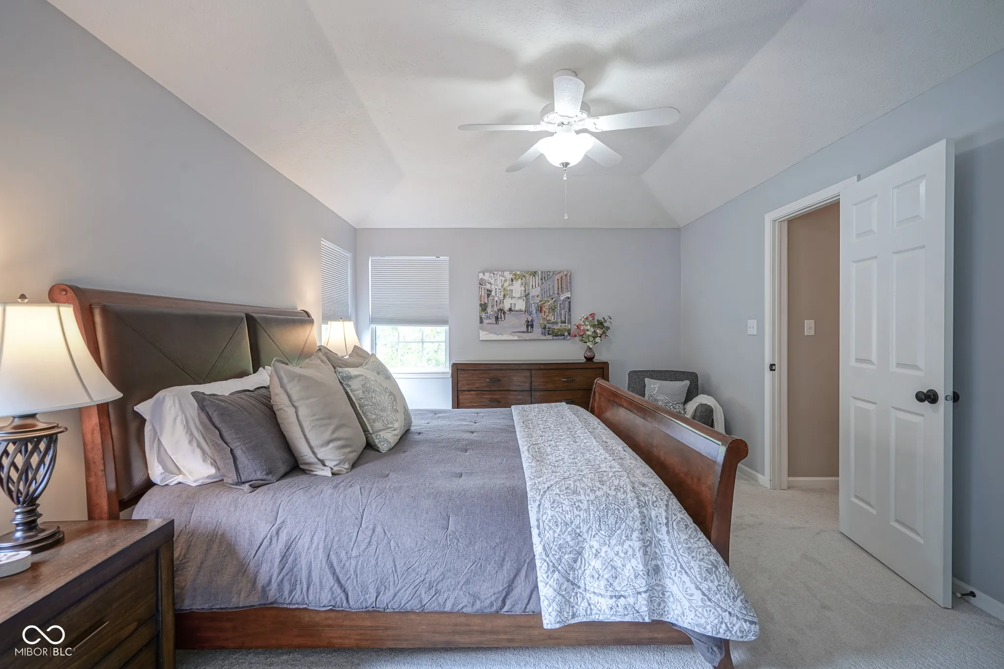 Beautifully maintained, and in a prime location on a quiet cul-de-sac just steps from the vibrant heart of downtown Fishers, this airy & open 5-bedroom, 3-bath home provides generous & versatile space for everyone! Additionally, the home features a hard-to-find basement, perfect for extra storage or finishing to your liking. With NEW carpeting and fresh paint in most living areas, the refreshed interior is bright & inviting! The main level features a covered front porch, upgraded engineered hardwoods, a sophisticated custom staircase with wrought iron spindles & exposed treads, abundant windows & natural light, and don’t miss the main-level private bedroom and full bath – ideal as a home office, play space or guest suite. The heart of the home is the kitchen, boasting a center island with a granite top, refinished white cabinetry, a built-in desk in the breakfast room, dual pantries, and bay window. All major appliances are included! The family room invites relaxation with its wood-burning fireplace + gas starter and gas logs, and opens to outdoor living on the open rear deck – surrounded by mature trees and landscaping beds for privacy & complete with a gas line for grilling, and extra storage shed. Upstairs, retreat to the private Owner’s suite with a fully remodeled ensuite bath, featuring a spacious tiled walk-in shower and a divided walk-in closet + three additional spacious bedrooms and third full bath with double vanity. Located within walking distance of the Nickel Plate Trail and just minutes from Cheeney Creek trails and Ritchey Woods, this home is in the award-winning HSE School District. Don’t miss out on the opportunity to make this amazing home yours!