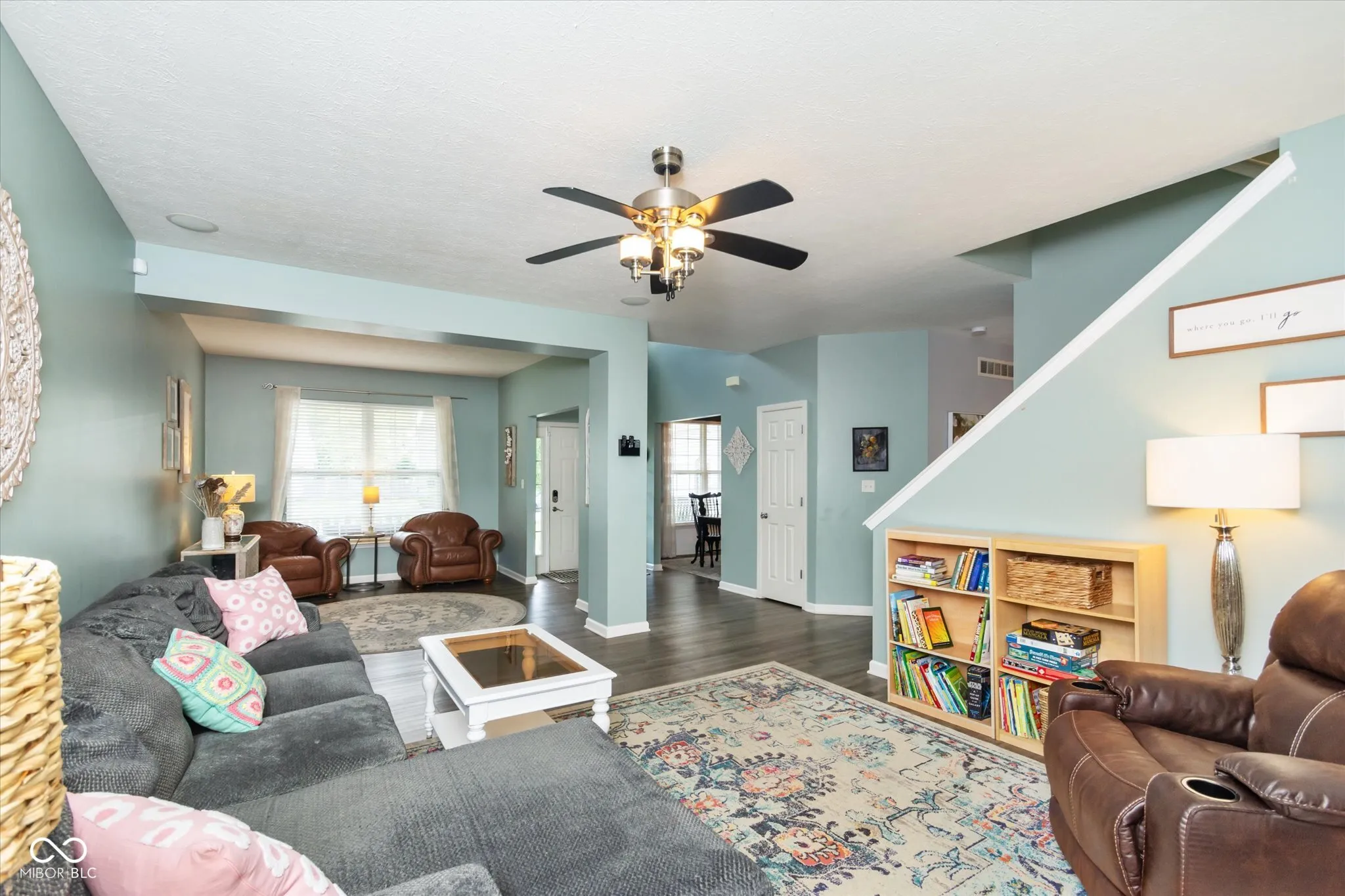 Move in ready 4 bedroom, 3.5 bathroom home with finished basement in great Fishers location! Welcoming covered front porch leads to open living space with 9′ ceilings on main level. Spacious Family Room with gas fireplace. Living Room and Dining Room provide extra space for entertaining and family gatherings. Updated eat in kitchen with granite countertops, stainless steel appliances & tile backsplash. Low maintenance LVP flooring on main & upper levels. Finished basement with 2 Rec Rooms, Office, Full Bathroom & Storage Space! Primary Suite features gas fireplace, double sinks, jetted tub & separate shower, vaulted ceiling & walk-in closet. New deck overlooks fenced in backyard. Oversized garage large enough to accommodate 3 vehicles and lots of extra storage space. Many recent improvements include: new HVAC system, sump pump, dishwasher, deck, LVP, fence, lockers in garage. Royalwood amenities include pool, basketball court, park/playground & exercise trails. Sellers willing to pay concessions for buyer’s closing costs, interest rate buy down and allowable expenses with acceptable offer. Located minutes from HSE schools and close to shopping & restaurants!
