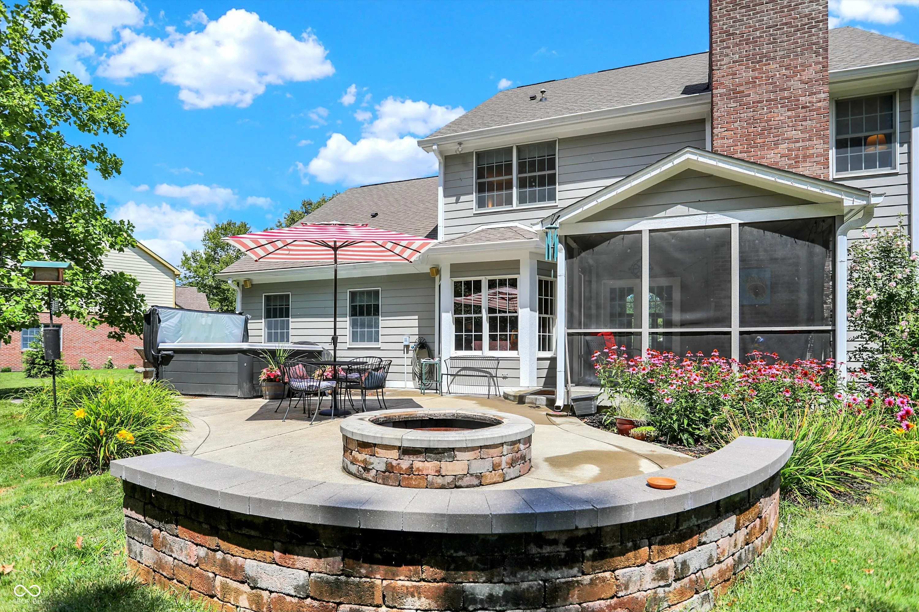 Popular Spring Knoll neighborhood home nestled at the end of a quiet cul-de-sac! You will love your secluded backyard with hot tub (2021) and firepit area. Relax in the screened porch while overlooking the wooded paths leading to the Big 4 Rail Trail. Beautiful perennial flowers line the concrete patio. The PRIMARY BEDROOM IS ON THE MAIN FLOOR and has large his and her closets. Large basement with new LVP flooring and half bath ready for entertaining! The kitchen’s large quartzite island/breakfast bar opens to the family room with gas fireplace. All brand new stainless steel kitchen appliances. The kitchen’s large bay window lets in beautiful natural light. Head upstairs to the giant loft central to the other 3 bedrooms. The loft space is perfect for a second family room or entertainment center. The large 3 car garage is ready for your electric vehicle. You will love the updated lighting throughout the first floor. Walk to the 4 star Zionsville schools! Roof (2018), Furnace (2023), Water Heater (2019).