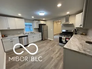 There is so much NEW in this completely remodeled home you just won’t believe it! New roof, new siding, new gutters, new interior and exterior paint, new trim inside …. whew! Completely new bathroom with beautiful tiled walk-in shower, new sink / cabinet, new lights, new toilet, stunning tiled floor! Now let’s go to the kitchen … new flooring, new cabinets, new countertops, new paint, new light fixtures, new sink & faucet, brand new stainless appliances including a 5 burner gas range, dishwasher, ventless hood vent, refrigerator! Kitchen could be an eat-in kitchen or space to add an island. Living room with possible office or dining space if you want and it has new flooring, paint, light fixtures. Both of the 2 bedrooms with new carpet, new light fixtures, new doors. New furnace, ac, gas water heater, laundry hookups. All windows are new except for the living room picture window and primary bedroom window. New wiring inside home. Come fall in love!