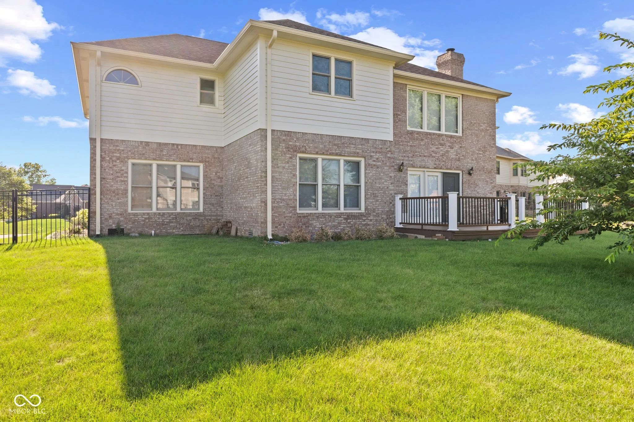 Welcome to your dream home in the coveted Greenwood Commons, within the Greenwood Community School Corporation. This stunning brick 4-bedroom, 3.5-bathroom residence is ideal for a growing family or those seeking ample space. As you step inside, be greeted by the grand entrance foyer boasting tall ceilings, setting the tone for elegance throughout. Discover your personal at-home library complete with built-in bookshelves, abundant natural light, and a cozy sitting room perfect for unwinding with a good book. The heart of the home, the family room, features soaring ceilings that invite in plenty of sunlight, complemented by a brick fireplace for cozy evenings. The gourmet eat-in kitchen is a chef’s delight with stainless steel appliances, a center island for meal prep, a breakfast bar, and ample cabinet and counter space. Adjacent is the dining room with beautiful hardwood floors, seamlessly connecting to the spacious living room. Upstairs, retreat to your expansive primary suite offering a serene sitting area. The luxurious primary bathroom boasts double sinks, a large corner bathtub, a spacious shower stall, and a private water closet. Three additional generously sized bedrooms share two well-appointed bathrooms. The largest bedroom includes an extra sitting room, perfect for a playroom or in-law quarters. Step outside to your back deck overlooking the expansive backyard, perfect for outdoor gatherings and relaxation. Additional features include a 3-car side garage, ensuring plenty of parking and storage space.