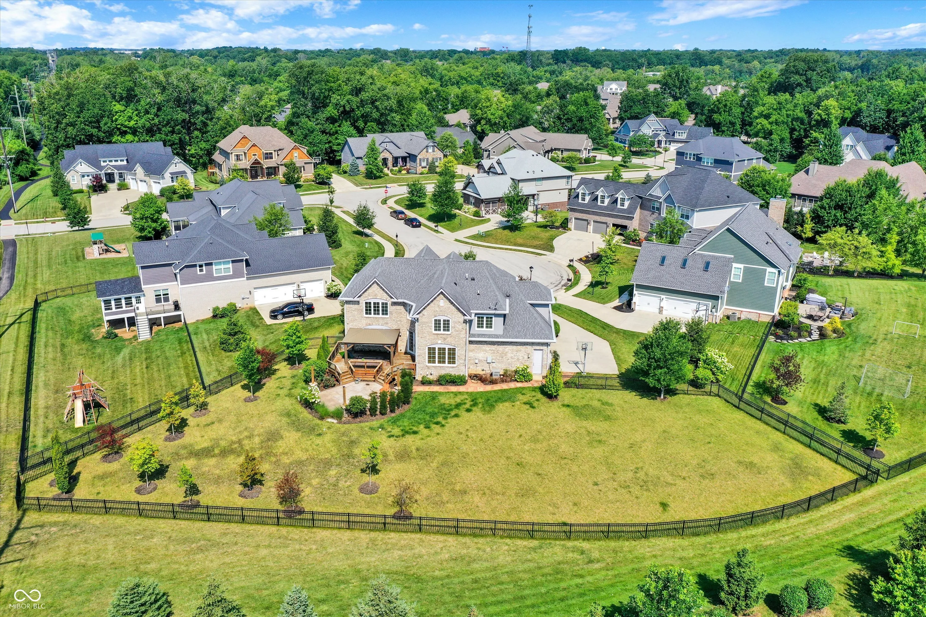 Seller offering $5,000 credit for improvements! Nestled on a tranquil cul de sac, this luxurious 4-bedroom residence offers both elegance and comfort. As you step inside, you’re greeted by an open floor plan that seamlessly blends modern design with cozy charm. The family room, bathed in natural light from numerous windows, provides a warm and inviting space for relaxation. The gourmet kitchen is a chef’s delight, featuring abundant cabinet space, a large island with extra seating, and high-end appliances. Adjacent to the kitchen is the harvest room, perfect for intimate meals and gatherings. A newly enclosed office offers the ideal work-from-home environment, combining privacy with convenience. Upstairs, discover all four bedrooms, including the exquisite owner’s suite. This sanctuary boasts double sinks at separate vanities, a Jacuzzi tub, and a tile shower. The conveniently located upstairs laundry room includes a utility sink, adding to the home’s practicality. The finished lower level is designed for entertainment, offering ample space for various activities and a spa-like full bathroom with a steam room and Jacuzzi hot tub. Whether hosting guests or enjoying family time, this space adapts to your needs. Outdoors, unwind under the pergola, gather around the fire pit, or enjoy the expansive fully fenced-in yard. This home is perfect for creating lasting memories and offers a luxurious lifestyle in a serene setting.