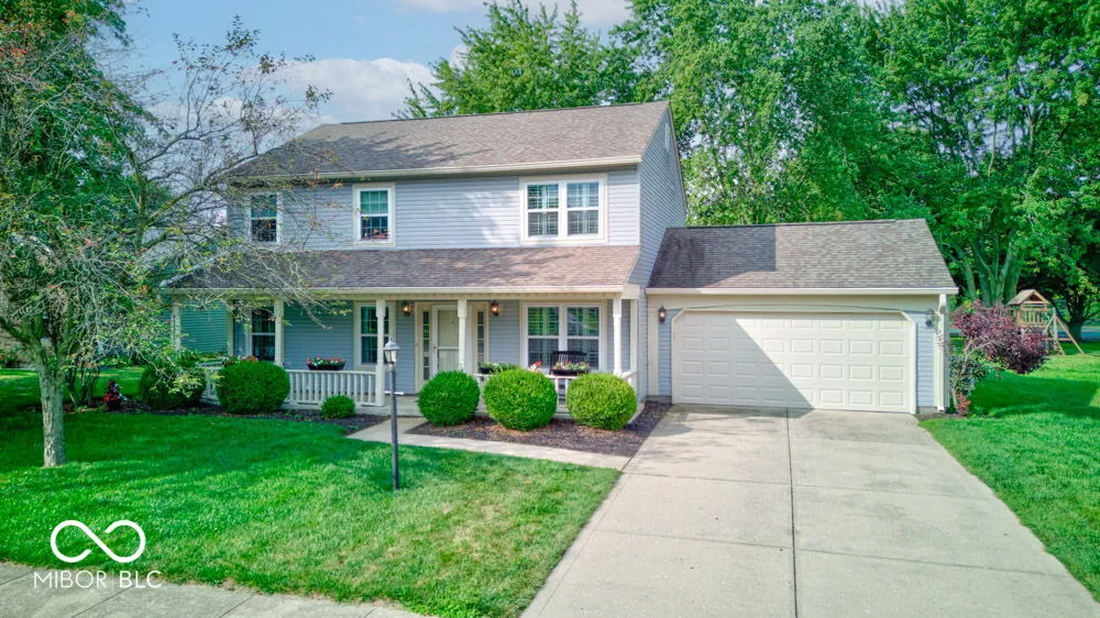 Charm meets convenience in this delightful 4-bedroom 2 story home in McFarland Farms!! Spend your evenings with family on your large covered front porch. Embrace the tranquility of the landscaped backyard oasis, your own private retreat after a long day. The home offers a private patio area, large lot with mature trees, and views/easy access to community tennis courts and pool. The whole family can park inside during those Indiana winters as this home offers a hard to find 4 car garage. This extra space could easily be converted into additional living space for the family. The home also offers a two-room attic above garage for extra storage. On Main Level you will find a Living Room, Family Room, separate dining room along w/Half Bath, and Large Kitchen with removable center island! Upstairs offers 4 large Bedrooms, each with ample closet space! The oversized master suite has double sinks and a walk-in closet! This Home has been Updated & Well Maintained!
