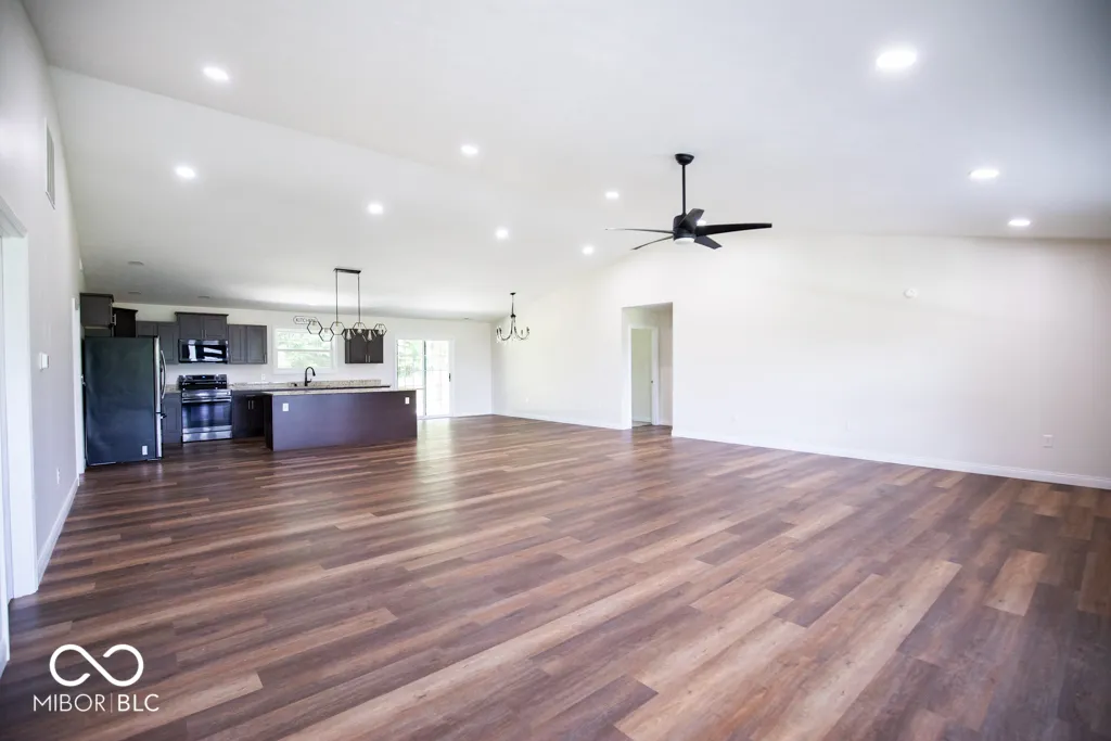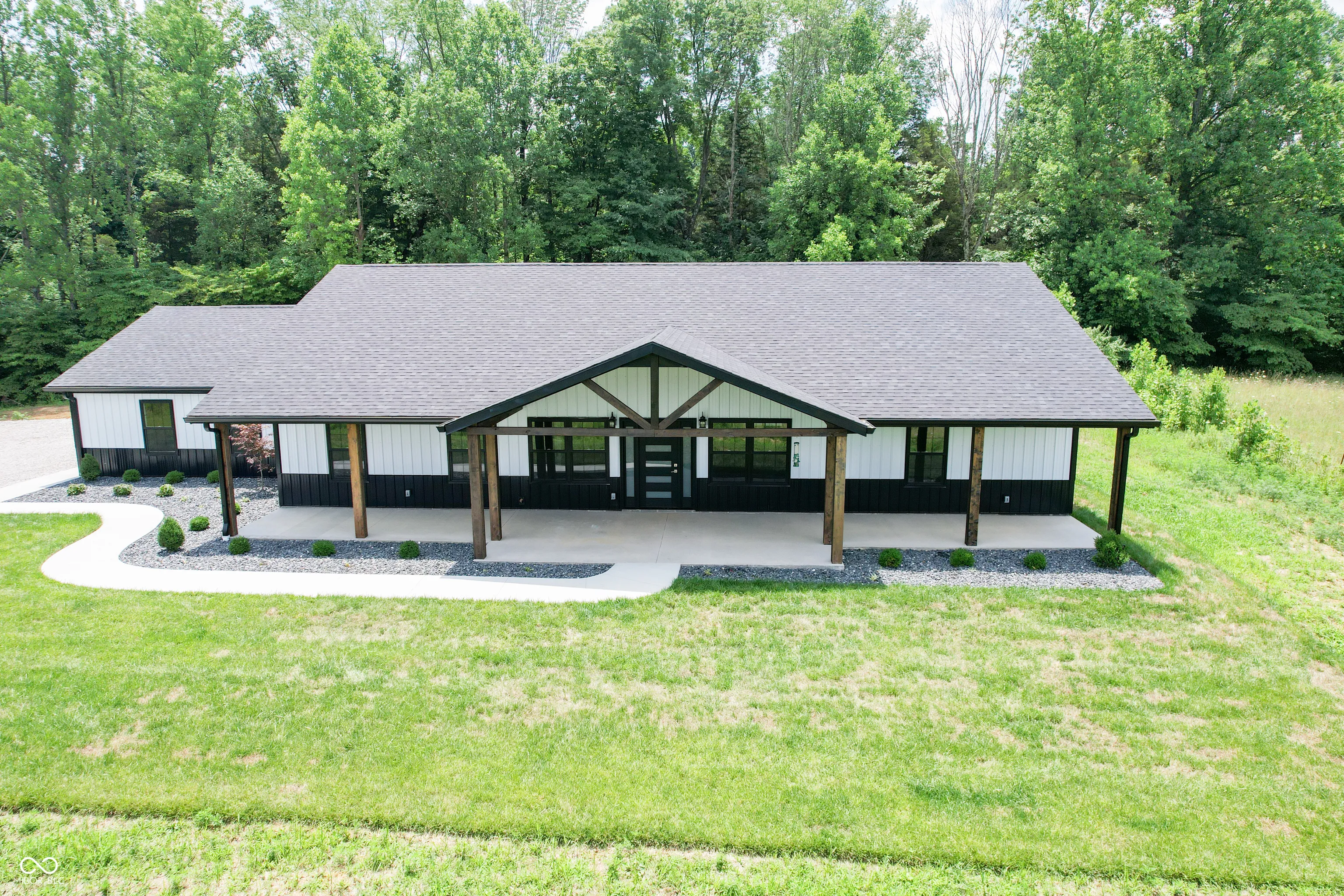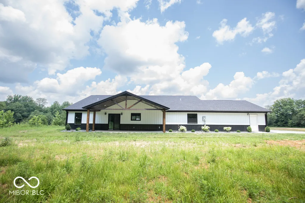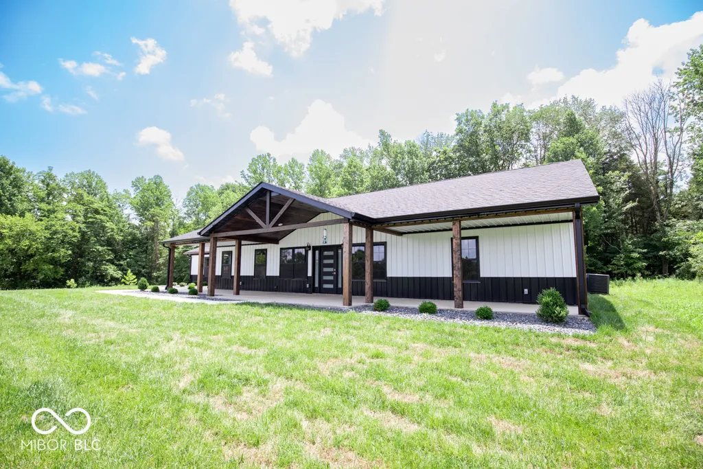 Escape to this new, secluded home surrounded by 7.49 acres of untouched wilderness in North Vernon. With 3 bedrooms, 2 bathrooms, and 2,420 square feet of living space, walk-in pantry, this property offers a peaceful retreat. The open floor plan and vaulted ceilings cultivate a sense of spaciousness and freedom. The primary bedroom offers a walk-in closet, whirlpool tub, ceramic tile shower and double sink. The kitchen features granite countertops and new stainless appliances, combining style and practicality. There are many extras to this property including outside spigots, hot and cold. Unwind on the airy front and back porches with their unique vaulted cedar wood ceilings. Embrace a lifestyle of serenity and natural beauty in this remarkable sanctuary.