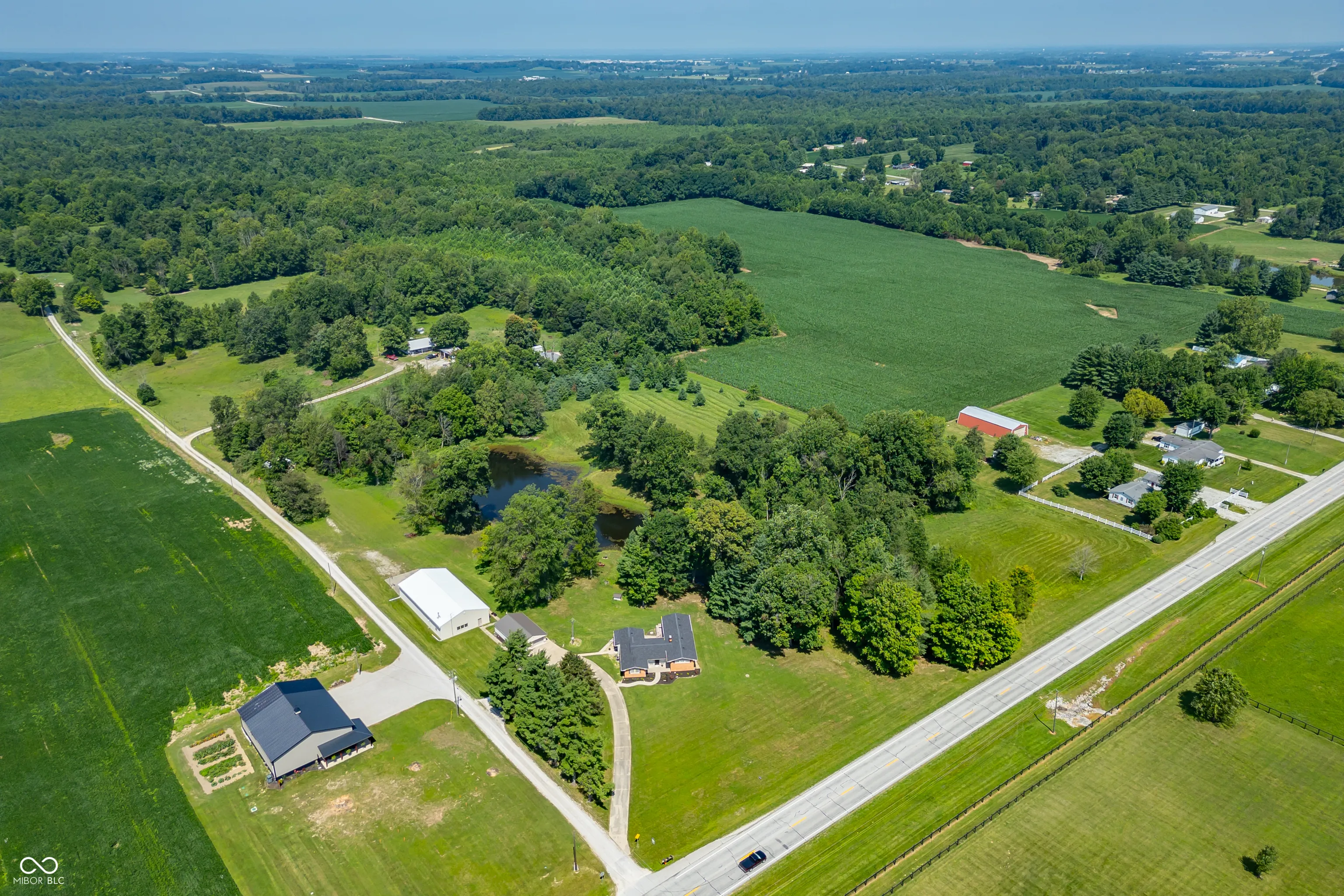 Motivated Seller!!! Discover your dream retreat nestled on 11.2 acres of prime real estate, perfectly positioned for easy access to both Louisville and Indianapolis. This stunning property boasts 3 or 4 bedrooms and 2 full baths, alongside a large detached garage ideal for multiple vehicles. A standout feature is the massive 3200 sqft workshop, measuring 40×80 feet and equipped with 220 power and 3 phase electric, a 10×12 overhead door, and concrete floors. This versatile space is heated and cooled, offering an additional living area complete with a kitchen, full bath, and a cozy wood-burning stove-an ideal setup for hobbies or business ventures. Outside, a picturesque pond adds to the property’s charm, creating a serene backdrop for relaxation and enjoyment. Additional storage is available with a 21×24 detached garage located at the rear of the property. Recent updates in 2021 include a new roof, HVAC system, water heater, sump pump, and updated flooring, ensuring modern comfort and efficiency throughout. Whether you’re seeking a peaceful sanctuary with ample space to work and play, or a place to unleash your creativity, this property offers unparalleled opportunities. Schedule your viewing today and make this exceptional property yours!