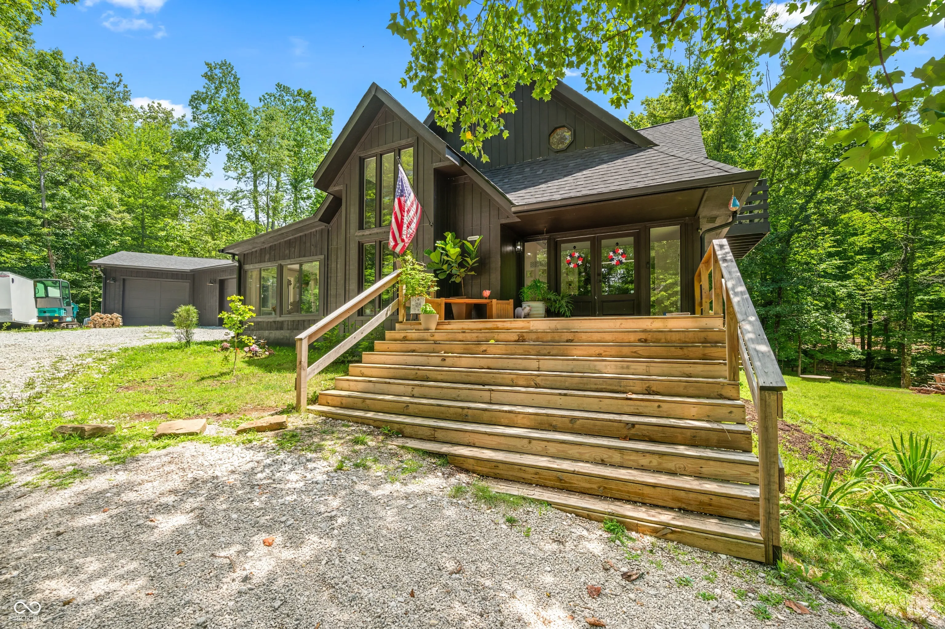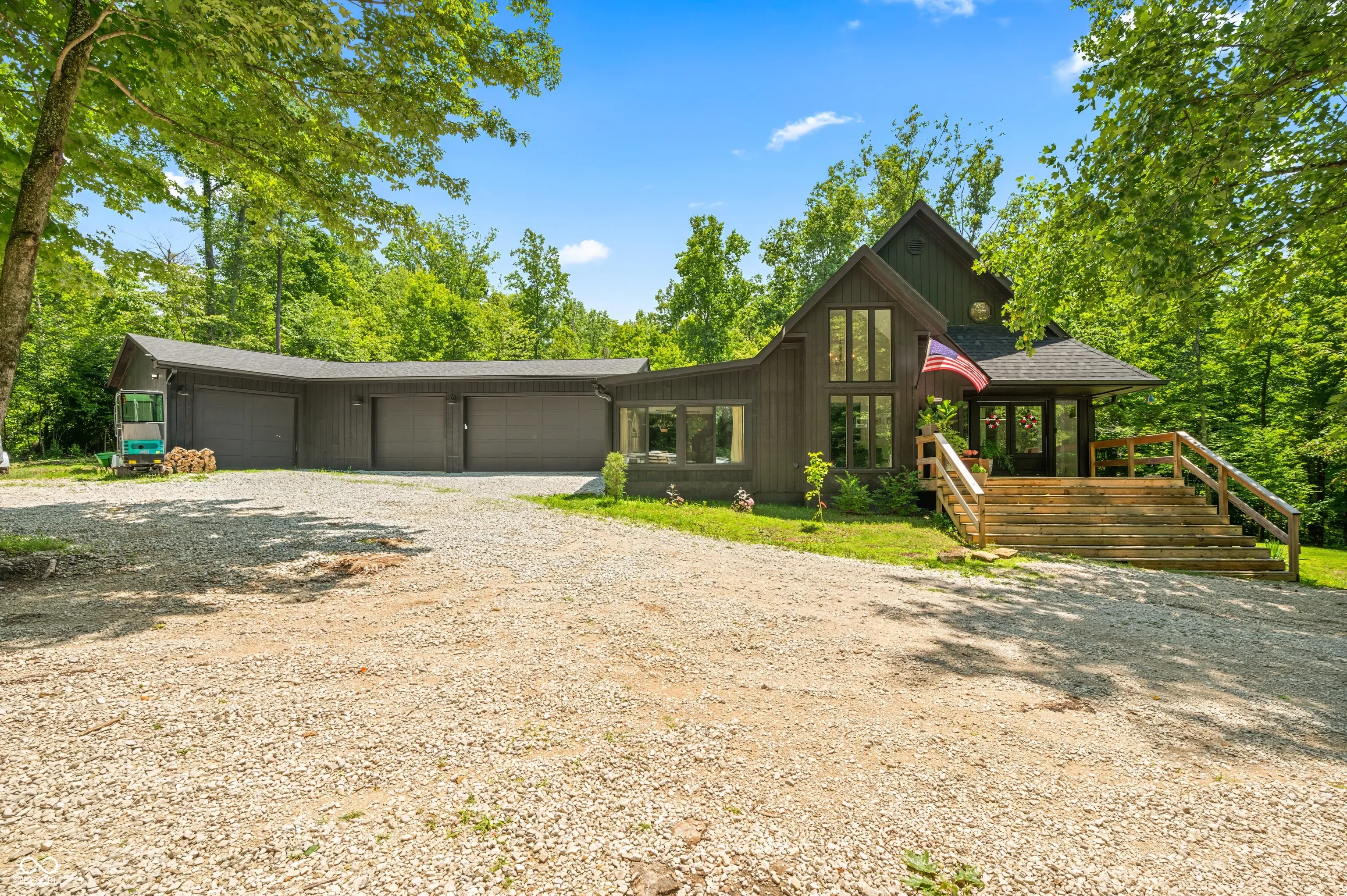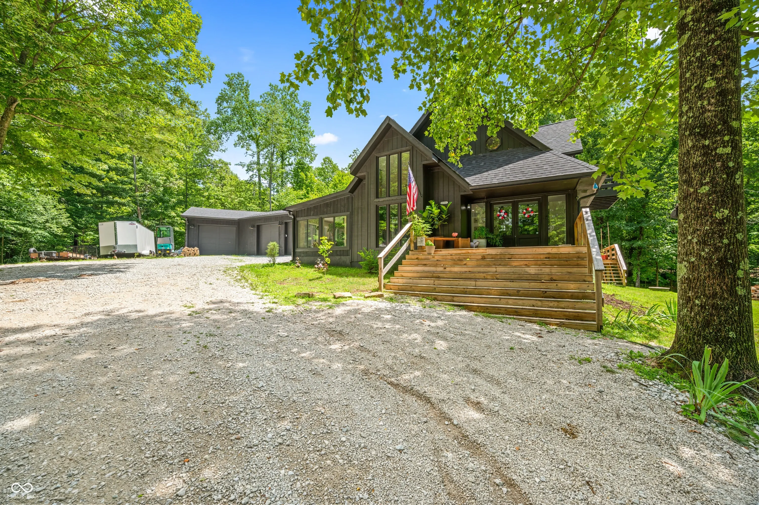 Welcome home to this wooded 5 acre beauty in the hills of Brown County! Completely remodeled and updated this home boasts 3 bedrooms 3 full bathrooms and ample storage!! Office space listed is currently being used as additional bedroom. Primary with stunning ensuite on main with additional bedroom and full bathroom. The huge open ceilings in the living room with floor to ceiling windows allow for tons of natural lighting. The kitchen is a dream! Complete with a HUGE pantry!! All stainless steel appliances stay in the kitchen to allow you to move right in and are only 2 years old. Step out to the 4 season sunroom from the primary or the living room. Equipped with its own heating and cooling system you will find your new favorite spot of this home. Now lets step upstairs. You will enter the loft area and 2 more bedrooms. Larger room has access to yet another deck to sit and enjoy the sounds of nature. Rounding out the upstairs with one more full bathroom, the laundry room and TONS of storage. This home has everything you can dream of. Lets not forget the expansive 4 car garage and fully encapsulated crawl space with spray foam insulation! Now that we have covered all the home has to offer lets take a stroll outdoors. Newly cut trails for walking or riding your 4wheelers around. Nice sized yard for entertaining but leaving tons of trees for privacy and seclusion. Plus plenty of parking for all your friends. This really is the dream home you’ve been looking for!!