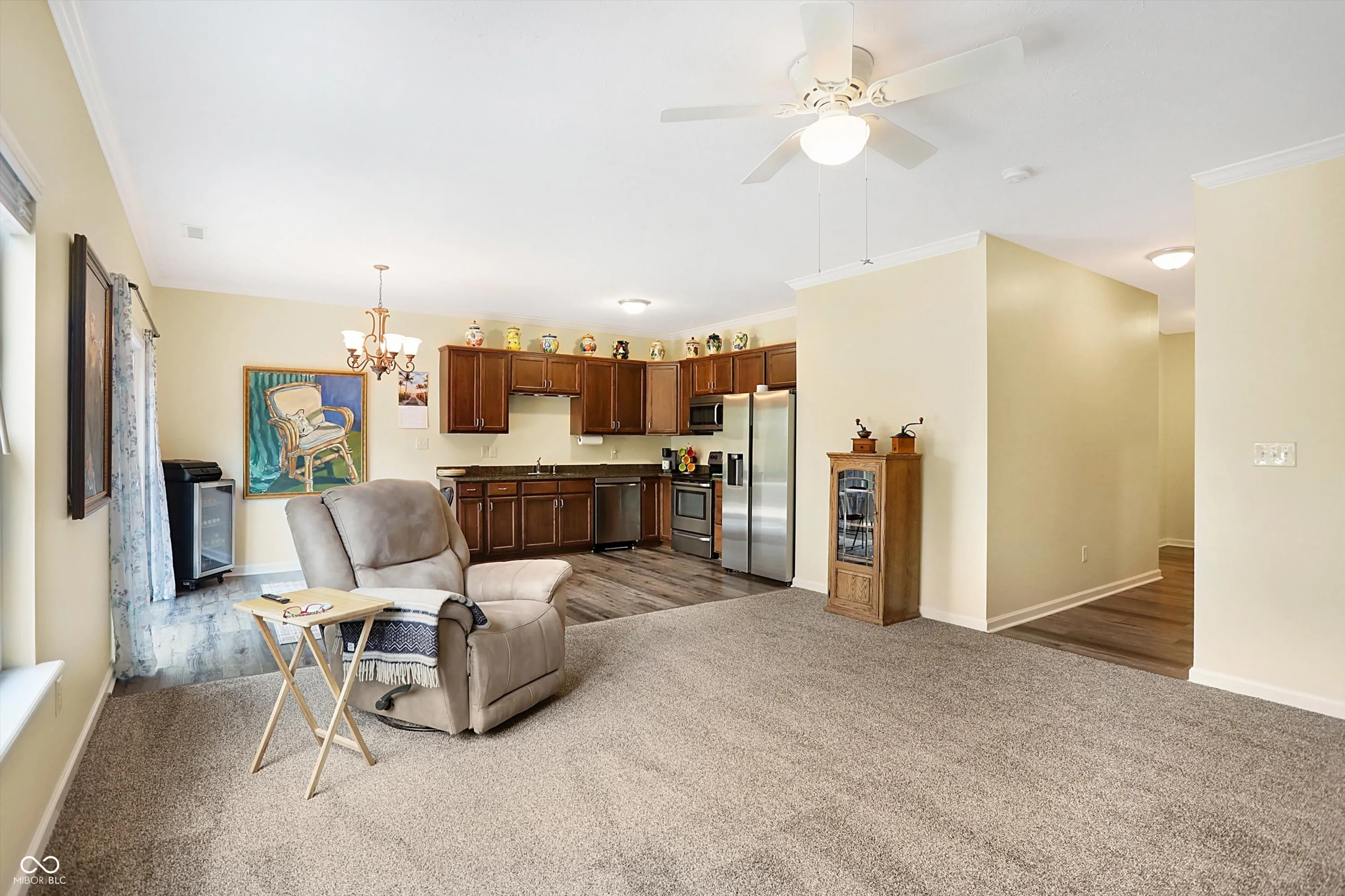 Pristine ranch home w/ great curb appeal on private, wooded lot in popular Greystone Village! Open concept layout w/ 9′ ceilings features split bedroom floorplan lots of windows for plenty of natural light throughout. Freshly painted NEW carpet 2024. Entry leads to spacious Great Room bright Eat-in Kitchen w/ ample cabinet space and stainless steel appliances. NEW refrigerator 2024, NEW dishwasher 2023. Primary bedroom ensuite includes large WIC, granite counters tub/shower combo. Enjoy relaxing or entertaining on the sprawling, refinished deck overlooking the incredible backyard w/ several mature trees complete w/ fire pit! NEW A/C 2024. Minutes to Morse Reservoir and several golf courses. Peaceful serene, yet minutes to shopping dining.
