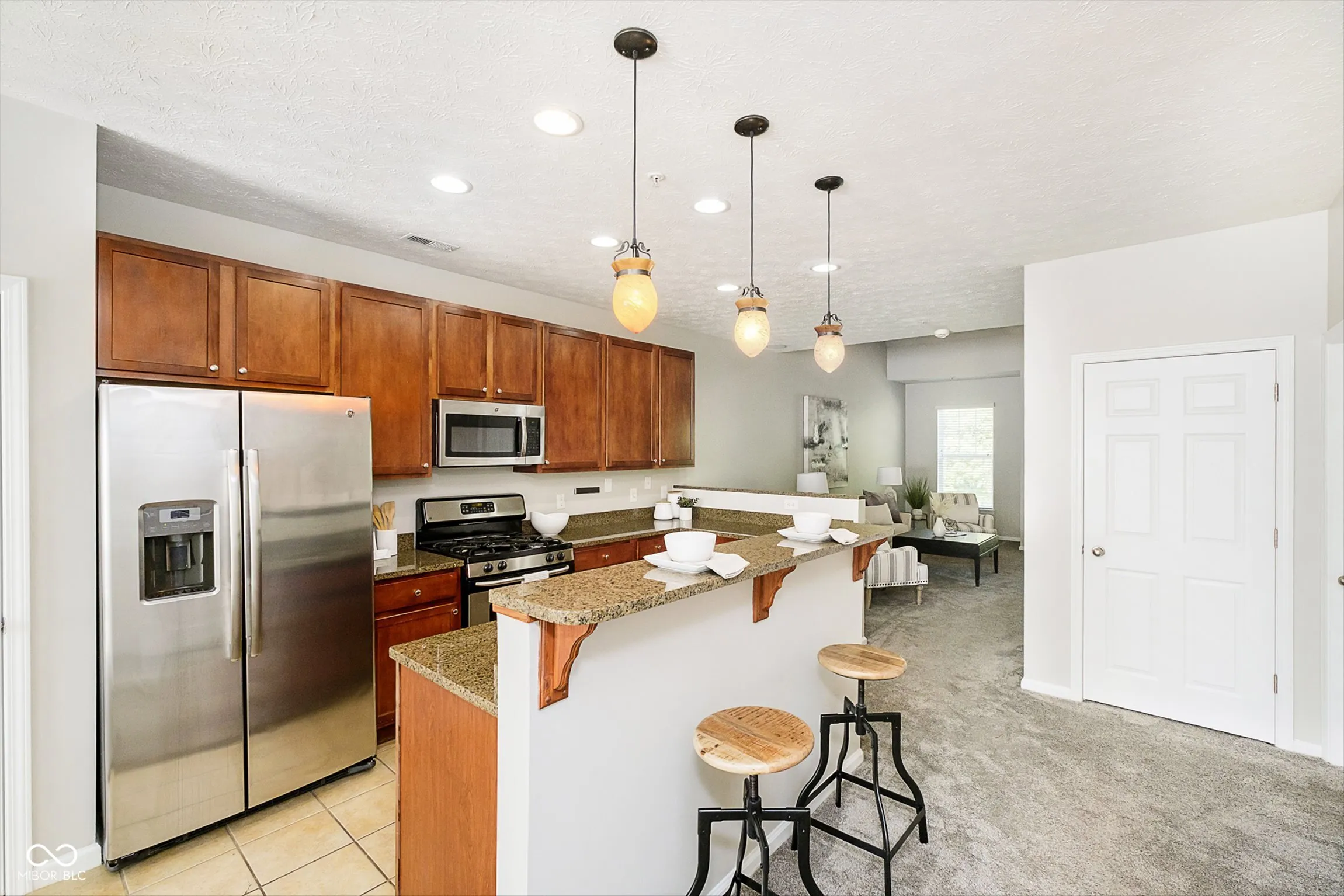 Enjoy prime location and zero-maintenance lifestyle in The Reserve at Broad Ripple! Monon Trail access is steps from your door, as is a great pool! This 3/2 condo is laid out in three levels: The basement level is a 2-car deep garage with a small mudroom / entry space. The main level has an open concept kitchen with granite countertops, stainless steel appliances, and a breakfast bar. Living and dining room spaces sit to either side. A bedroom, full bath, and a laundry room round out the main floor layout. The top floor has two more bedrooms, each with vaulted ceilings, a full bath, an office / loft space, and a large storage closet. As far as upkeep, EVERYTHING has been done here in the past 18 months: All new HVAC & smart thermostat in 2023, new water heater in 2022, new dishwasher, and in-wall surround sound speakers throughout the 2nd & 3rd levels! This home leaves you literally nothing to do but move in and immerse yourself in everything Broad Ripple has to offer!