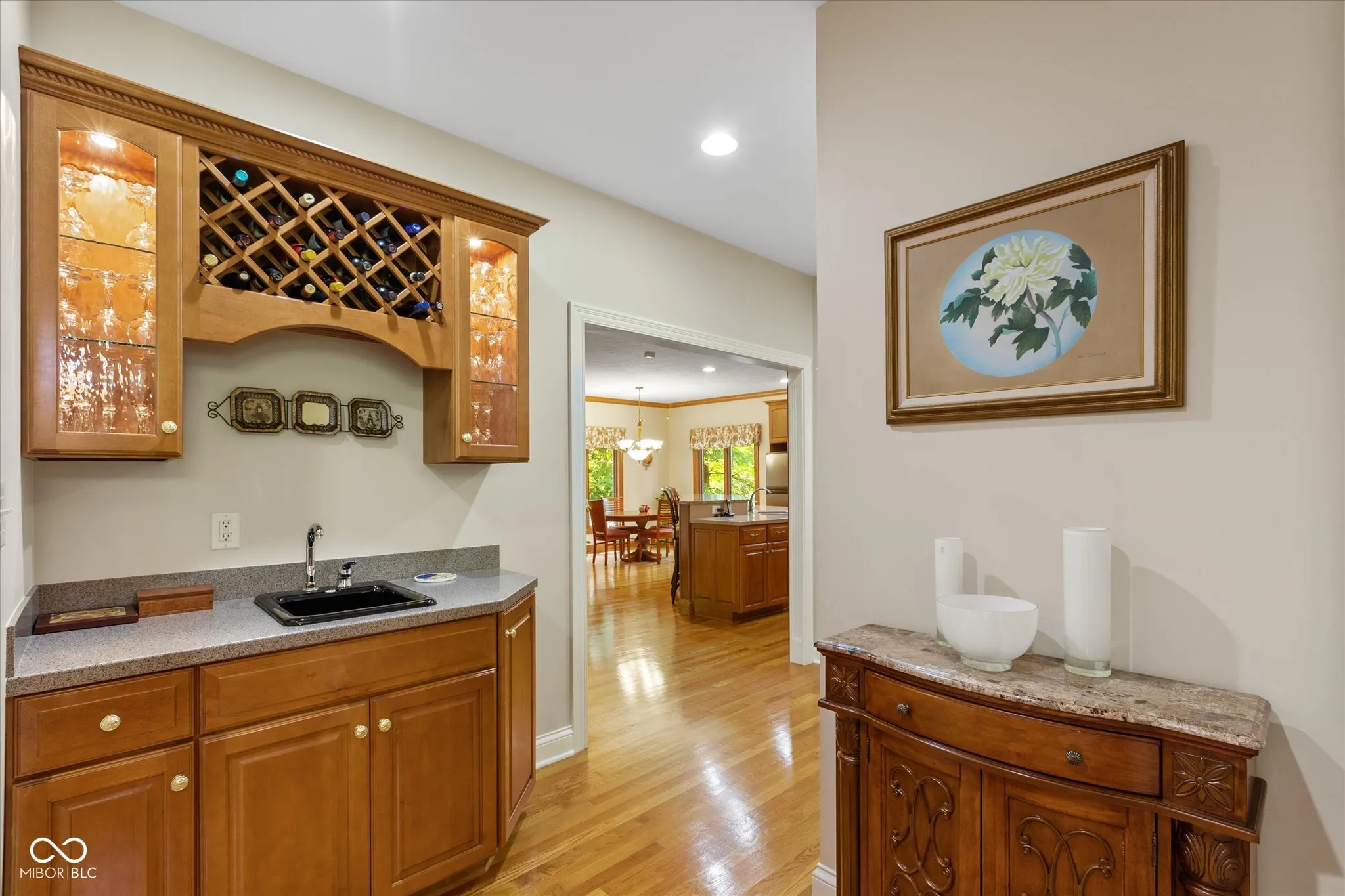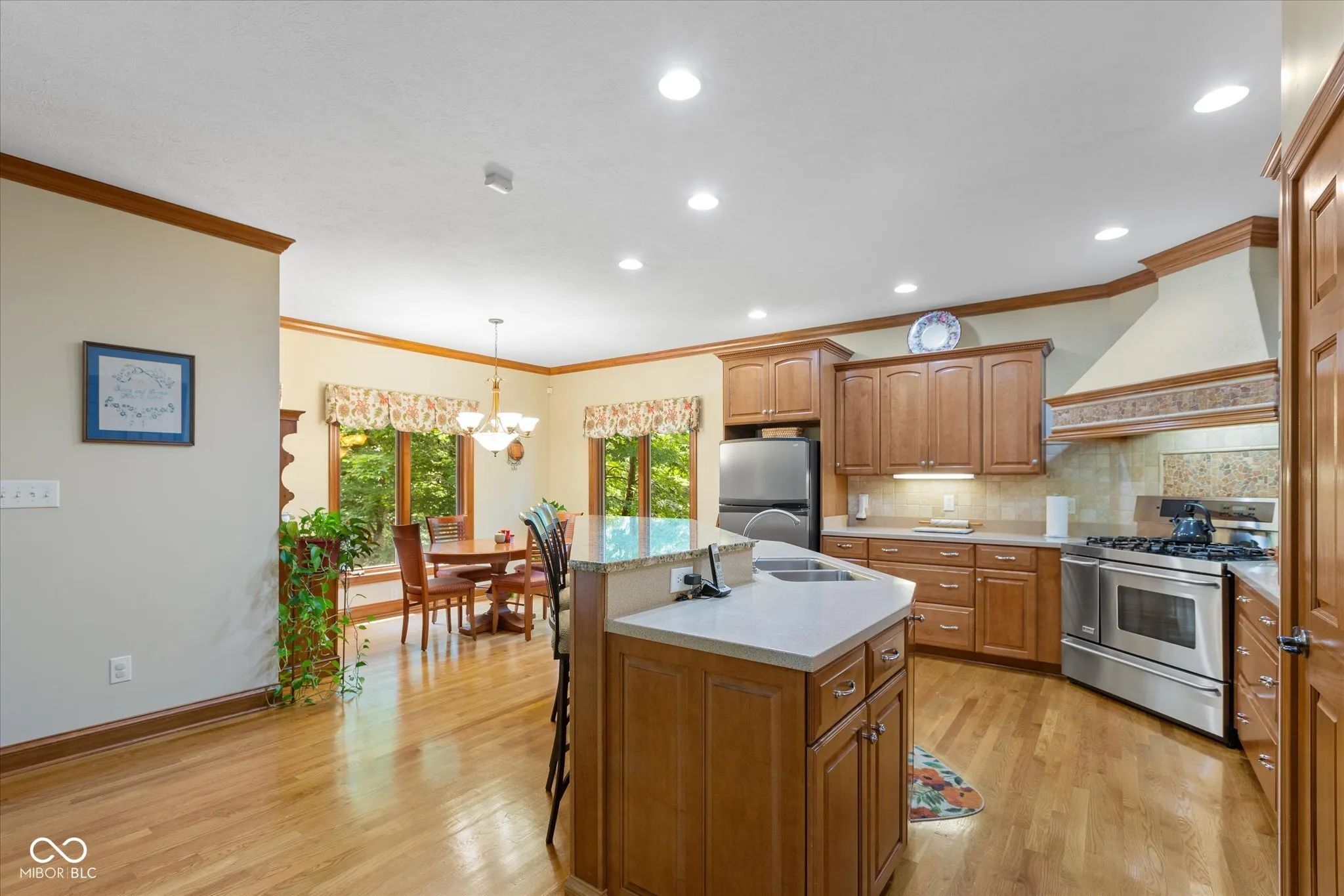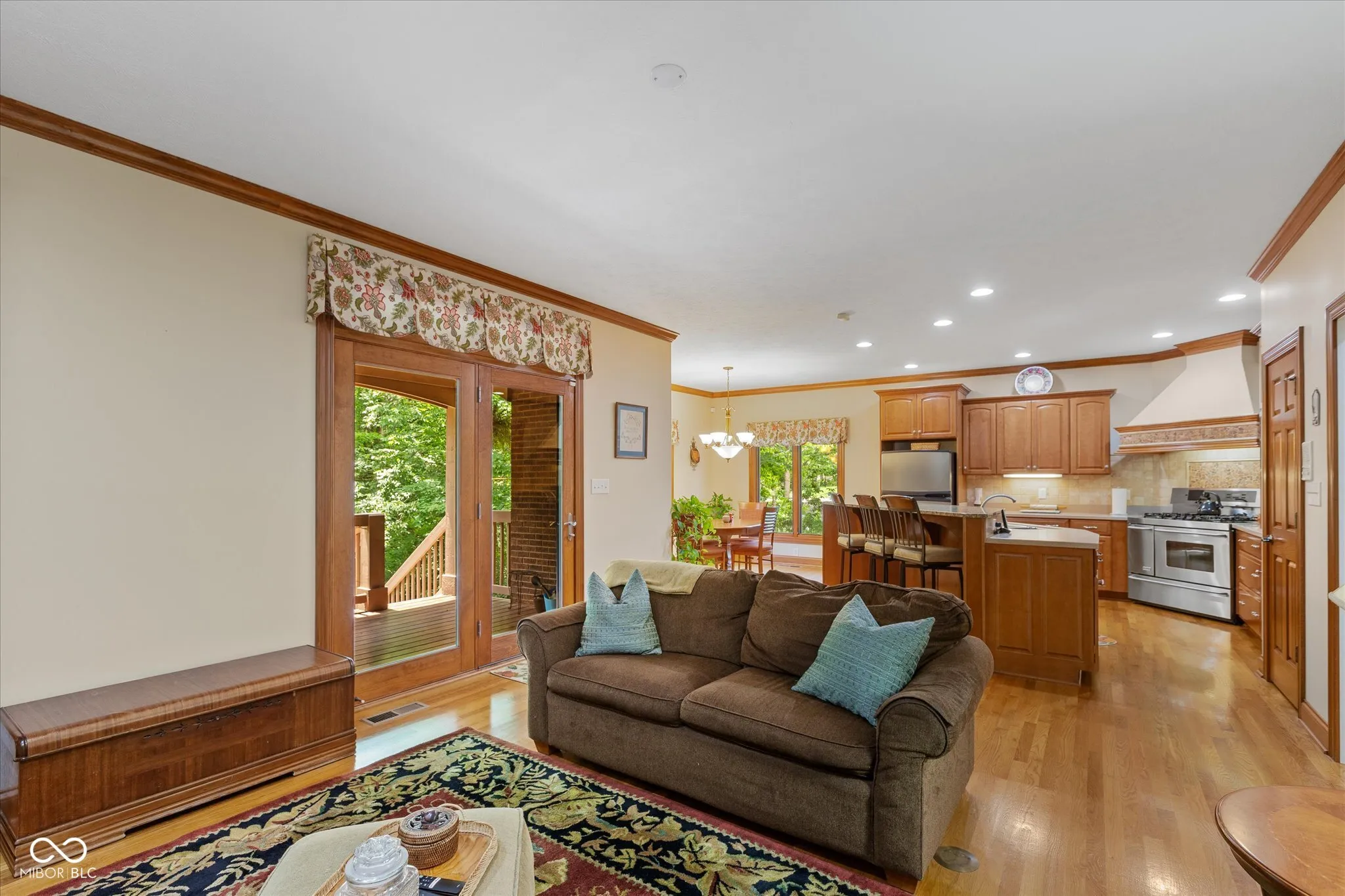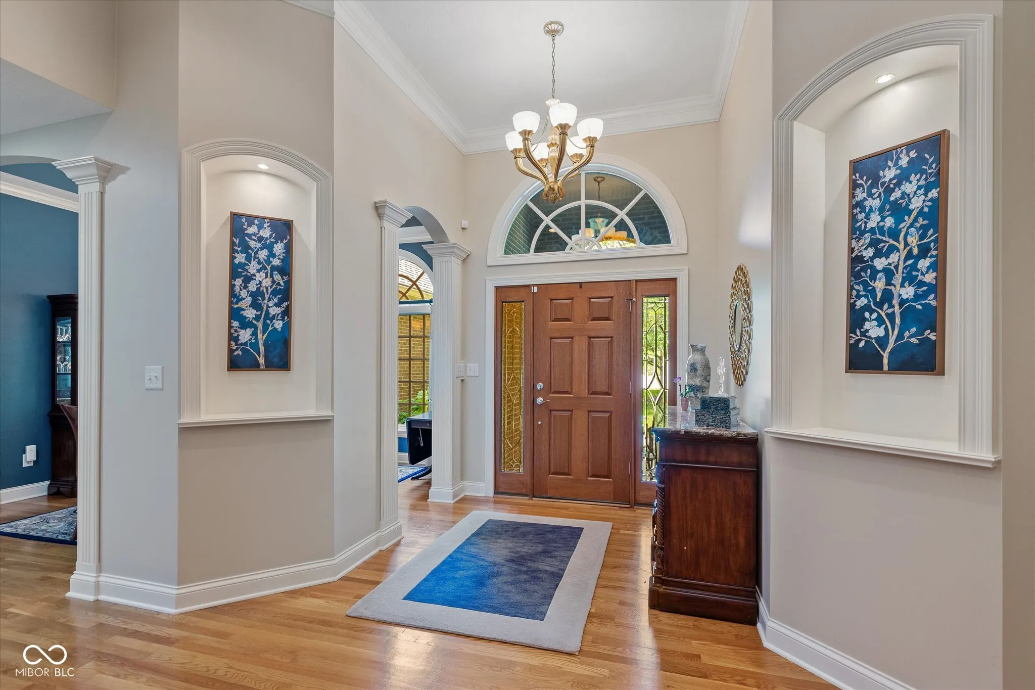 Welcome to your dream home in the highly sought-after Fox Pointe neighborhood, ideally situated across from the Indian Lake Country Club. This custom-built masterpiece boasts 4 bedrooms and 3.5 bathrooms, with an ensuite that features a luxurious jetted tub. The spacious primary bedroom offers a tranquil retreat with 12-foot ceilings, double vanities, a walk-in shower, and direct access to the deck. The large eat-in kitchen is perfect for family gatherings and entertaining, with ample space and a deck perfect for enjoying your morning coffee or night cap, which provides a treehouse-like feel with its serene views of the lush backyard. Inside, you’ll find a large office with built-in bookcases, for working from home or indulging in your literary interests. Enjoy cozy evenings by the double sided fireplaces in the formal living room with amazing 12- foot ceilings, and the other in the expansive walkout basement. The basement is a haven of entertainment and functionality, featuring 10- foot ceilings, ample storage, an exercise room, bedroom and a game room. Located in Lawrence there are plenty of dining options and outdoor activities including Ft. Harrison State Park. Triton Brewing Company, Daniel’s Vineyard, Theatre at the Fort, and Ft. Ben YMCA. Lawrence also is home to the highly rated Lawrence North High School. This home perfectly blends elegance, comfort, and convenience, making it the perfect place to call home.