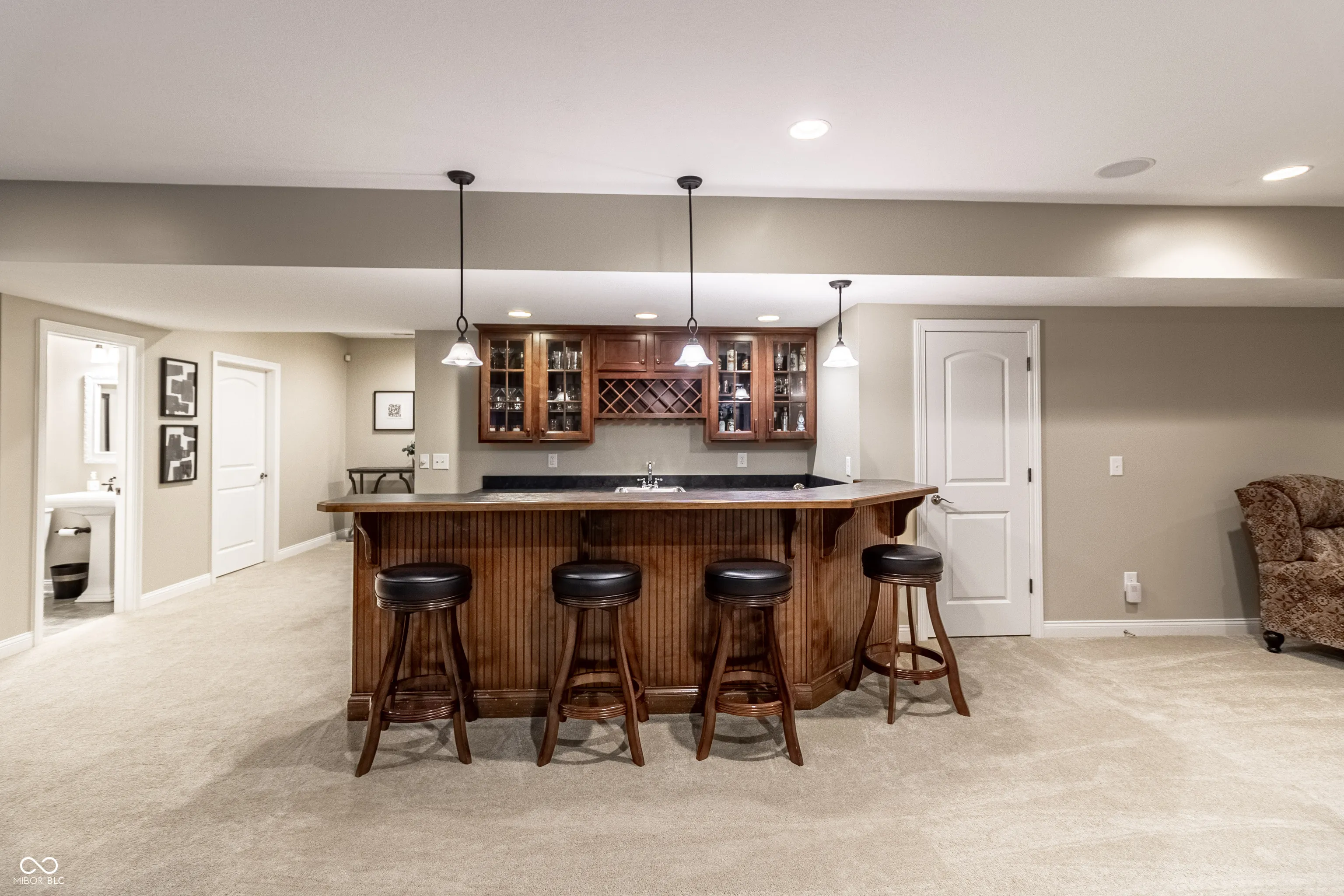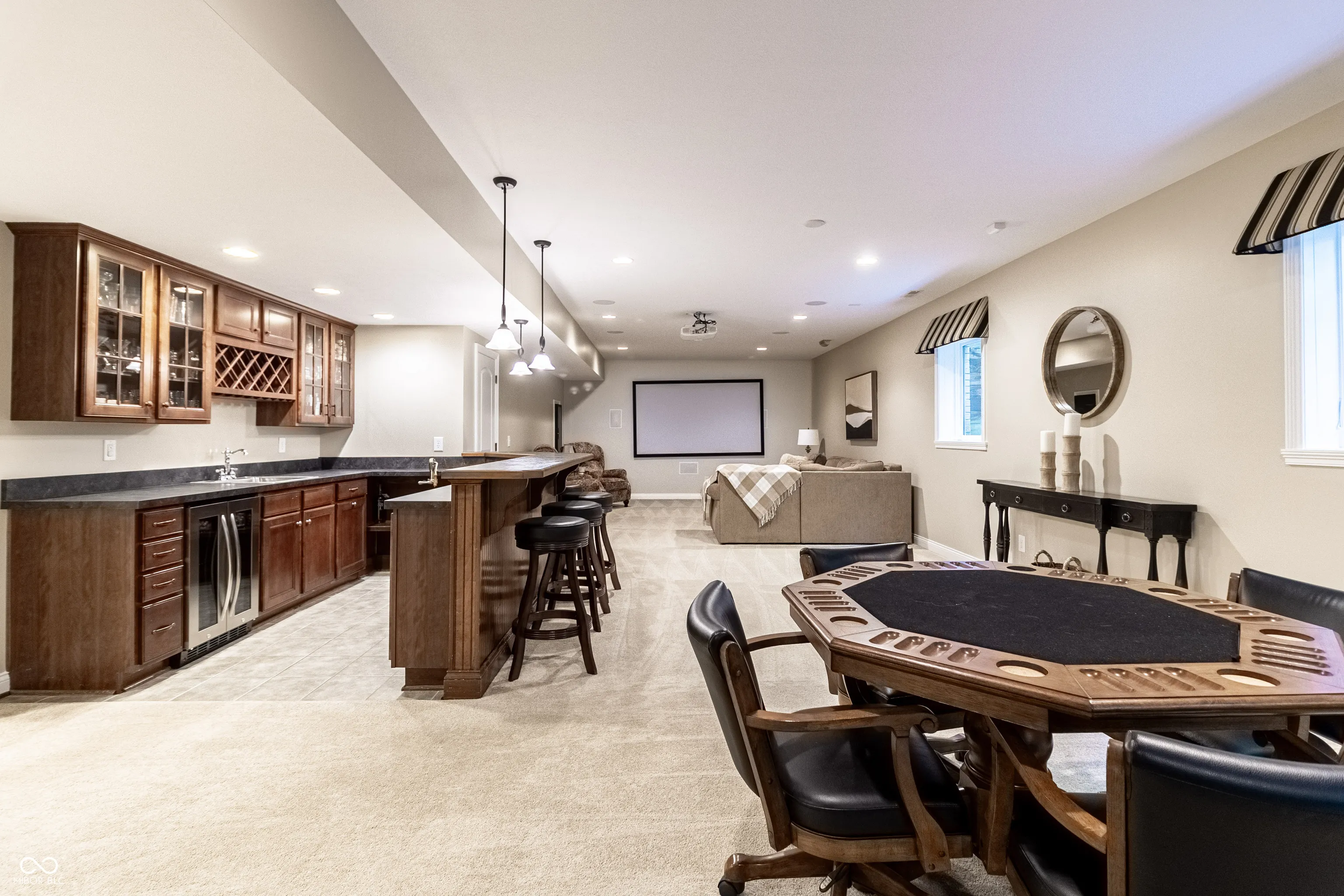 This impeccably maintained, one-owner 6-bedroom, 5-bathroom home in Fox Hollow at Geist perfectly blends luxury with cozy, outdoor inspired living. The main level features a gourmet kitchen with custom cabinetry, opening to dining areas and a hearth room with a warm fireplace. A stunning two-story family room with soaring ceilings and oversized windows fills the space with natural light. The main level also includes a private guest bedroom with a full bath, ideal for visitors or multi-generational living. Upstairs, the primary suite offers a spa-like retreat, while the additional spacious bedrooms provide ample space. A versatile bonus room on the upper level serves as a potential kids’ playroom, 4th upper bedroom, media room, or homework area. A private office with custom built-ins makes working from home a breeze. The finished basement is an entertainer’s paradise, featuring a bar, theater, game room, and wine-tasting room. Outside, the expansive tree-lined backyard offers deck and patio space, perfect for roasting marshmallows and enjoying evenings around the firepit. Embrace the perfect mix of comfort and fall vibes-don’t miss the chance to make this Fox Hollow treasure your own!