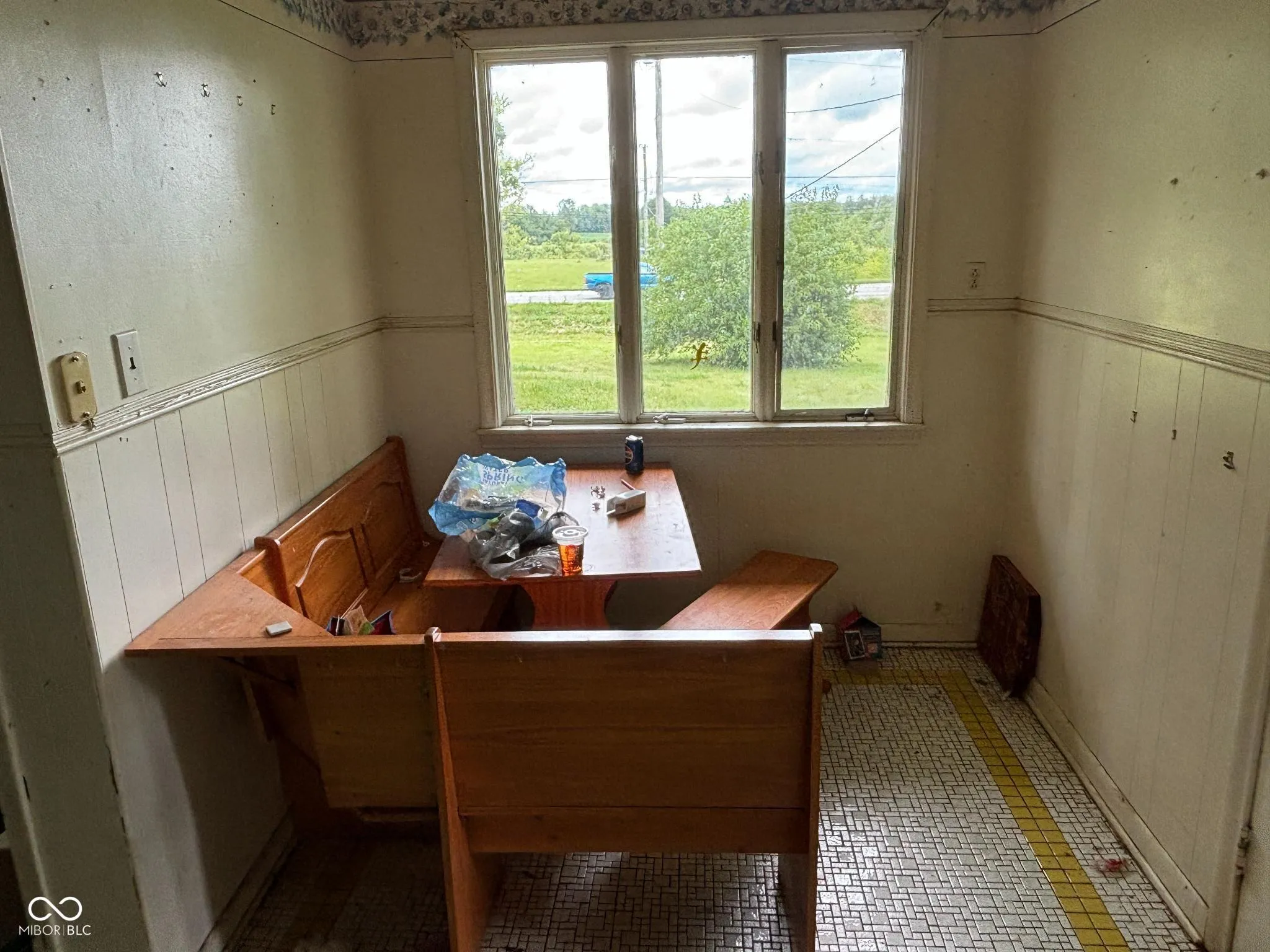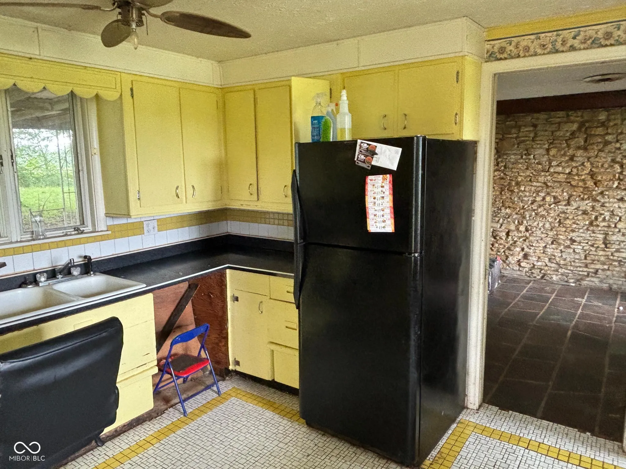 Mid Century modern flip opportunity! All of the charm and character you would expect just needs brought back to life! Nearly 1800sqft of living space featuring lots of built in storage, step down living room with full wall stone faced gas log fireplace, slate floor in entry and formal dining area, stone feature wall in dining room and one bedroom, cozy kitchen with breakfast nook, 90 plus high efficiency furnace and central air, covered patio and detached garage. Immediate Possession!