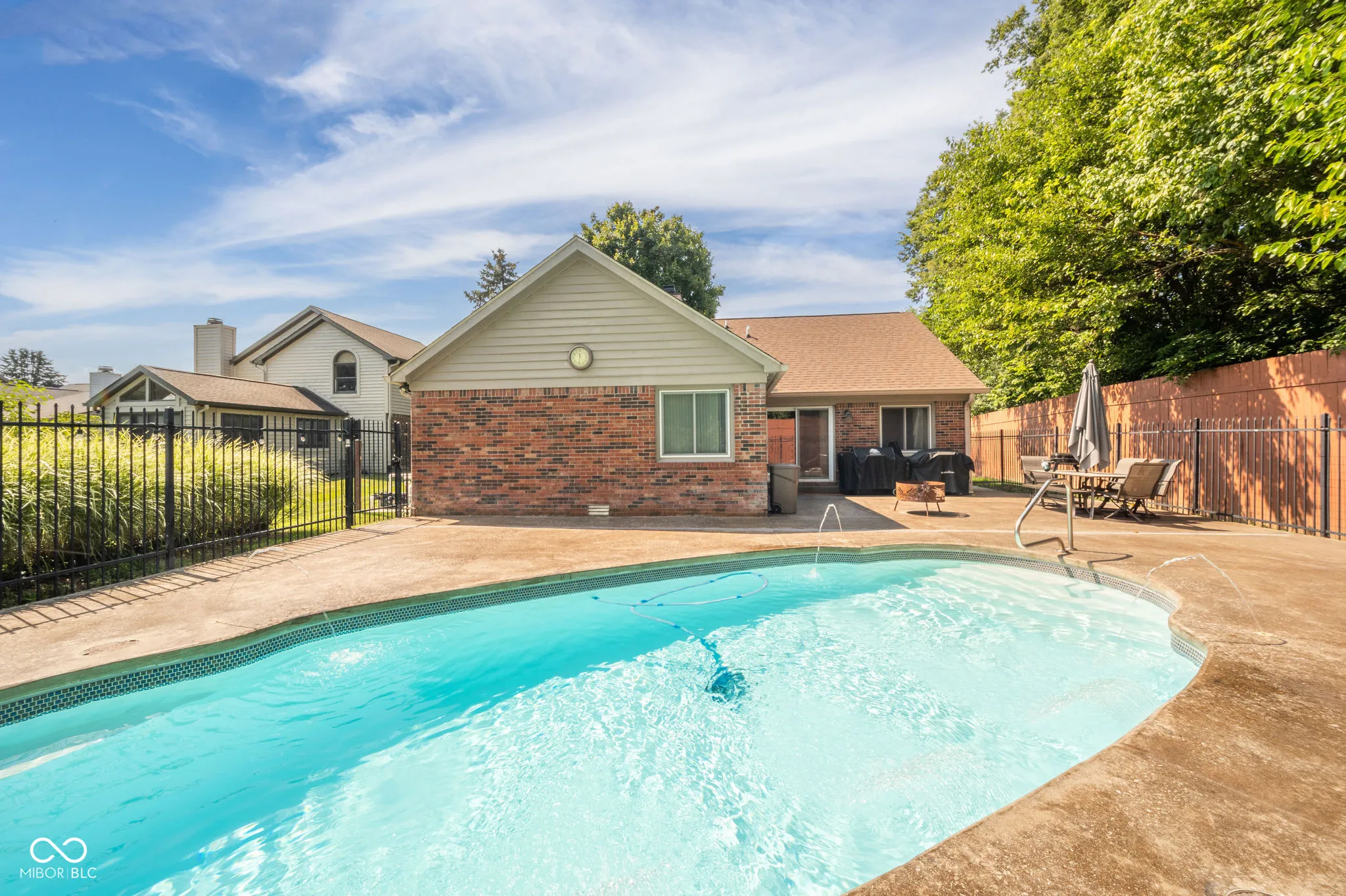 If you are ready for a low maintenance lifestyle ranch home, this could be the place for you. Your HOA fee covers your lawncare and snow removal. 3 Bedroom, 2 Full Bath Ranch in Meridian Woods Manor. Great location with quick access to the Southport I-69 exit or Bluff Rd to get downtown. Kitchen is updated with custom granite countertops, new backsplash and refinished cabinetry with new hardware. Beautiful built-ins add a nice touch to the space. Both bathrooms are updated with new granite vanities and tile floors. Open concept to Living Room area with woodburning fireplace that has a triple steel wall. Slider door opens to your fenced backyard with a sealed concrete deck surrounding your fiberglass in-ground pool with fountains and lights. Pool has a new variable speed pump, and robot vacuum. All plumbing beneath the pool is brand new. HVAC is only 3 years old, High Efficiency furnace that is Duel Fuel with a Smart Thermostat. New Roof and Leaf Guard Gutter Covers installed in 2020. Beveled Cedar Exterior added in ’20 as well. If you are entertaining, the basement provides another space. Basement has a radon system, sump pump, and dehumidifier. There is also a storage area in the basement. Garage has a side entrance door. New insulation added to attic in ’23. Privacy on both sides of the property. Privacy fence on one side and the other side by the pool faces Common Area. All stainless steel appliances are less than 3 years old. Electrical has been updated and has childproof outlets and switches installed throughout. Some USB ports have also been added. The owners covered all of the major projects, just need to pack up your things and move in. Perry Township Schools. Close to 135/Meridian and all of the things on US 31.