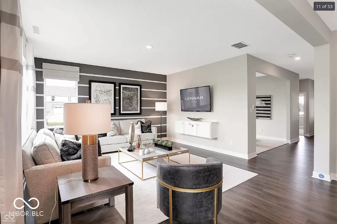 Brooks Farm Venture in Noblesville features LENNAR’s signature suite of Everything’s Included upgrades and extras. On-site amenities include pool, pool house, playground and walking trails. Local area features include parks, outdoor events and an array of great shopping and dining at nearby Hamilton Town Center. The Kingston ft. an open concept design w/a convenient 5th bedroom on the 1st floor, along with a private study & spacious kitchen, dining area & Great Room. Don’t miss the light filled morning room! The 2nd story features a media area between the owner’s suite & the three secondary bedrooms offer an abundance of space with ample closet space. The owner’s suite offers a private bathroom retreat that includes a large shower, dual vanities, private water closet, & a huge WIC. *Photos/Tour of model may show features not selected in home.