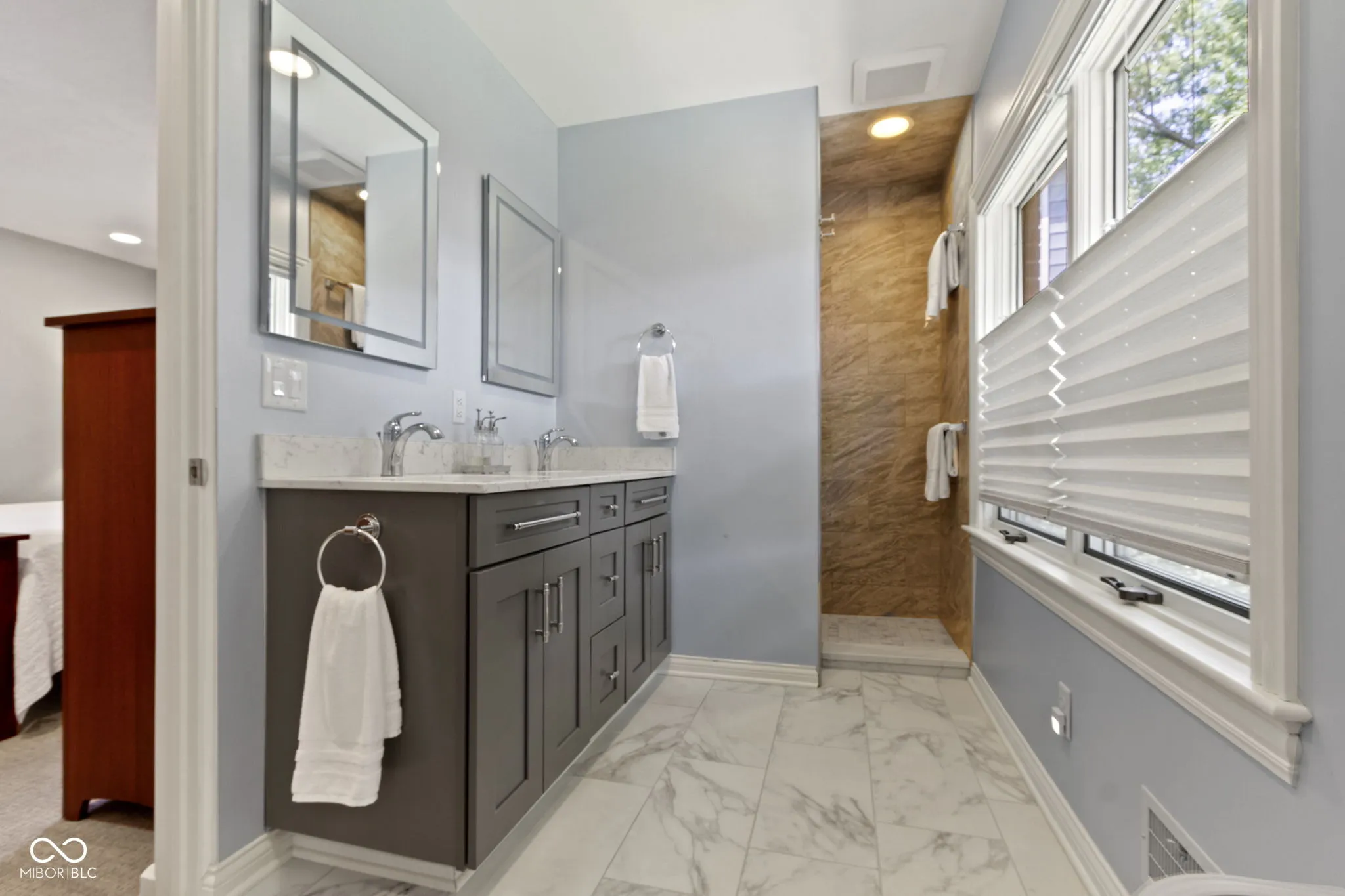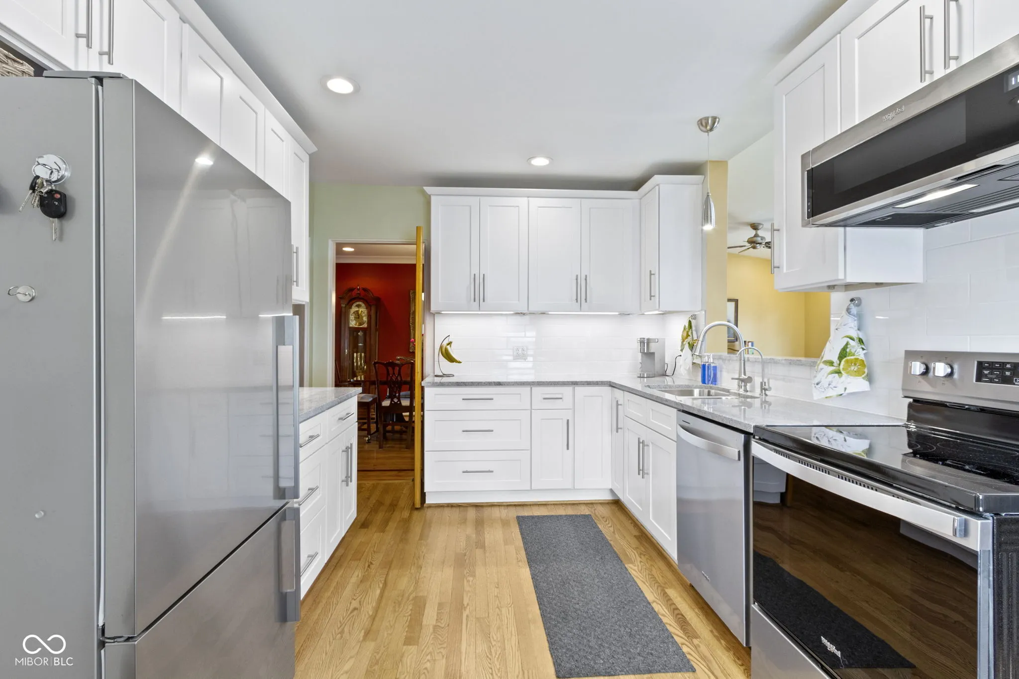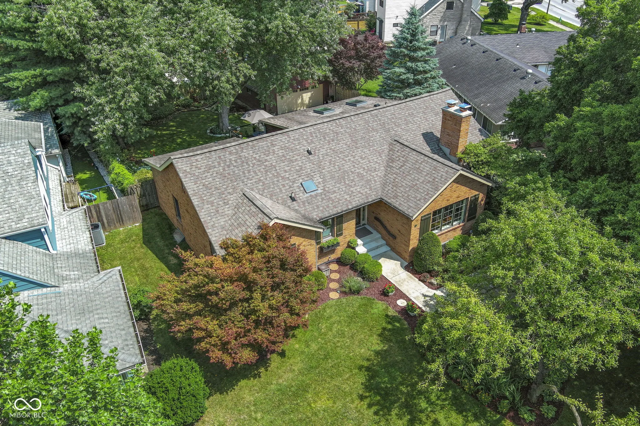 This 3 BDRM, 2.5 BATH Meridian Kessler charmer has been impeccably maintained and is conveniently located with easy access to the Monon Trail, Canal Tow Path, Broad Ripple, Butler University, Holiday Park and the 56th/Illinois shops/dining. Its a joy to entertain with multiple gathering spaces and a circular floor plan that connects the formal living room, dining room, family room, kitchen and sunroom/breakfast area. The living room features a gas fireplace, the dining room easily extends to serve large groups and the family room features vaulted ceilings with skylights. You will love cooking in the newly remodeled kitchen with white cabinets, granite countertops and stainless appliances. The primary bedroom suite boasts a sleek new bathroom with double vanities, walk-in shower, heated tile floors, anti-fog/back lit mirrors and hot water recirculating pump. You will enjoy going down to the bright, clean basement with daylight windows, that offers additional living space, a large office with built-in bookcases, a spacious laundry area with a utility tub, cabinets with a folding counter, and plenty of extra storage space. The backyard is a private oasis with mature trees, a maintenance-free composite deck and a large two-car detached garage. Home is outside of Flood Plain designation – does not require flood insurance.