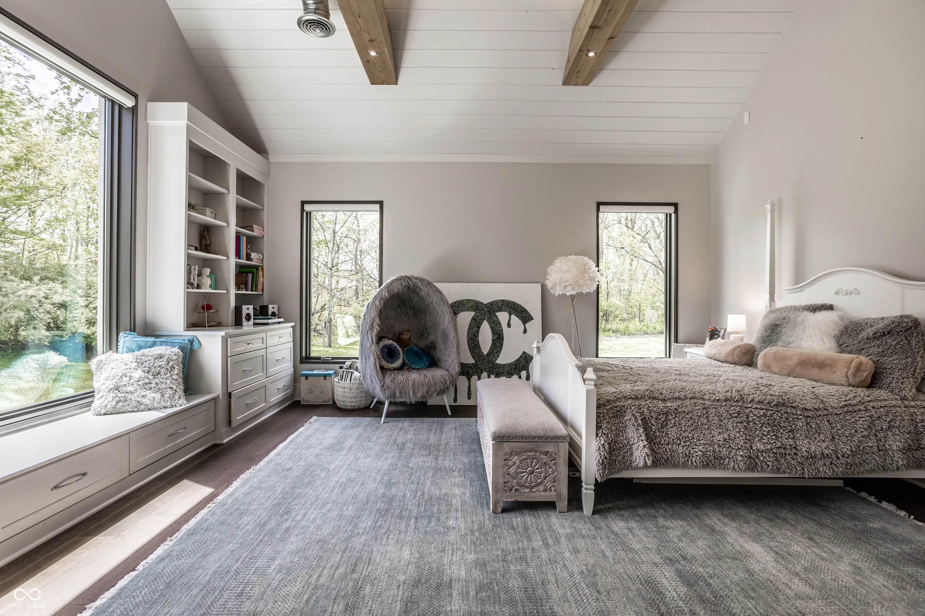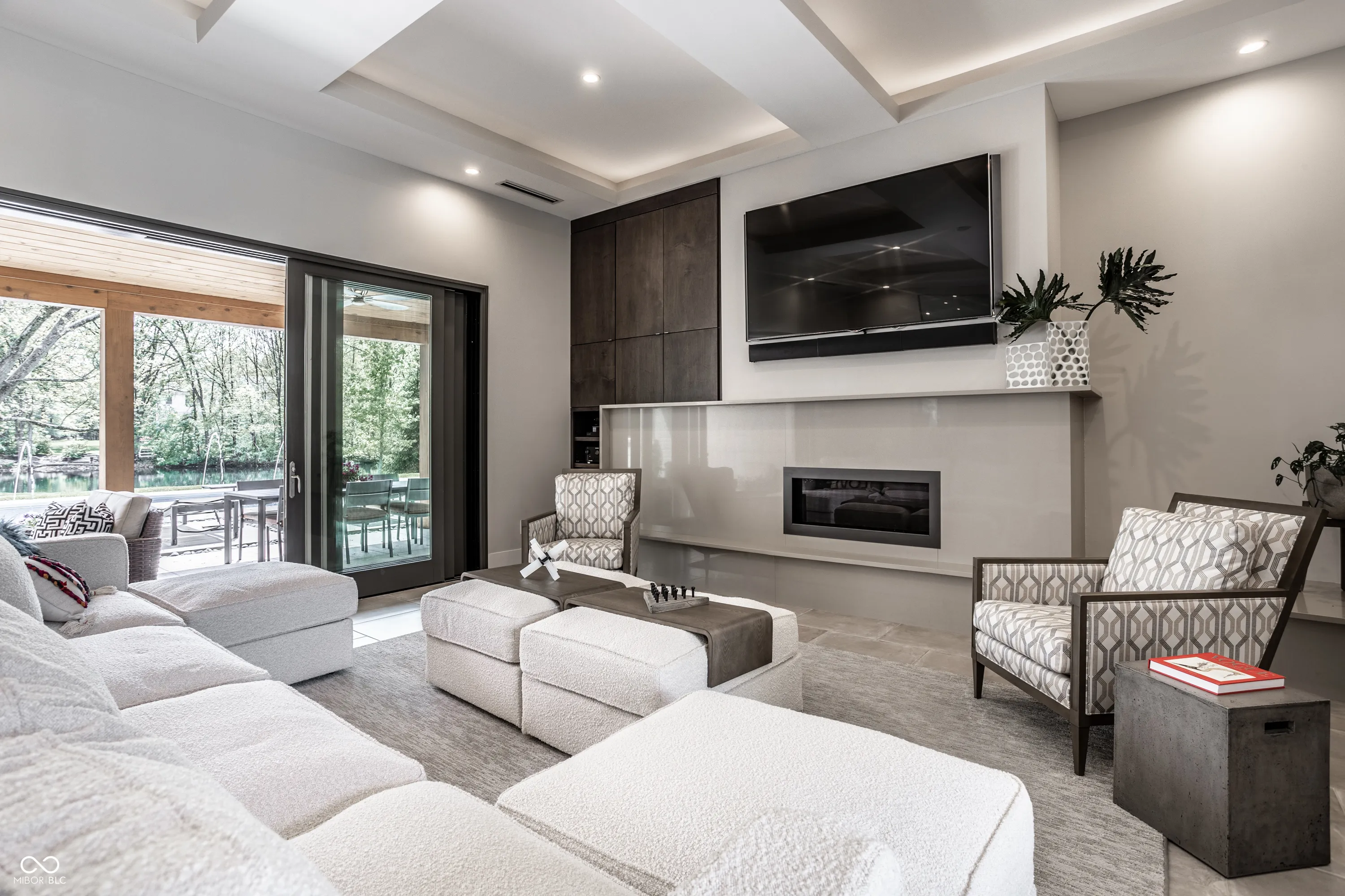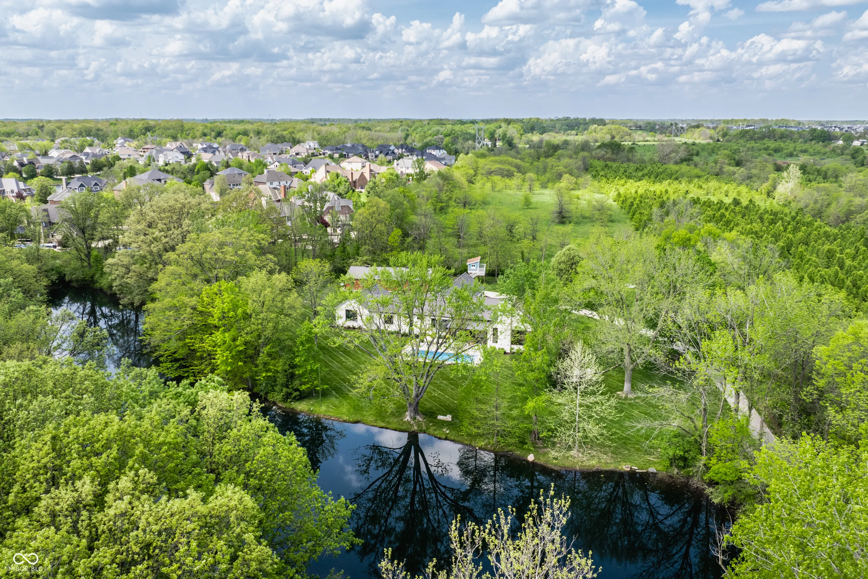 Stunning! Over 3 acres of privacy in the popular Stonegate neighborhood, 5,200 sq ft RANCH, 3 car extra deep garage for car lovers and hobbyists, 64×40 custom barn w beams for gatherings, parties, entertainment or a car aficionado, custom tree house w windows and screens for a breezy kid/teen hangout space, endless greenspace to entertain while enjoying picturesque pond views, the large fire pit area with boulder seating, and an outdoor oasis with 20 x 40 gas heated pool, fountains, and privacy all around. A winding driveway leads you over the creek and through the woods to this massive custom-built one-owner ranch. NO expense spared, this property is truly a work of art. Enter and step down from the gallery to a heated floor in the gathering room that features one of two stone fireplaces (gas), a bar area, and a folding slider that opens the wall up to the vacation-like views and pool. Step up to luxury with the continuation of heated floors throughout the kitchen (specifically leaving the large dining space unheated for the potential use of area rugs. Kitchens by Designs created a thoughtful and functional flow equipped with wolf and Marvel appliances, huge island, huge walk-in pantry and sitting area for family gatherings by 2nd fireplace, (wood-burning). Additional special features include vaulted ceilings with custom beams, a master closet the size of a department store, marble floors in bathroom, w direct pool access from the master suite, and a control 4 system that operates custom blinds, light switches, security and thermostats. The luxury of privacy meets silence and serenity in a fantastic display of craftsmanship on the perfect lot in Zionsville. Great location to commute to downtown on 65, shopping, dining, and nearby downtown Zionsville (owner owns almost half of the pond, and the HOA includes pond maintenance)
