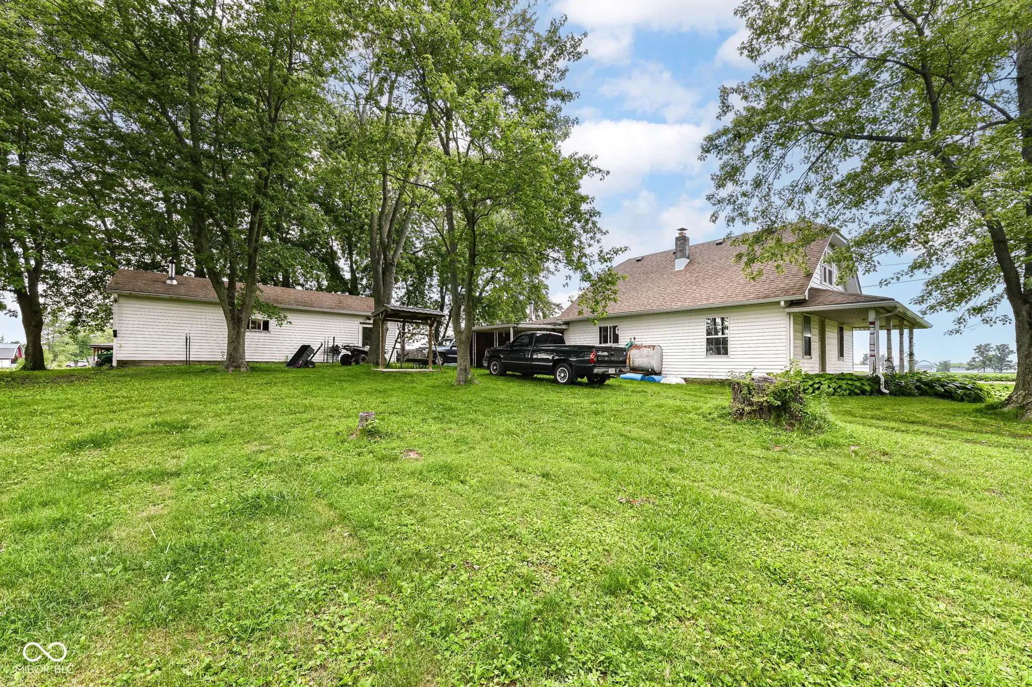 NUMEROUS POSSIBILITIES! GREAT OPPORTUNITY to own a multi family property in the country located on 7 luscious acres in sought after Clark Township. This is a corner lot and features a large 2,500+ square ft, 1-1/2 story home with 3 bedrooms on main level, 1.5 baths, family room, country kitchen with plenty of cabinetry + all newer appliances including washer & dryer and upper level has 4th bedroom or bonus room. There is also a 2 bedroom, 1 bath mobile home, 3 car detached garage, storage barn, gazebo, beautiful mature trees, and the possibility to split the vacant land into 2 additional buildable lots or use as farm land. Ideal location and close to I-65, Greenwood and Shelby County. Won’t last long!