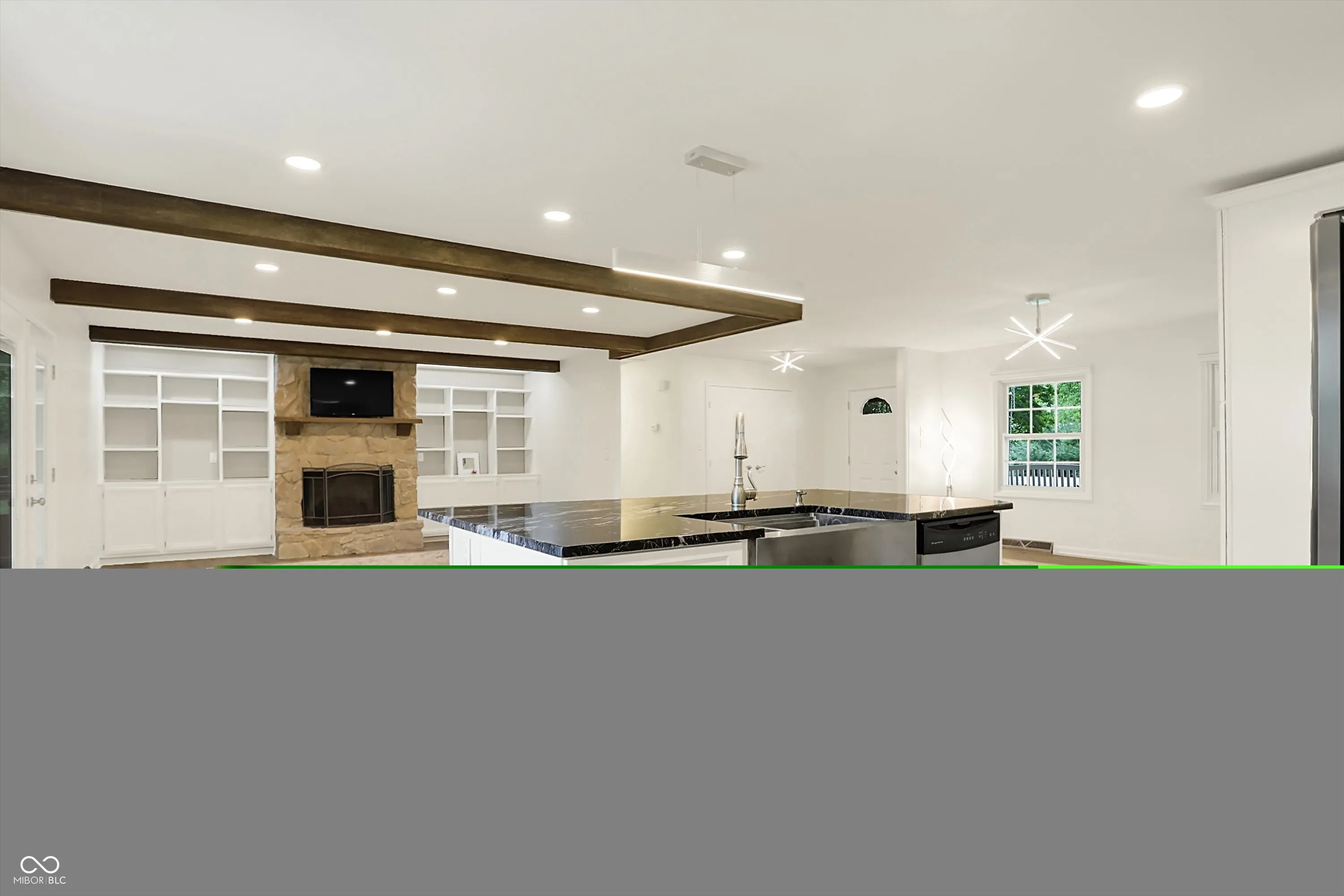 This was a to-the 2×4’s total renovation- so everything is brand new! What was built originally in 1975 as space for a kitchen, living room, dining room and family room is now a 29′ x 24′ great room with a stone fireplace serving all those functions just completed. Stainless and quartz counters kitchen open to all this room for living!!! Fireplace surrounded by book cases provides cozy corner, and opens to large screened porch with view of nearly 1 acre yard. A bonus is huge 480 sq. ft. storage barn out back, charming enough to double as extra garage storage and kids play house. Who needs a basement with all this storage! Life in the country is a little more relaxing- and all this slice of heaven is still in 4 star Zionsville schools!