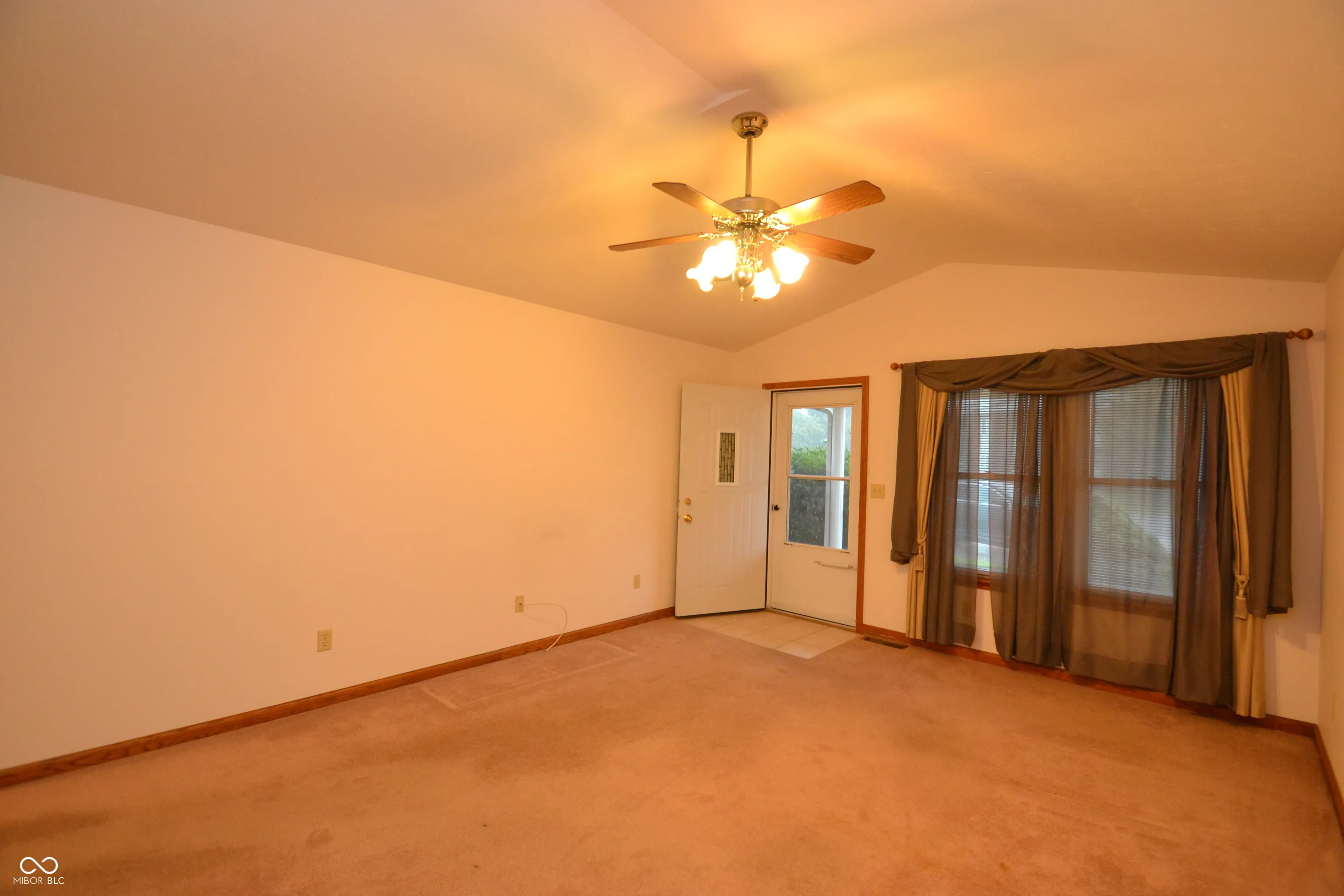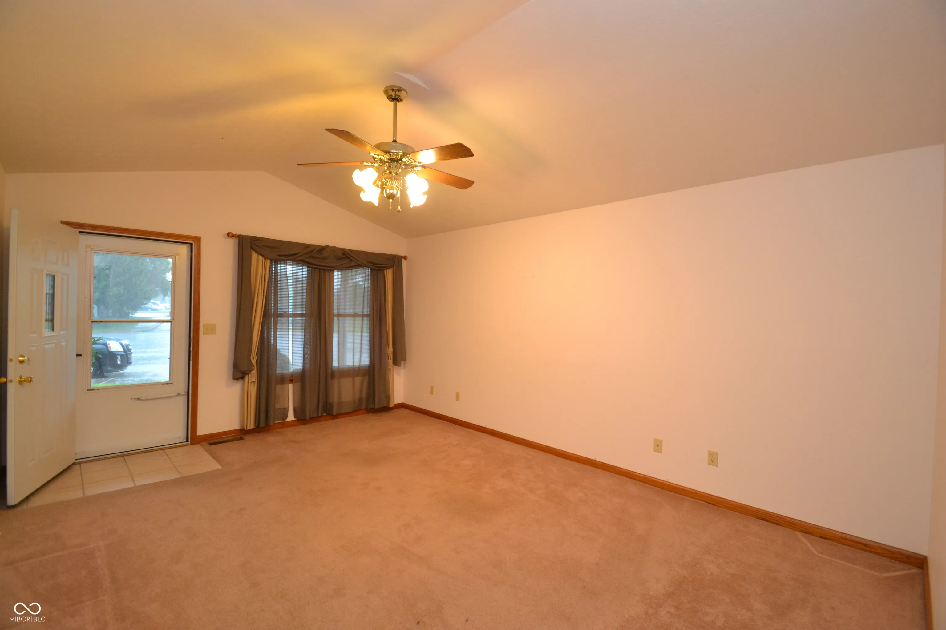 Low maintenance living close to grocery and restaurants. 2 bedroom, 2 bathrooms, cathedral ceilings, attached garage with shared common wall. No HOA.