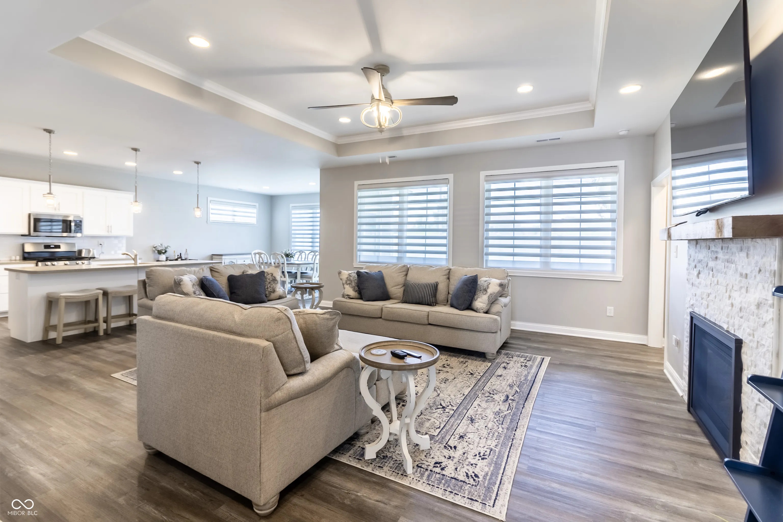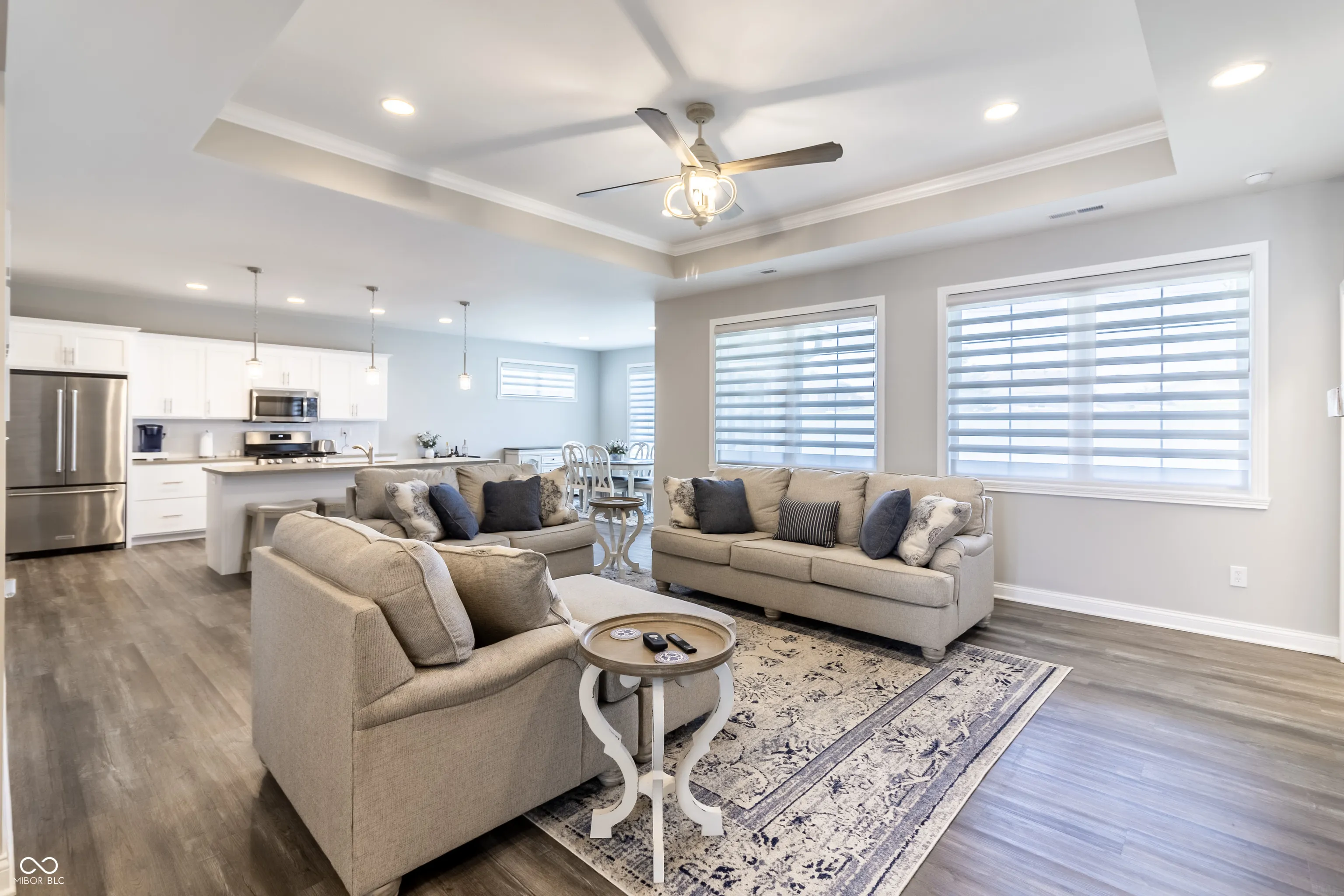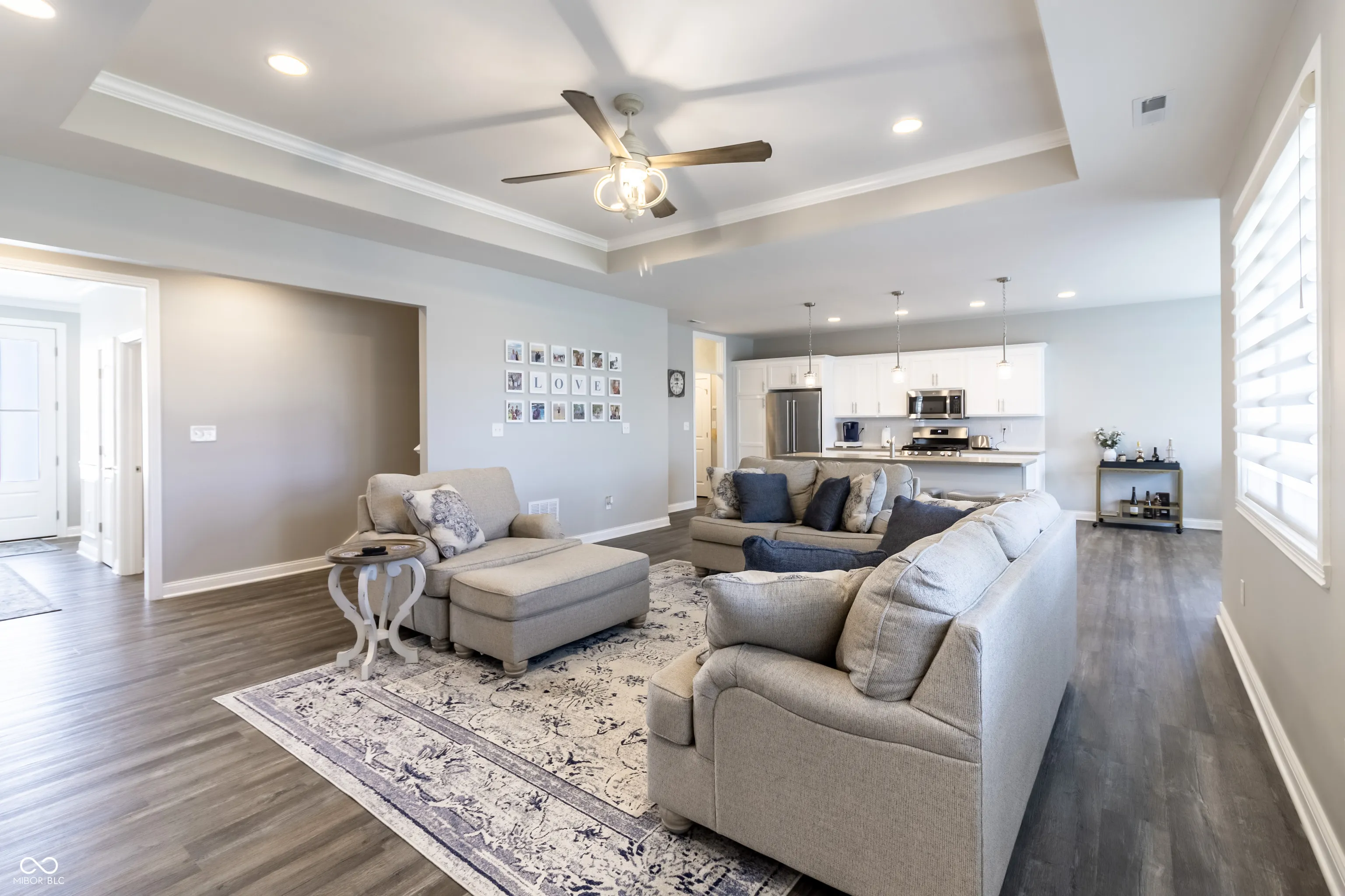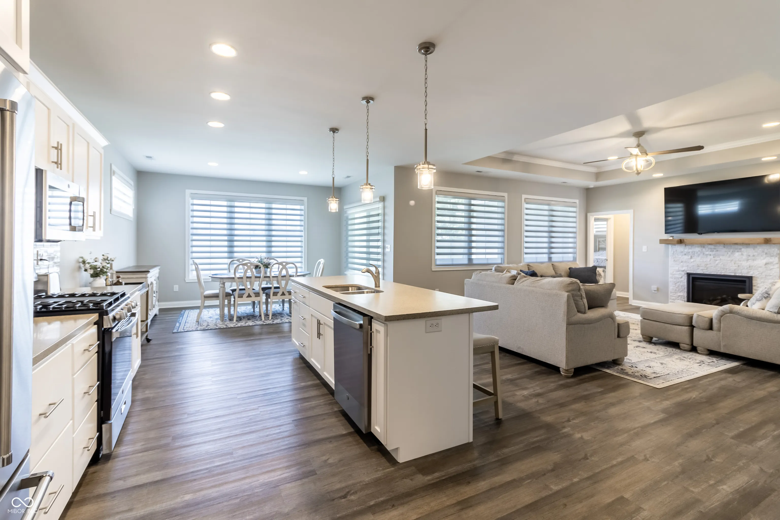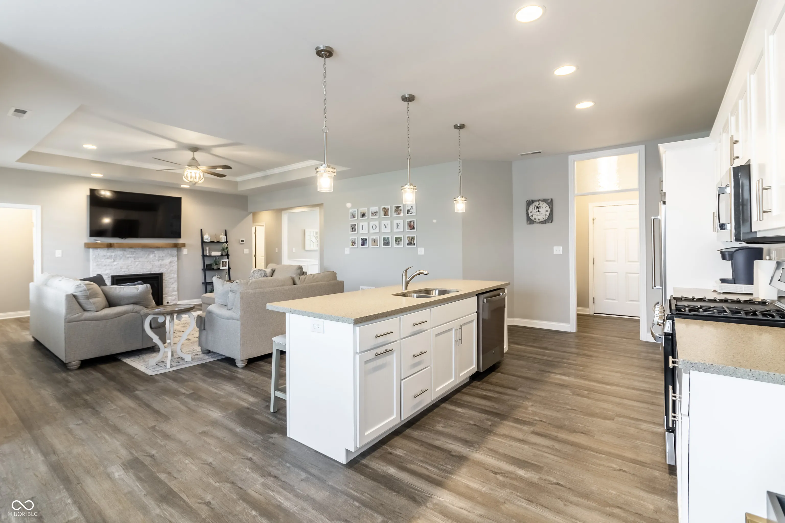 IMMACULATE new custom-built ranch is completely turn-key and located The Legends Golf Club. This stunning 3-bedroom residence, featuring an additional large loft space, offers a harmonious blend of modern comfort and style. The impressive kitchen seamlessly flows into the family room, creating an inviting space perfect for both entertaining and everyday living. The gourmet kitchen has soft closed cabinets and drawers, updated quartz, custom cabinetry and large island nestled between large eat in dining area and family room all flooded with natural light. The primary bedroom boasts a spacious walk-in closet, leading to an elegant en-suite bathroom complete with a luxurious marble style tile shower and a custom stand-alone soaker tub. 2 other bedrooms separate from the primary have a large updated bathroom. Awesome entry foyer with custom bench and tons of storage. Upstairs features a hidden huge loft perfect for a home office, theater, or exercise room plus a storage closet. Enjoy privacy with no neighbors behind when you step outside to enjoy the beautifully fenced-in yard and back patio, ideal for outdoor gatherings and quiet relaxation. Worry-free as ALL lawn care and maintenance done for you! Conveniently located near a variety of dining, shopping, and family entertainment options, golf, and minutes to highway access, this home is perfect for those seeking a vibrant new custom home with all yard work done for you.