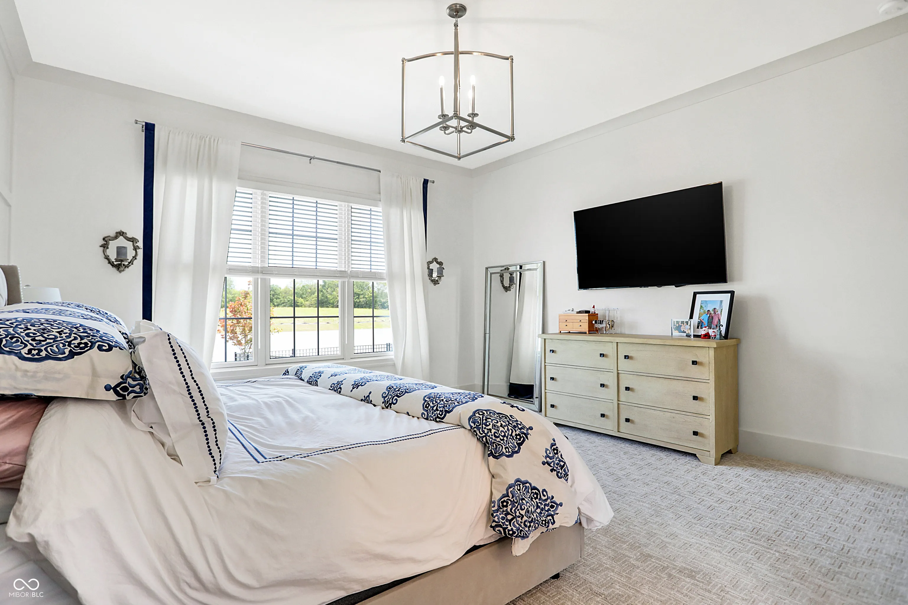 Welcome to Chatham Shore Lane! In this section of the highly desired Chatham Hills & Village, the West Facing homes on Chatham Shore Lane are situated perfectly providing scenic view and afternoon shade over looking the new 12 acre pond. This 5 bedroom 4 full bath fully custom home by Wedgewood offers all of the bells and whistles. All a mixture of the best cabinetry, appliances, flooring, tile work, trim work and home design. Once upon entering you are immediately greeted by the wall of floor to ceiling windows overlooking the pond. Primary bedroom and/or 2nd bedroom or office on the main level. Very unique open window area in the tasteful but casual butlers pantry/coffee bar combining the kitchen and exterior rear patio. Another 2 bedrooms up with a loft and additional office area. Basement has a custom bar with plenty of room for entertaining. Updates include installation of new ‘dog run’ wrought iron style fence in the rear yard, fully finished exercise room, California Closets, after market custom trimwork and shelving on all levels of the home which have been professionally painted. Garage floors freshly epoxied, water softener installed, entire interior house repaint, custom pull out drawers, $7,000 in additional lighting and AV options and custom glass for the front door to add privacy! Future amenities to come to this section of the neighborhood including a Village green space, an amenity center that caters to your leisure and recreational needs, an outdoor pool for those warm summer days, and mixed-use areas that promote a vibrant and dynamic atmosphere. Chatham Hills Social Membership Included.