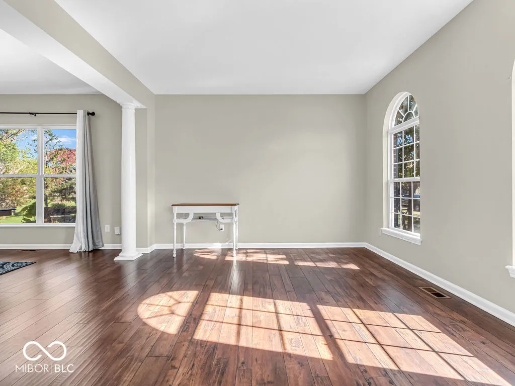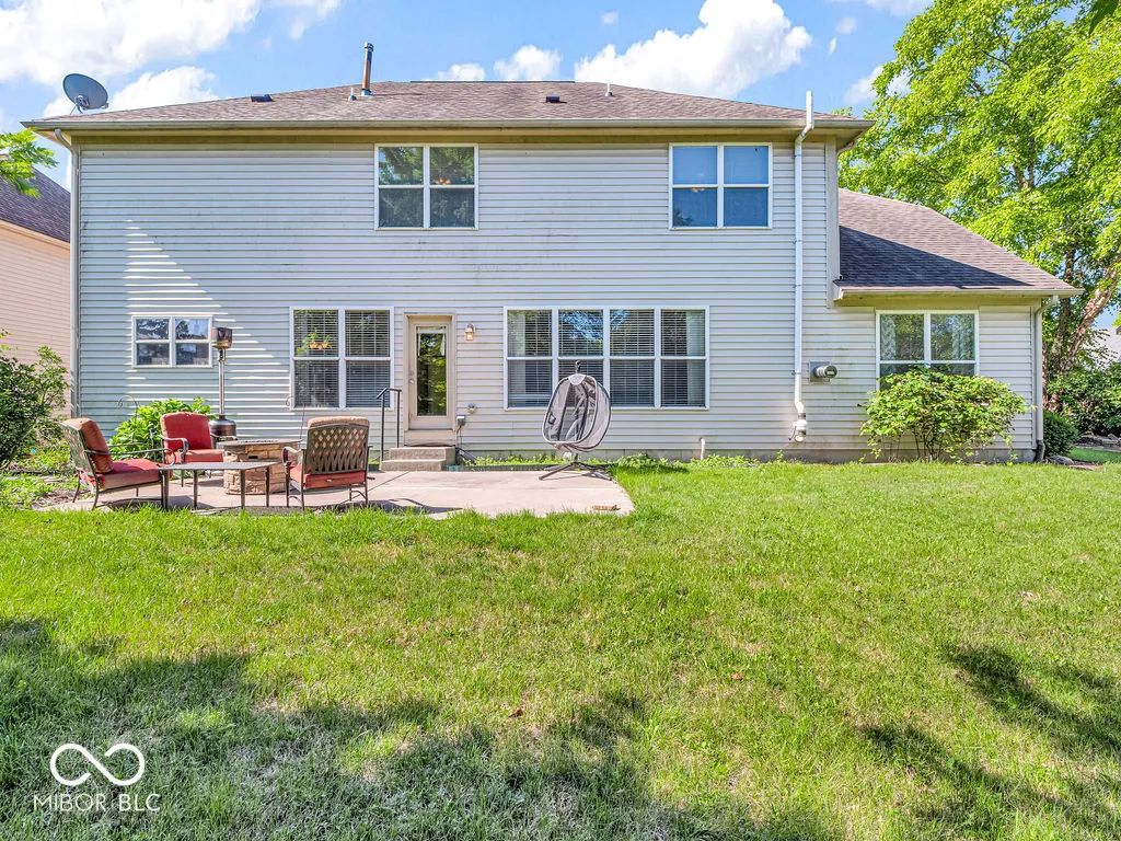 Welcome to this stunning home in the sought-after Auburn Springs neighborhood of Fishers, situated on a quiet cul-de-sac. Enjoy a prime location with top-rated schools nearby, easy access to Hwy 37, and community amenities like a large park, pool, tennis courts, and playground. This rare Zaring model by Drees impresses with its grand two-story entryway, hardwood flooring, and high ceilings throughout the main floor. The open, inviting layout is perfect for entertaining, featuring a bright kitchen with white cabinetry, stainless steel appliances, and granite countertops, seamlessly flowing into the Great Room. French doors open to a private office, ideal for working from home. Upstairs, new carpeting leads you to the luxurious master suite, complete with a spacious bathroom and walk-in closet. Three additional bedrooms offer ample space, with two featuring walk-in closets. The partially finished basement, with exposed ceiling, painted walls, and an egress window, provides a versatile space ready for your personal touch. Outside, a large backyard and concrete patio off the kitchen create the perfect setting for summer gatherings. This move-in-ready home is waiting for you to make it your own! Note this home includes: whole house water filter w/ water softener, prewired for 50 amp generator, irrigation system, radon mitigation system.