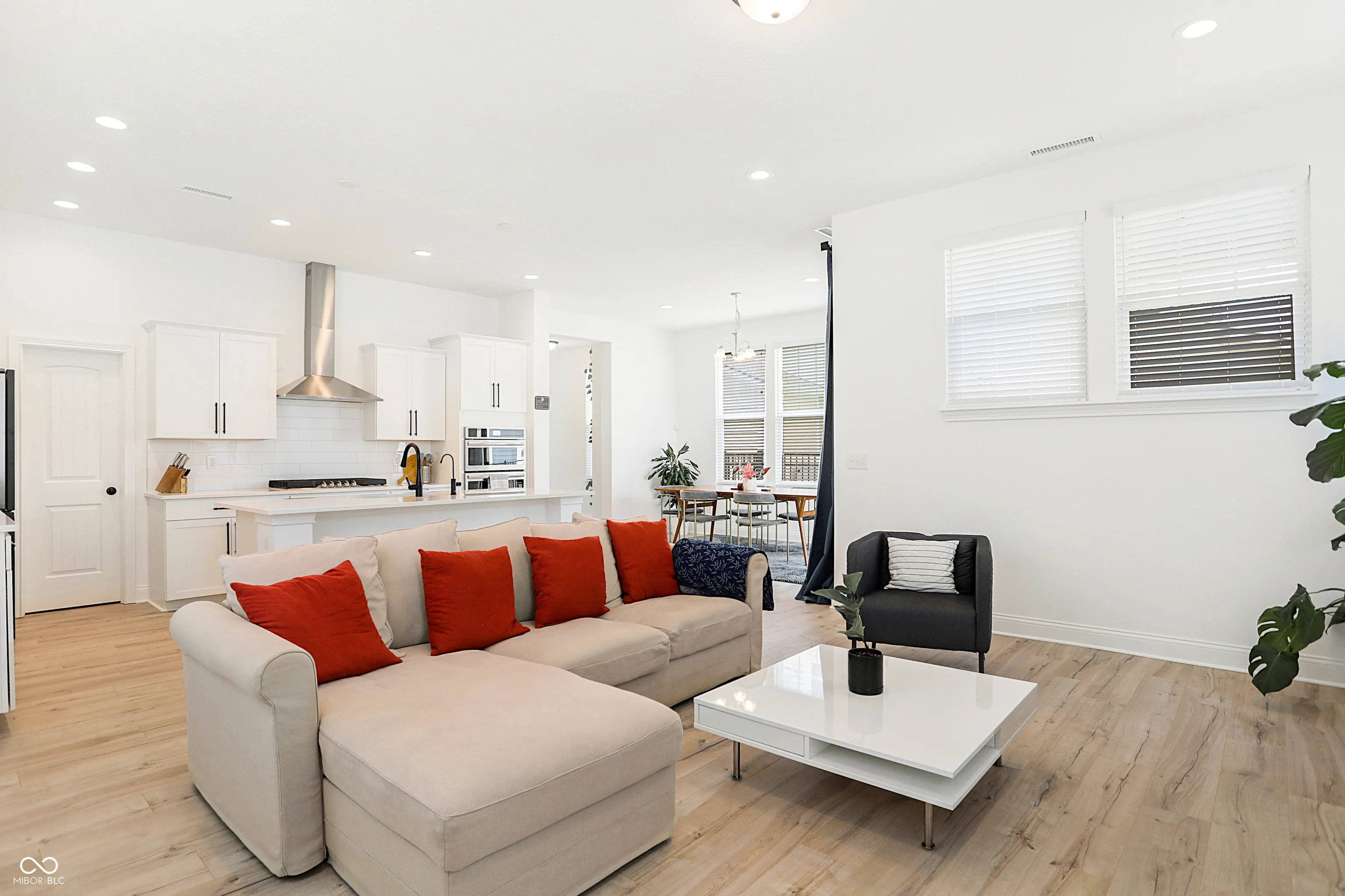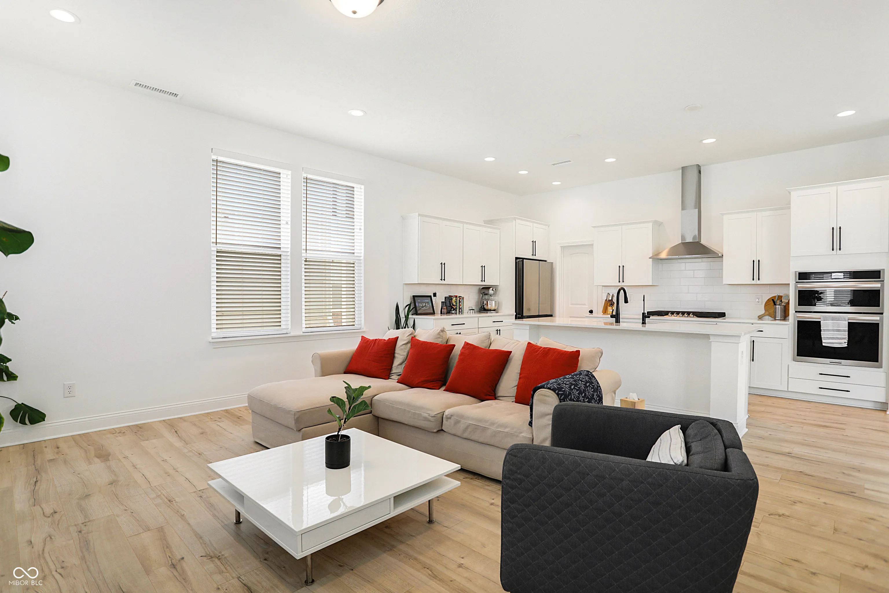 Fabulous and practically brand new 4BR/3BA home for rent in Carmel’s popular Legacy neighborhood! Step inside this home and you’ll immediately notice the raised ceilings and modern fixtures. Spacious great room has 3 walls of windows. Gourmet kitchen features modern face staggered white cabinets with industrial style black hardware. Sleek quartz countertops, subway tile backsplash, and stainless steel appliances are included as well. Lots of storage in the cabinets and in the walk-in pantry. Enjoy a meal at the center island or in the open dining area which leads to the covered porch. Main floor also features the fourth bedroom which can also be used as a home office and has access to the third full bathroom. Upper level also offers 9′ ceilings as well as 3 more bedrooms and 2 full bathrooms. Primary bedroom suite is spacious with a private bathroom featuring dual sinks and a lovely walk-in tiled shower. Open loft is perfect for a game room or second work from home space. Convenient upstairs laundry room has additional cabinets. The yard offers just enough green space for a garden or pets. Fantastic neighborhood offers walking trails, playground and close to shopping, dining and more. A wonderful home to rent in Carmel Clay schools!