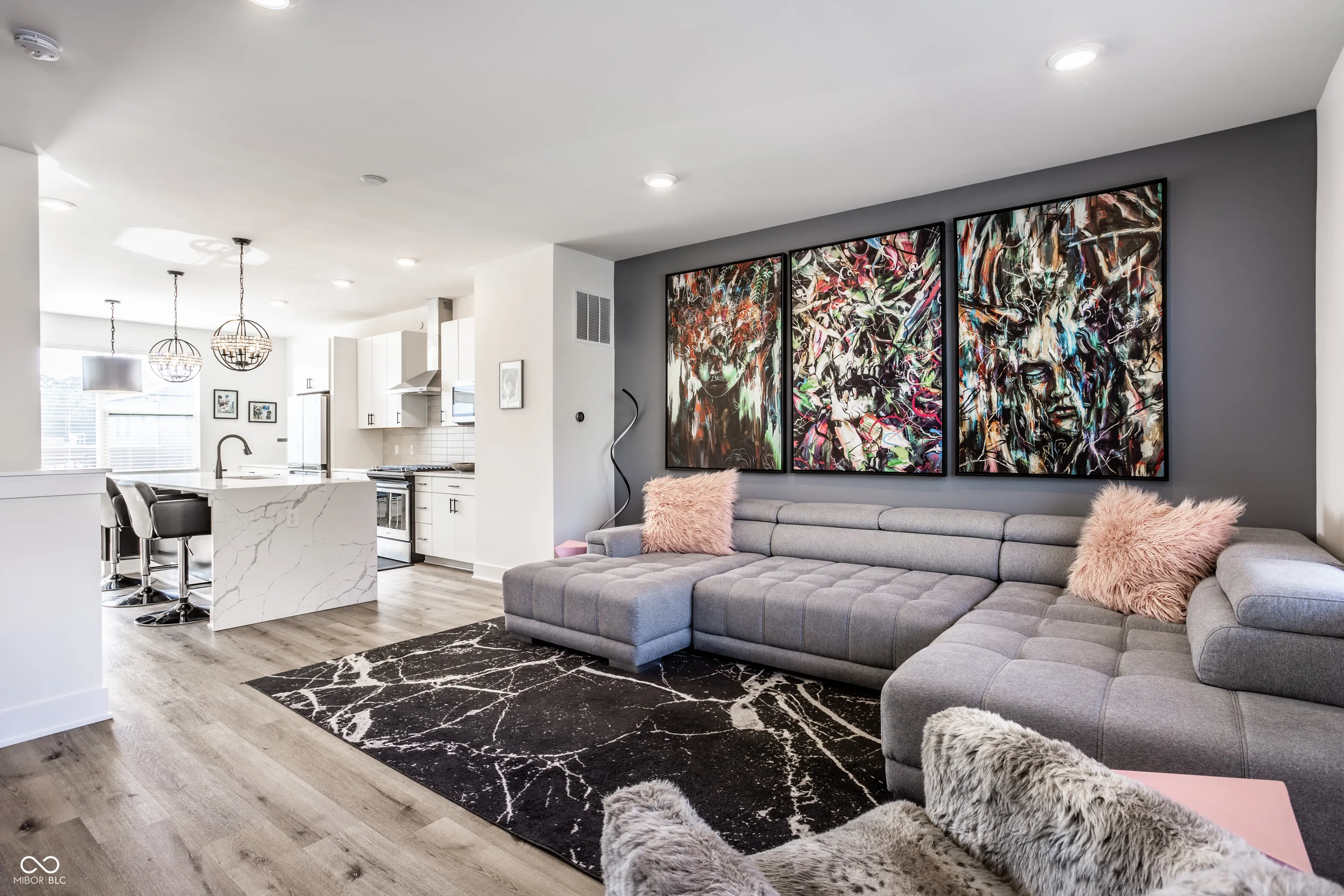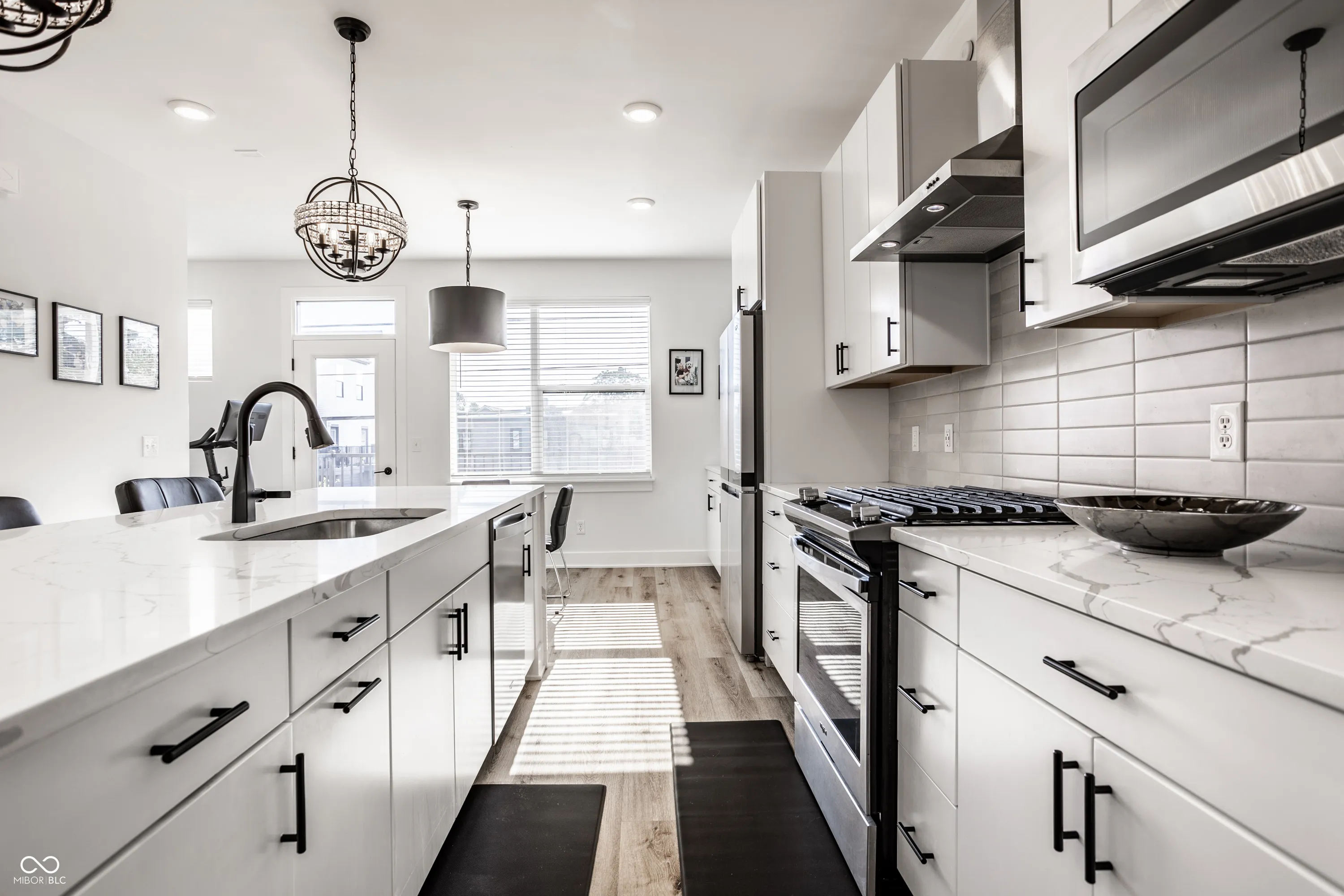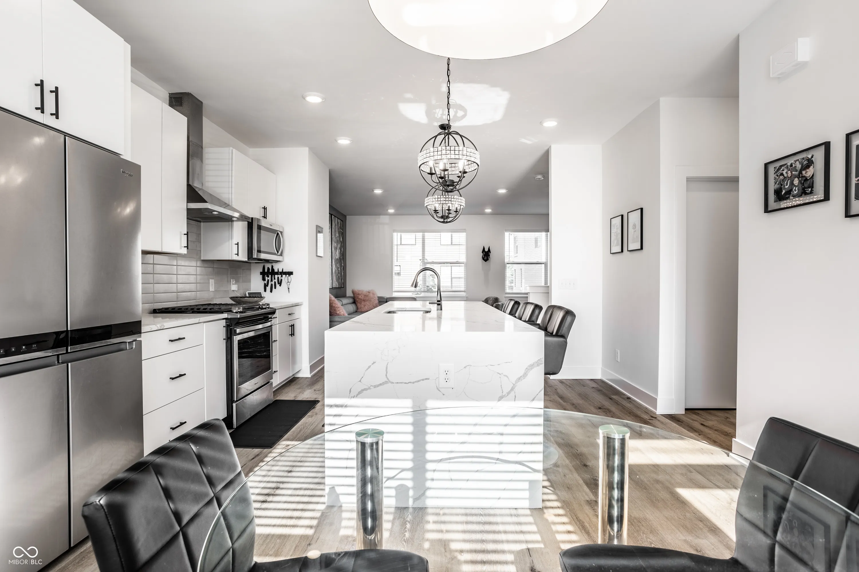 Welcome home to this stunning 3-bedroom, 2.5-bathroom townhome in one of Indianapolis’ newest and most desired downtown neighborhoods, Tinner Park. Featuring a stunning open-concept layout with designer finishes and enhancements. Your gourmet kitchen has a huge island wrapped in waterfall quartz, gas range with built-in hood. Just off the kitchen enjoy the large built-in coffee bar area leading out to your 2nd floor balcony. Find even more beautiful upgrades throughout, including custom lighting, quartz countertops in both the kitchen and bathrooms, modern trim and more. Your private rooftop patio is stunning with skyline views, ample space for entertaining or just gazing at the stars and a prime location offering quick access to downtown and Carmel. The 2 car attached garage is an added bonus!