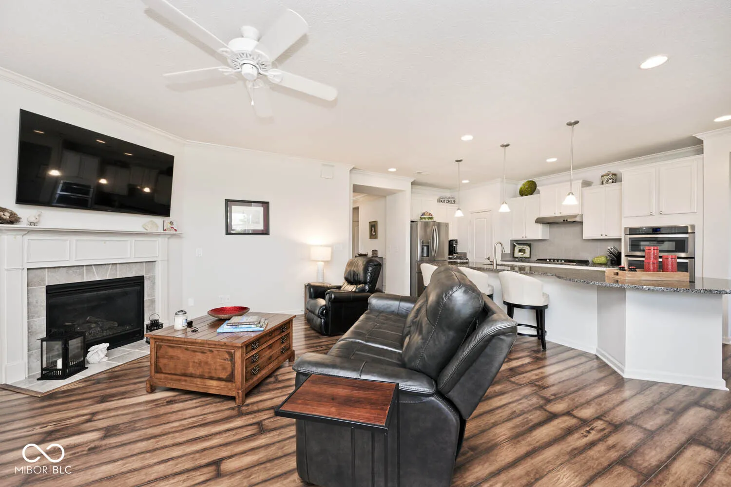 Welcome home to Fishers Del Webb 55 and Active Britton Falls Community! This immaculate property boasts a spacious 3 Bedroom, 3 Full Bath, 3 Car Tandem Garage Home situated on an oversized corner lot with pond and fountain view. The open and airy floor plan is perfect for entertaining guests. The highlight of this home is the chef-inspired kitchen, complete with an oversized island with seating, stainless steel appliances including a 5-burner gas cooktop, french drawer refrigerator, microwave, dishwasher plus 42″ white cabinets, and granite countertops. The kitchen seamlessly flows into the great room and dining room areas, making it the heart of the home. For moments of privacy and relaxation, this home offers various retreats. Enjoy your morning coffee in the sunroom, curl up with a good book in the office/den featuring glass French doors and a custom built-in wall unit/bookshelf, or unwind on the 20×12 covered back porch with custom galaxy floor coating. The main level features a private primary suite with double sinks, a large shower, and a walk-in closet, main level laundry which includes washer and dryer. Upstairs, you’ll find an additional 3rd bedroom suite with a full bath and a family room, perfect for family or extended stay guests. This home is full of upgrades that you would expect in a high-end property, including a large entryway, walk-in closets, low maintenance laminate hardwood floors, crown molding, raised ceilings, gas fireplace, underground invisible pet fence plus all of the amenities Britton Falls has to offer with a wonderful club house which includes: indoor/outdoor pools, fully equipped exercise room, tennis and bocce ball courts as well as endless clubs and social activities throughout the year.