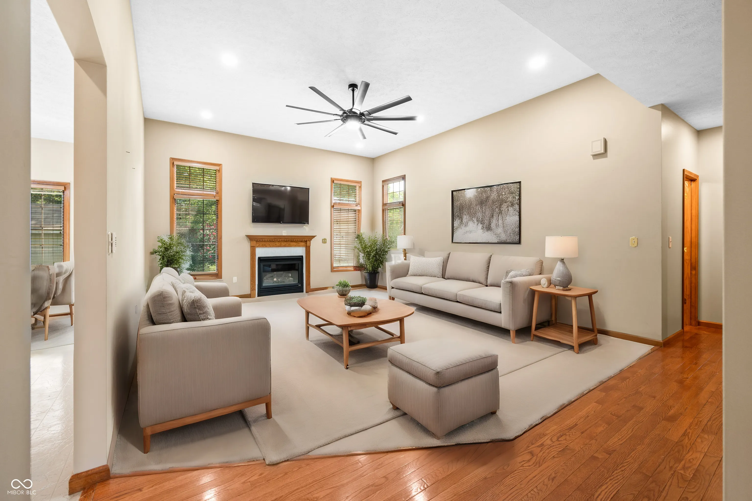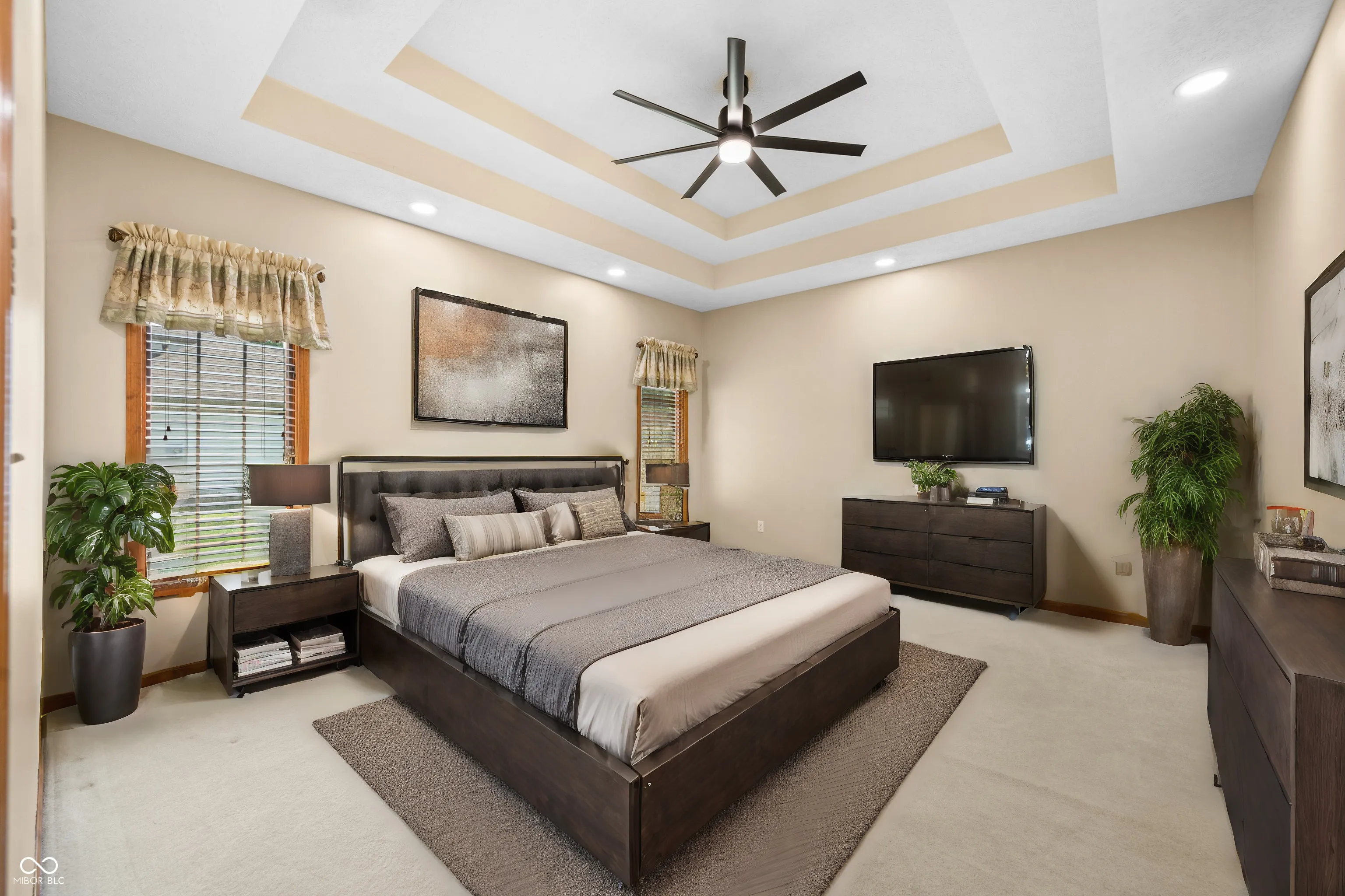 Welcome to this beautifully designed home featuring a thoughtfully planned layout and elegant finishes. The master suite on the main floor includes a tray ceiling, dual vanities, a walk-in closet, a garden tub, and a separate shower room. An additional main floor bedroom, perfect as an office, includes a walk-in closet and large window. The expansive living room features a built-in gas fireplace and high ceilings, seamlessly connecting to the kitchen, dining room, and other living areas. The dining room and entryway showcase oak hardwood floors. The spacious kitchen includes a wrap-around bar and opens to a cozy eating area with access to the back patio and fenced-in yard with a storage shed. The adjacent laundry room leads to a 3-car garage. Upstairs, you’ll find two more bedrooms and a full bathroom, with one bedroom offering attic access. Additional storage is available with a linen closet at the top of the stairs and a coat closet by the front door. The partially finished basement includes an extra bedroom, full bathroom, and a versatile entertainment room. The unfinished area provides ample space for storage, a utility room, and a small countertop with a double bowl sink and cabinets. This home offers a perfect blend of comfort and functionality, ideal for modern living.