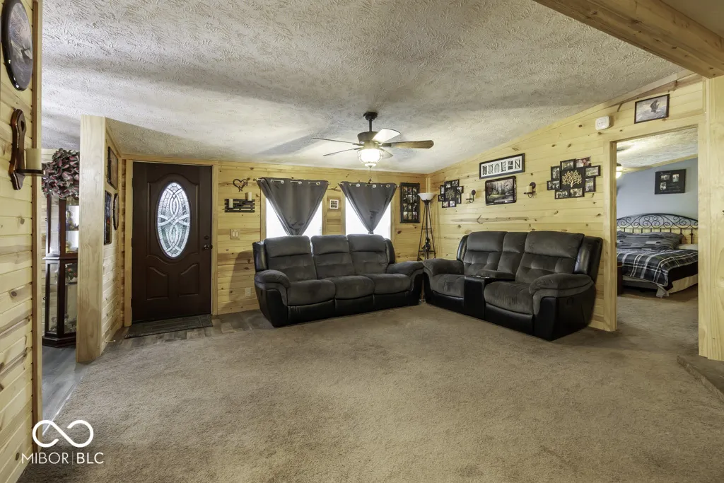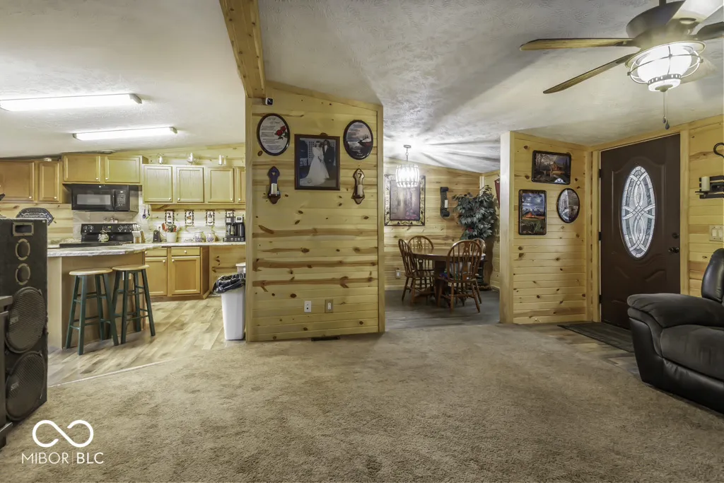 Don’t miss a fantastic opportunity on just over 2 acres with 3 Bedrooms, 2 Baths, a Detached Garage, Two Pole Barns, an Above Ground Pool, Multiple Decks and a completely hardwired Fenced In Backyard!!! OH MY! As you enter into the home you will notice the custom tongue and groove wood siding throughout, a beautiful wood burning fireplace which seamlessly connects the living, dining, and kitchen areas. The kitchen has plentiful cabinet storage, endless counter space as well as a center island perfect for preparing meals. This is a split floor plan home. The primary bedroom is just off the living room with an extra-large bathroom featuring his & hers sinks, an oversized garden tub, a separate shower, and also includes a huge walk-in closet. Two more bedrooms and the main bathroom is located on the other side. This acreage provides ample space for outdoor activities, gardening, or potential expansion. This property accommodates all your wide-open space needs.