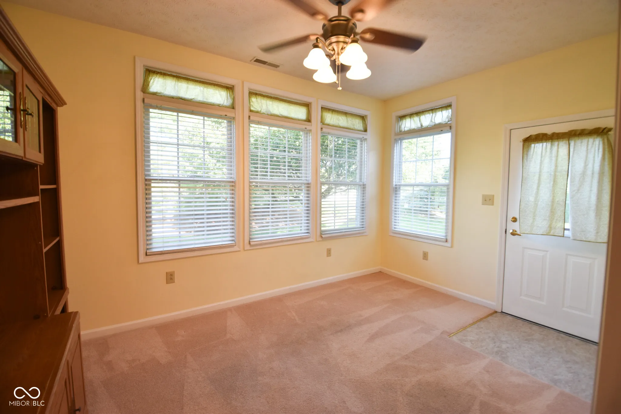 Right behind the Hospital and close to Doctors offices. Over 55 Community Condo is Available in Greenfield! The living room has a gas fireplace and built in bookshelf along with a formal dining area. Eat in kitchen has a pantry closet, all of the needed appliances and a laundry closet which includes the washer and dryer. Primary bedroom is so spacious, has a walk in closet and a full bath with walk in/ roll in shower, & grab bars at commode. The second bedroom is close to the full hall bath for convenience. Let the sun shine in the Sunroom! This room can be left open to the living room or closed off as its own space. The back door leads you out to a patio area where you can enjoy some fresh air. Close to Hancock Regional Hospital and Doctors offices. This is a small subdivision with a cul de sac so there is no through traffic. Nine foot ceilings, ceiling fans and ceiling lights. The lawn care, snow removal, trash removal and exterior maintenance is covered in your monthly HOA fees. Immediate occupancy on this one. New front storm door has been installed.