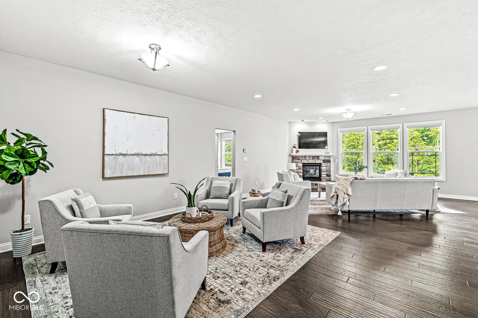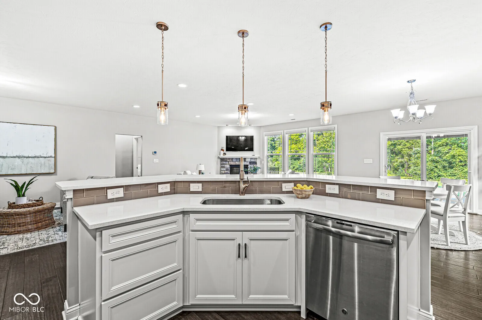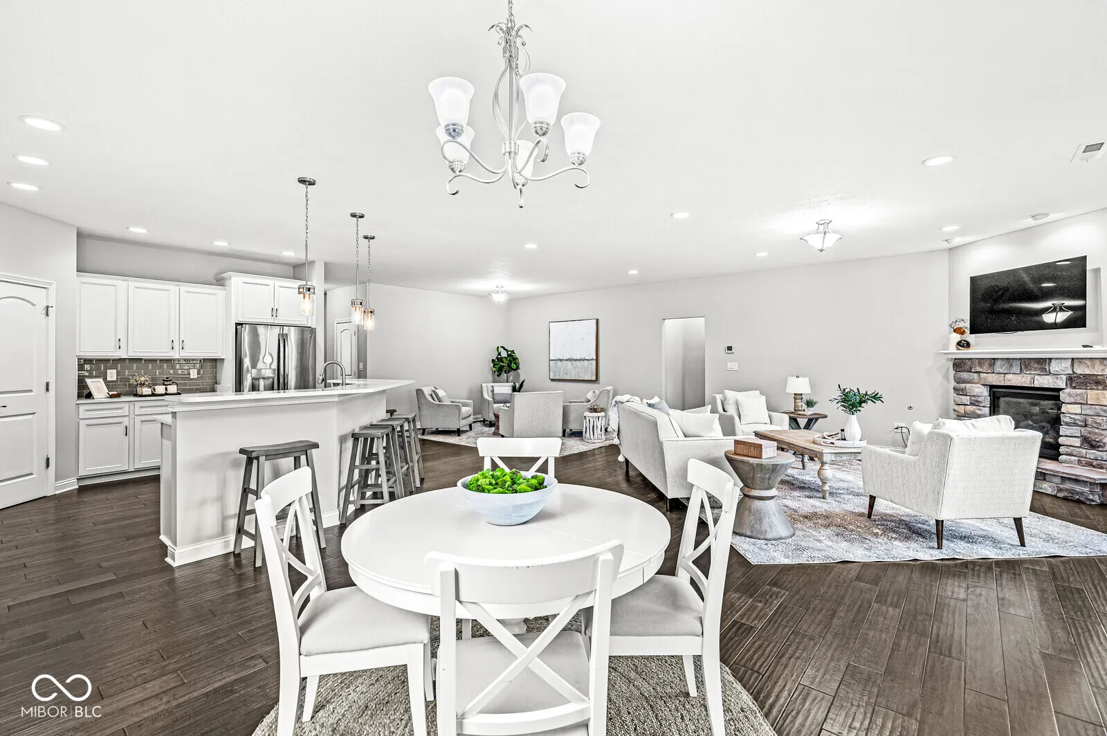 NEWER beautifully maintained 3-bedroom RANCH on a quiet CUL DE SAC. Step in through the covered porch to a spacious Living Room where you can warm yourself by the cozy stone FIREPLACE. You’ll love the large EAT-IN KITCHEN with its full length breakfast bar & open view of the Living Room. Become the chef of your dreams with a GAS DOUBLE OVEN & gas cooktop, all stainless steel appliances (included), QUARTZ COUNTERTOPS and a beautiful tile backsplash. Just outside the Kitchen awaits a cozy Dining area with a view out to the covered patio & WOODED TRAIL just beyond the backyard. On one end of the home, a large MAIN LEVEL PRIVATE SUITE awaits, with WALK-IN CLOSET, dual sinks, private toilet & glass-enclosed TILE SHOWER. On the other end of the home, you’ll find 2 additional bedrooms and full bath. A separate LAUNDRY ROOM (washer & dryer included), half bath for guests and 3-CAR GARAGE complete this amazing home! Be sure not to miss the more subtle UPGRADES: 9-foot ceilings, tray ceiling, engineered HARDWOOD floors, ceramic tile, security system & FINISHED GARAGE with opener. Just 4 minutes from EAGLE CREEK PARK and nearby restaurants, and easy access to highways. Or stay close to home and enjoy a relaxed stroll down the nearby paved trail to the neighborhood lake. To WALK THROUGH this home in 3D, see the virtual tour included with this listing.