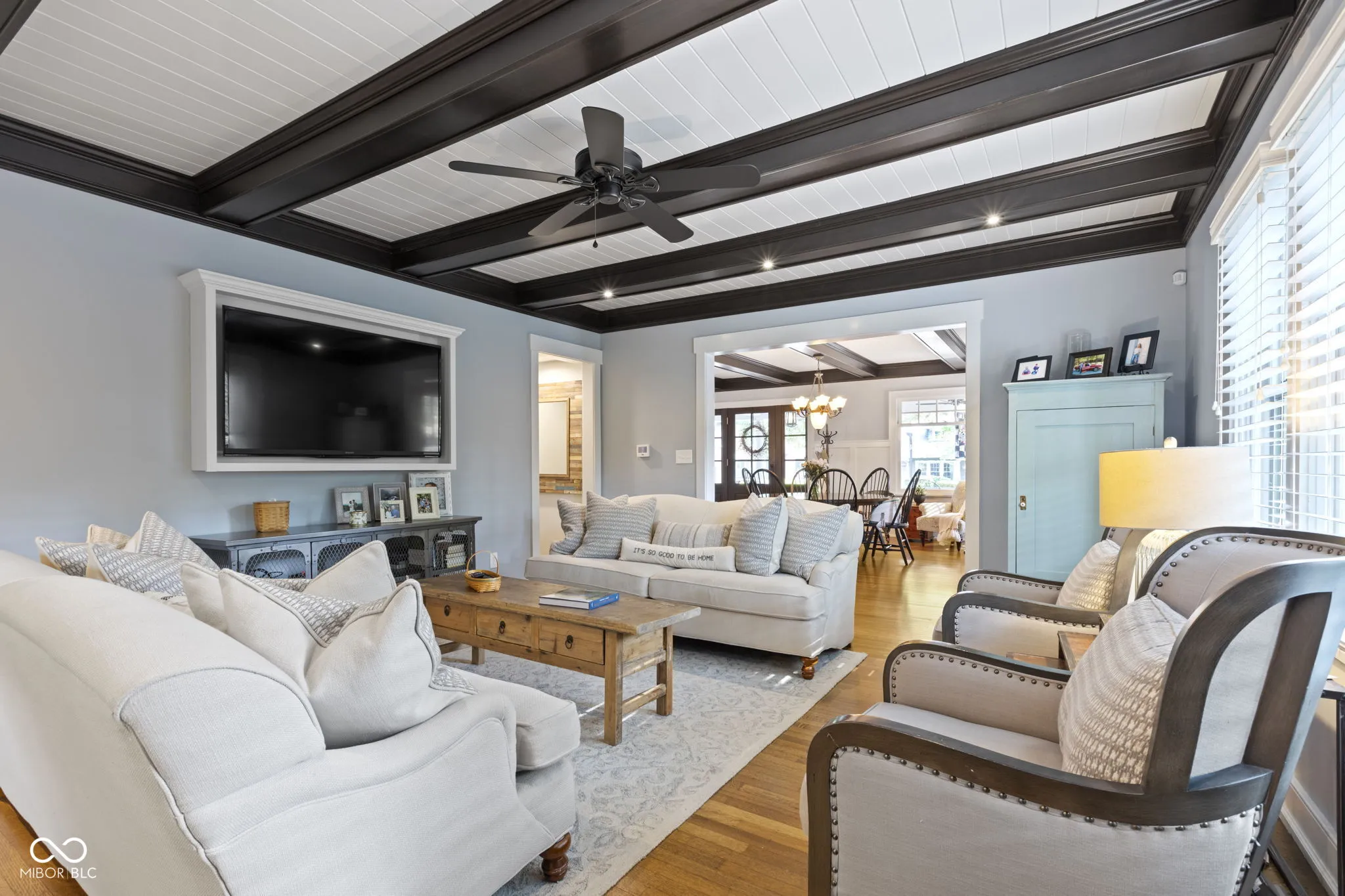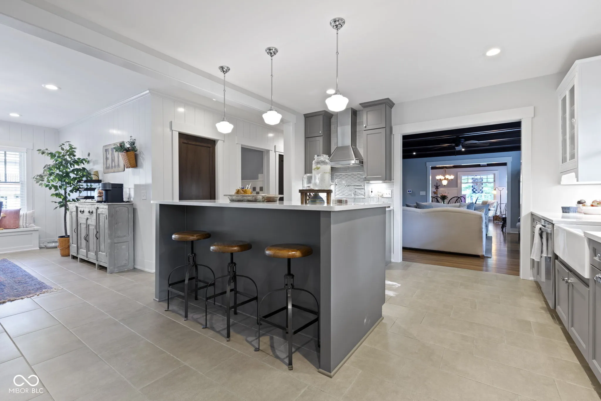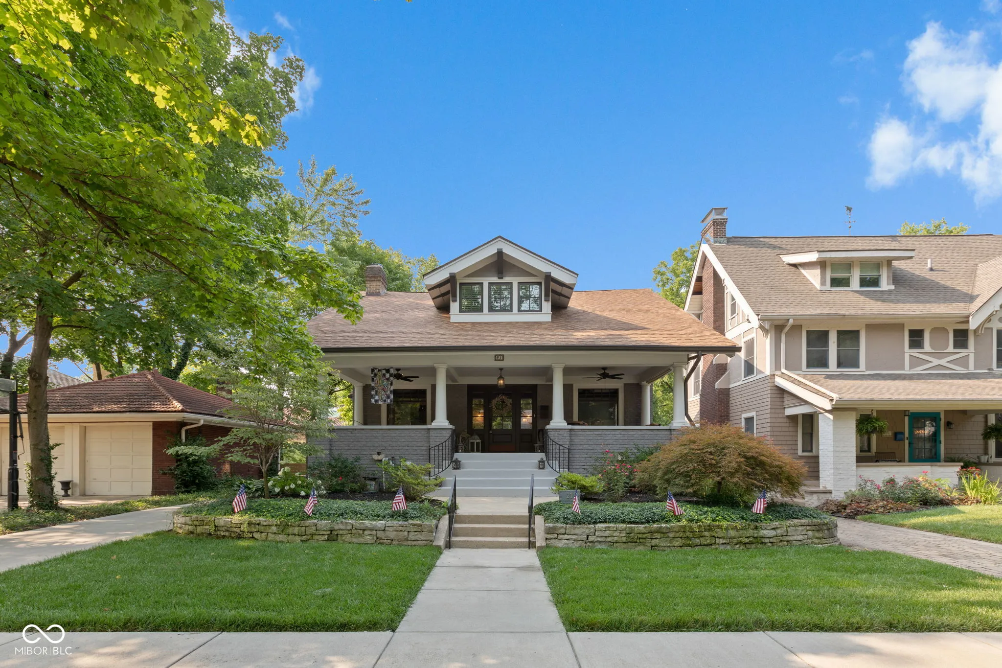 Falling in love with this home starts at first look! Tucked away on a quiet, tree-lined street in Meridian-Kessler, picture yourself spending evenings on the north-facing front porch. This five bedroom, five full bathroom home is certainly true to its MK roots and with all the modern updates you’ll want. Exposed beams, antique ‘wavy glass’ windows and refinished, original hardwoods meet you at the entrance. Two separate living spaces w/ 9′ ceilings lead you to a large, eat-in kitchen and then out the back door to an outdoor space perfect for hosting or for family dinner. The chef’s kitchen has it all! S/S appliances, gas range, large island, stone countertops and a wall of windows! Upstairs, there are two bedrooms and two bathrooms including the primary en suite! The main floor bedroom is flex space perfect for a playroom or office. The basement has another two egressed bedrooms with two bathrooms, laundry and additional storage. The rear-facing two car garage enters through the basement with a drop zone by the stairs to the main level. Updates include: HVAC, tankless water heater, landscaping, retaining wall, sewer line, vinyl windows, electrical and water lines! This is as turn-key as you’ll find in Midtown.