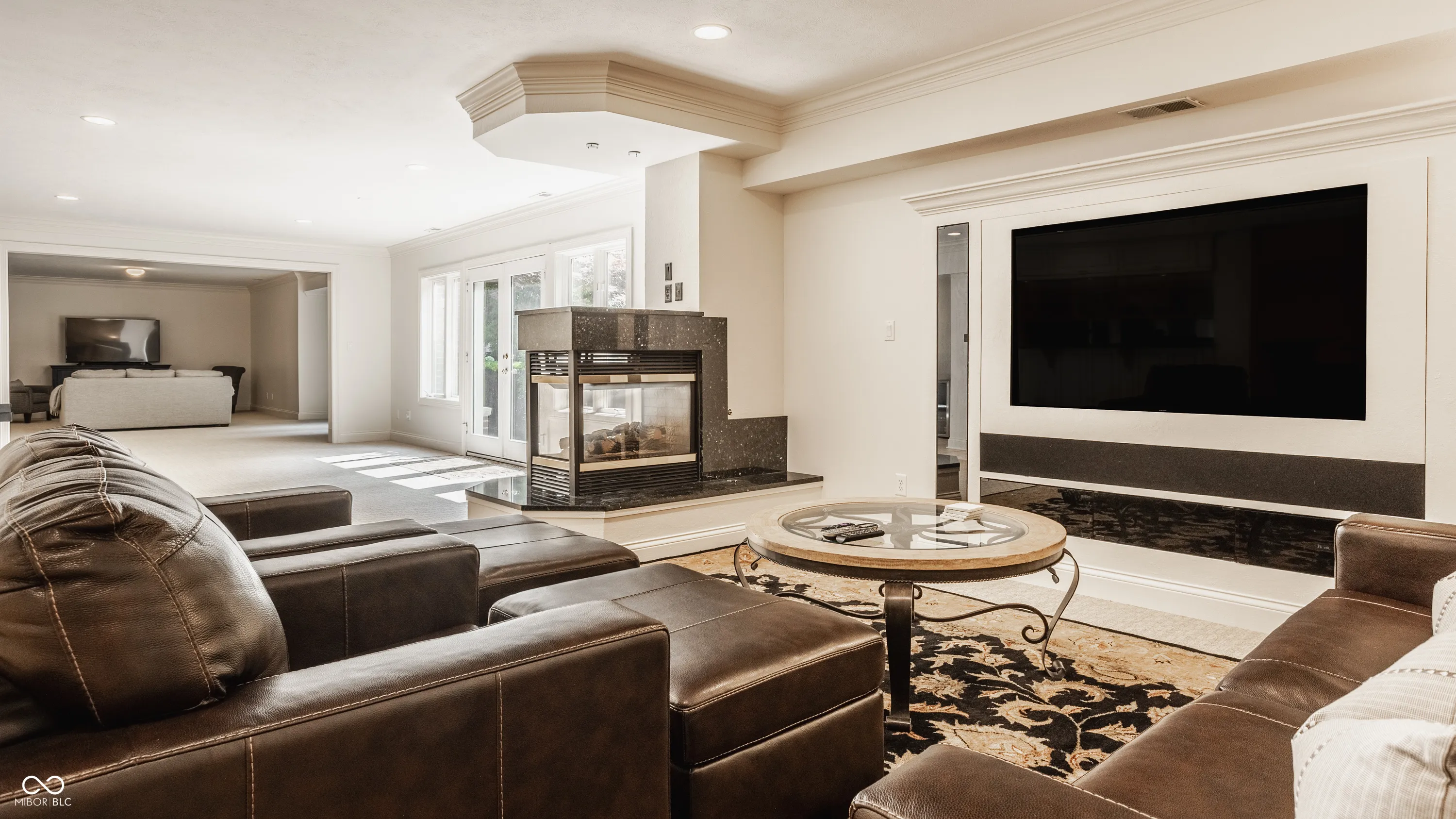 Nestled in the coveted Woodlands at Irishman’s Run, this home showcases unparalleled custom craftsmanship. A grand two-story entrance and dramatic staircase greet you, leading to a stunning great room bathed in natural light, featuring a majestic fireplace and a sophisticated wet bar. The gourmet kitchen, a chef’s delight, boasts a 6-burner gas cooktop, custom cabinetry, and premium appliances. The expansive deck and large patio provide the perfect setting for elegant entertaining and serene outdoor living. The main floor primary suite is a luxurious retreat, offering a double-sided fireplace, a spa-like bath with a soaking tub and walk-in shower, a floor-to-ceiling closet, and a Jewelry Storage Mirror! Upstairs, discover 3 beautifully appointed bedrooms, each with generous closet space, and 2 full bathrooms, designed with comfort and style in mind. The walk-out lower level is an entertainer’s paradise, featuring a chic wet bar, a 5th bedroom, a full bathroom, an exercise room, and ample space for recreation or future expansion. Complete with a 3-car garage, a versatile workshop/storage area, and home audio system on main level and basement, this home is a masterpiece of luxury living, blending timeless elegance with modern amenities. Don’t miss the opportunity to own this incredible property!