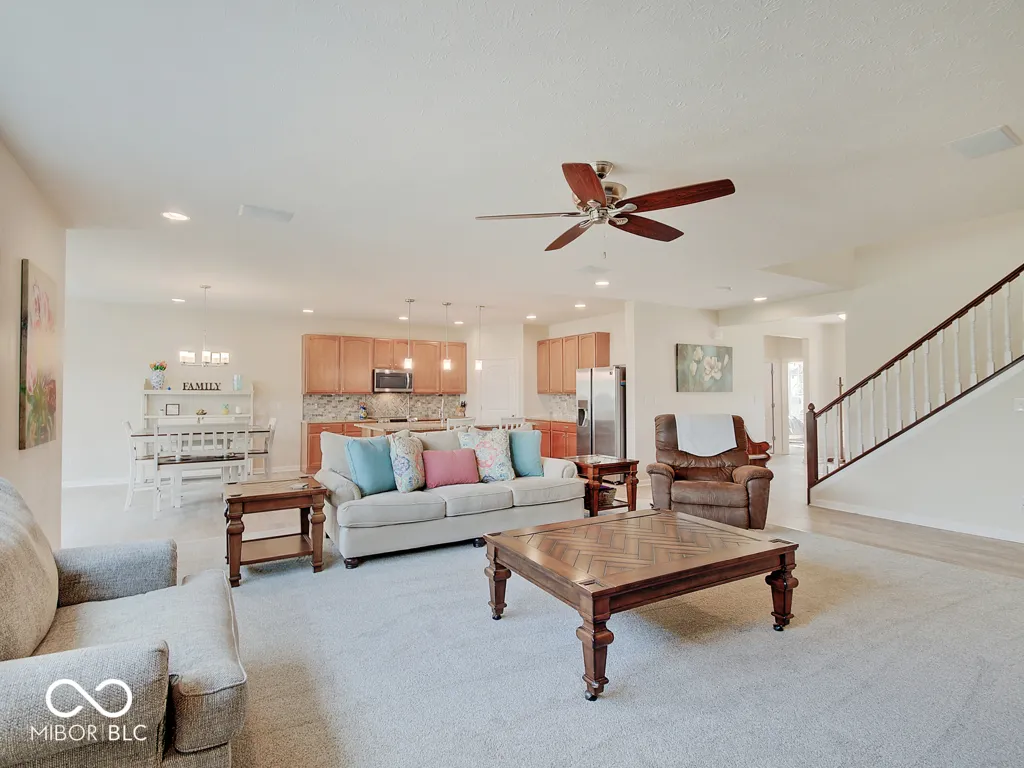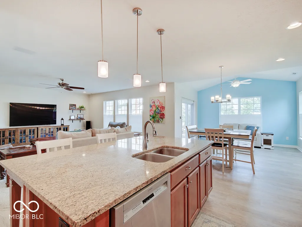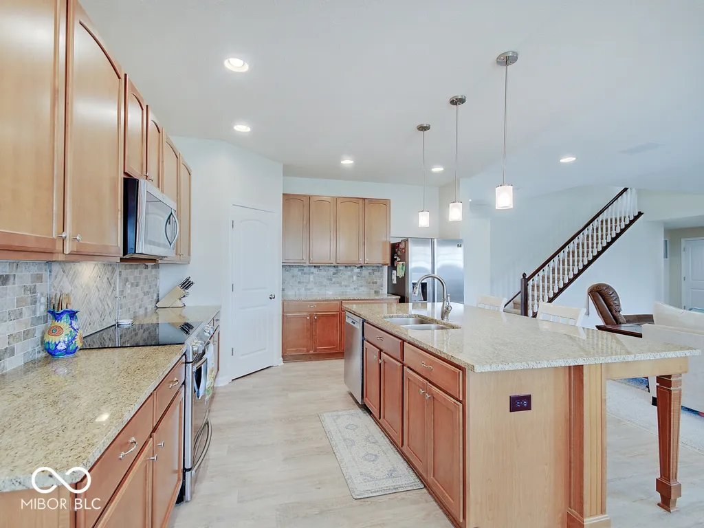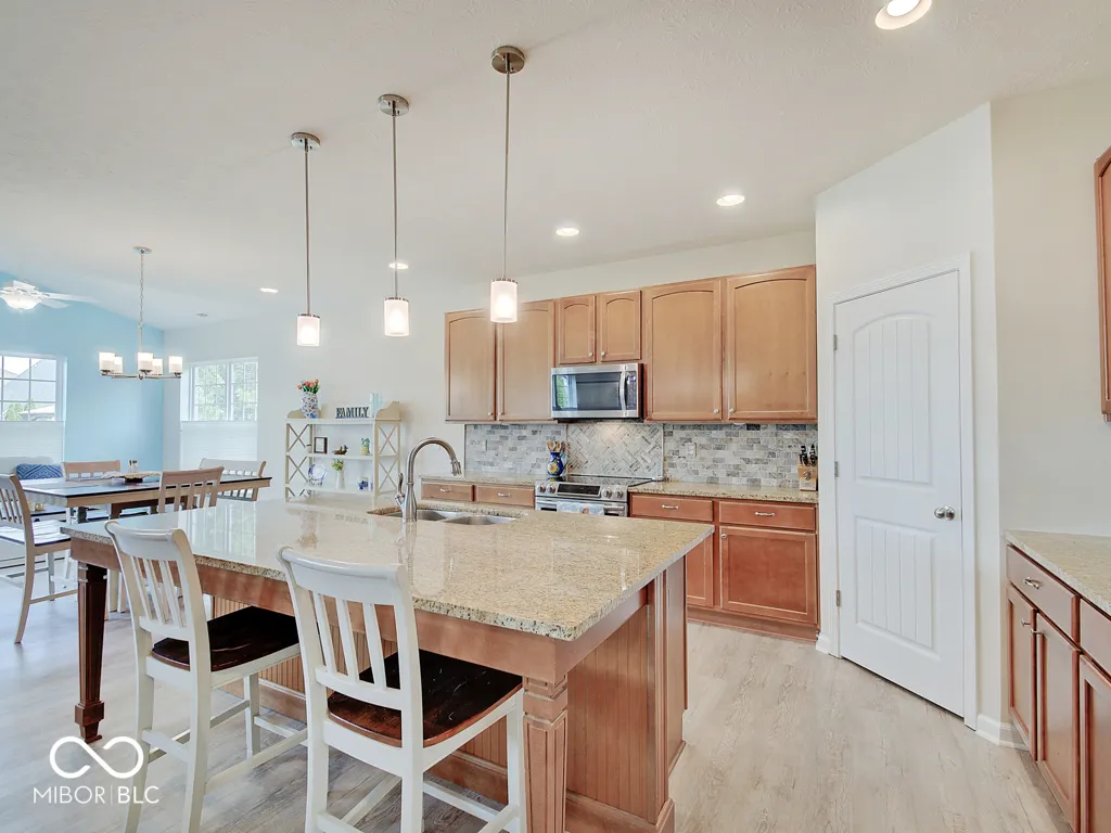 Welcome to your dream home in the desirable Hickory Stick neighborhood! This stunning property boasts 3 bedrooms, 2 full baths with updated LVP flooring throughout. Enjoy cooking in the spacious kitchen with solid surface counters, stainless steel appliances, and huge island with an adjacent eating area. The sun room and living room provide ample space for both family and entertaining. Home also features a large bonus room upstairs for added space and convenience. Experience luxury living with a split floor plan that offers privacy and comfort for all. This home also features an office space, perfect for remote work or additional flex space. Step outside to your backyard oasis with updated patio pavers and fire pit, where you can relax and entertain guests in style. The attached 3 car garage provides ample storage for vehicles, tools, and more. Pack your wagon and walk to the neighborhood pool for the afternoon. Award winning Center Grove School District; close proximity to SR135, grocery, soccer clubs, bantam football, & Mallow Run! Memberships to Hickory Stick Golf Club available. Great opportunity to buy in an established neighborhood. Don’t miss out on this incredible opportunity to call this house your forever home! ***2″x6″ lumber was used in the exterior walls of this M/I home. 2″6″ lumber helps to create stronger, more stable exterior, meaning superior construction and a better built home. M/I Homes use R19 insulation. With added insulation and tight envelope construction, you’ll save on energy costs over homes built to code and even more when you compare it to a resale home. Pair all of this with the industry’s only 30-Year Transferable Structural Warranty and you get long-term peace-of-mind.